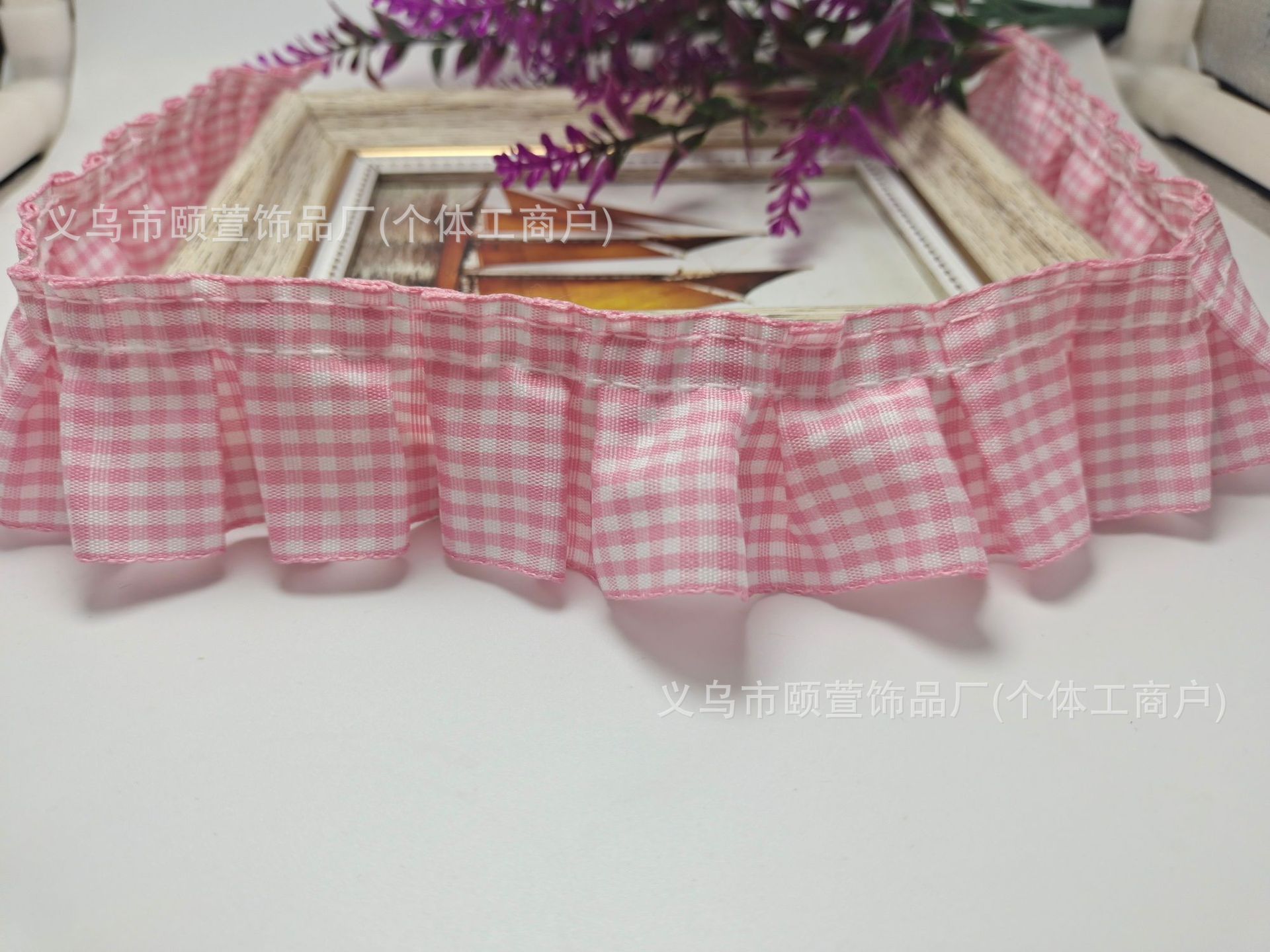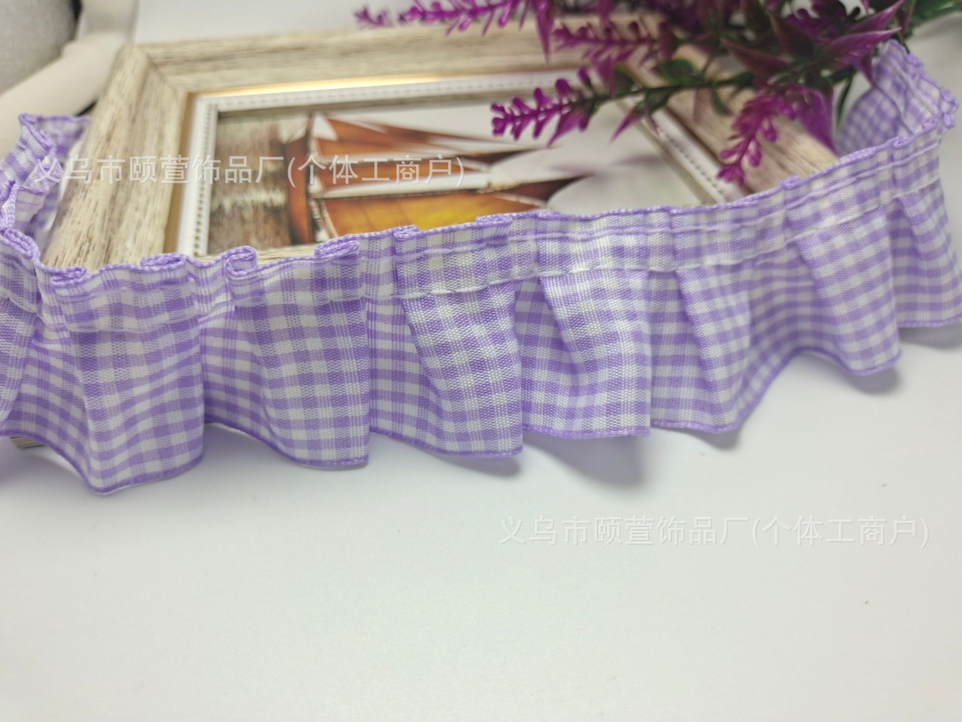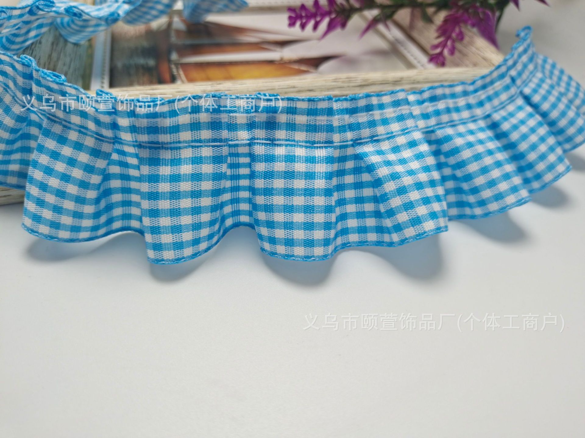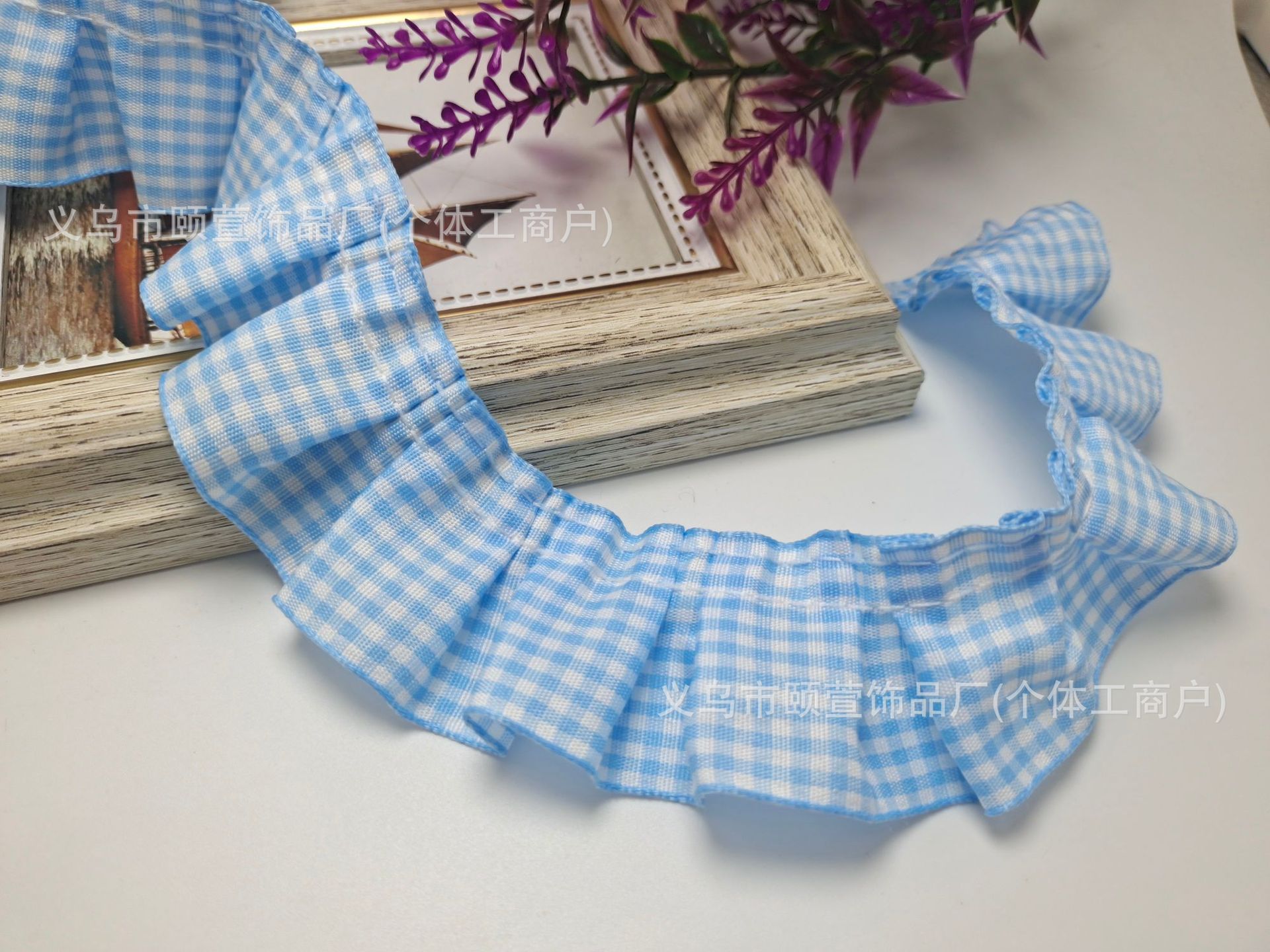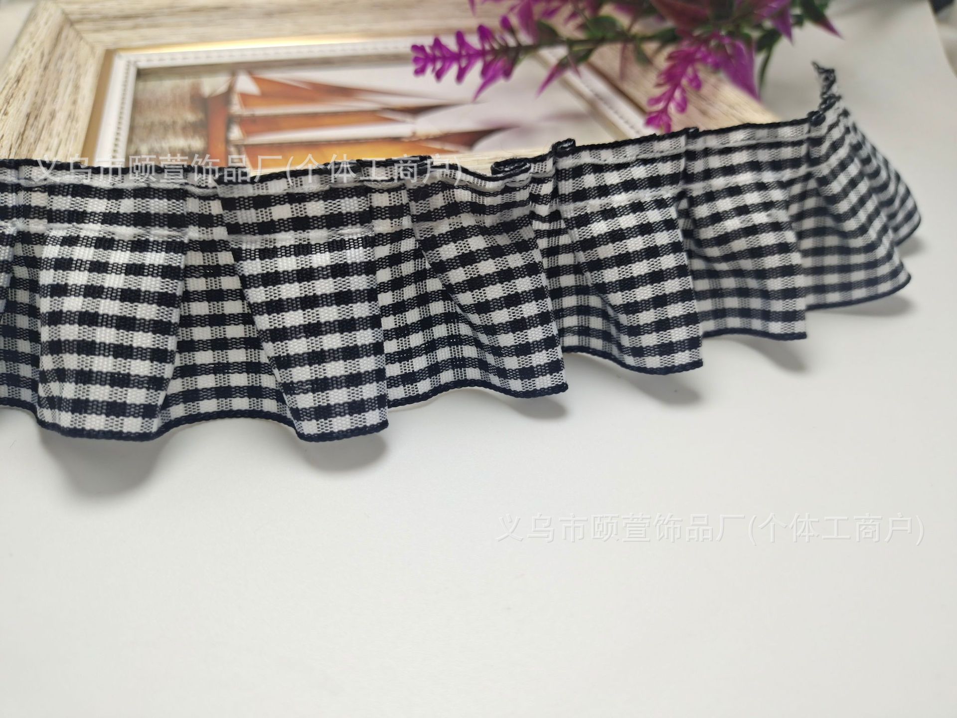 대외 무역 4cm 격자 무늬 주름 연꽃 잎 레이스 액세서리 애완 동물 스카프 홈 장식 직물 베개 장식 재고스토어 가기