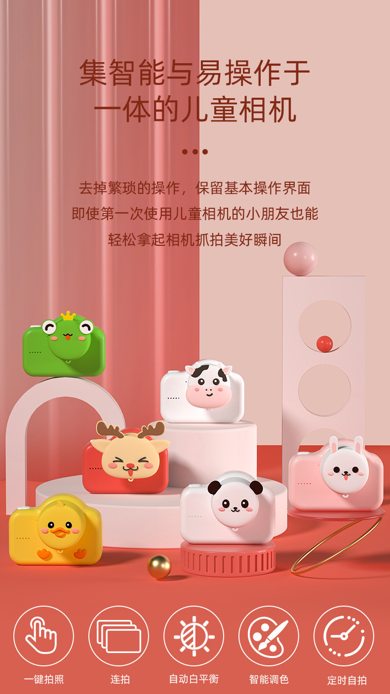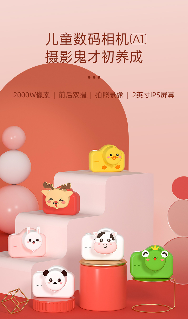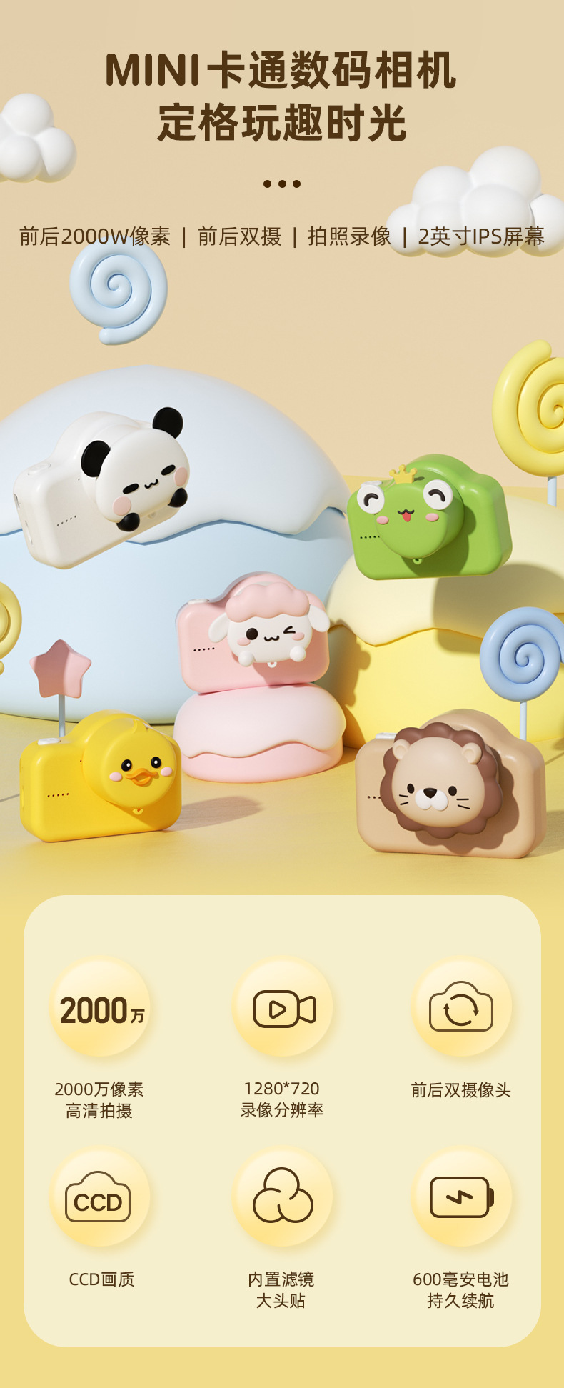 장난감 사진을 찍을 수 있는 국경 간 어린이 카메라 새로운 만화 미니 노란색 오리 고화질 디지털 소형 카메라