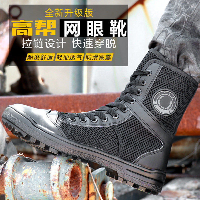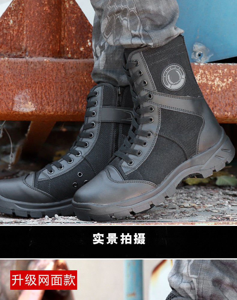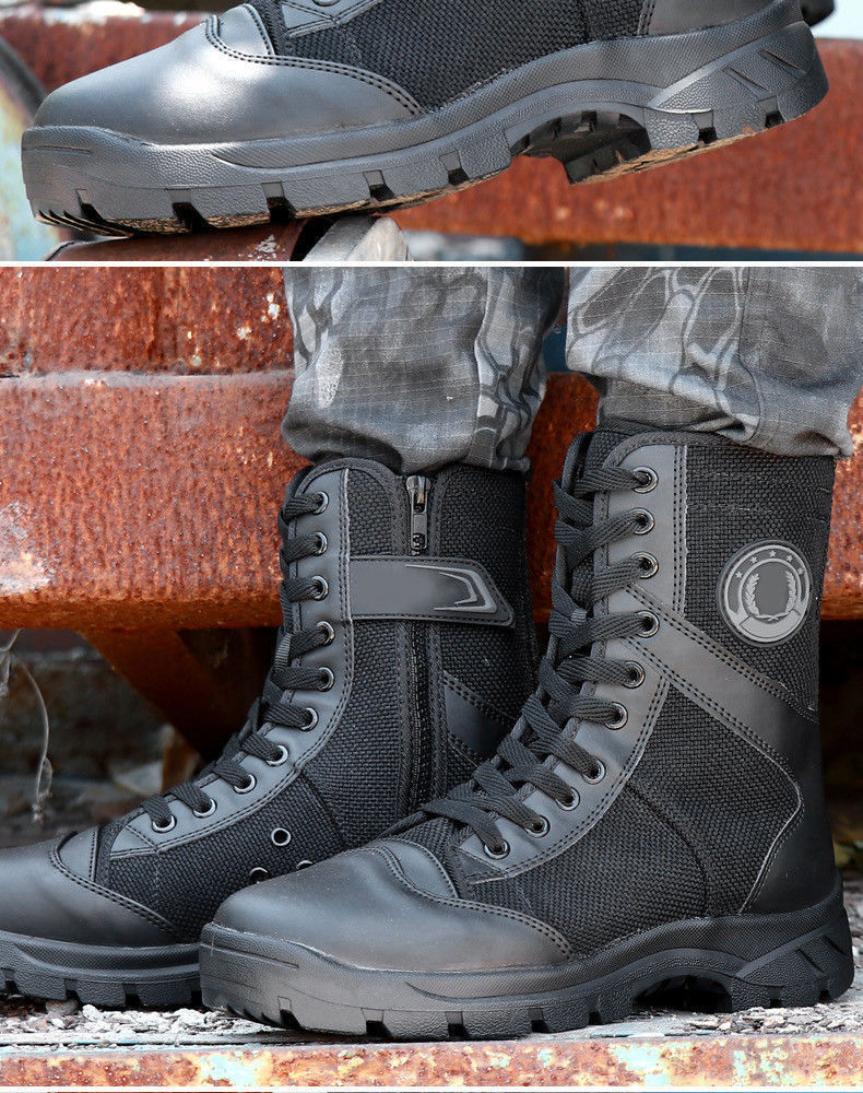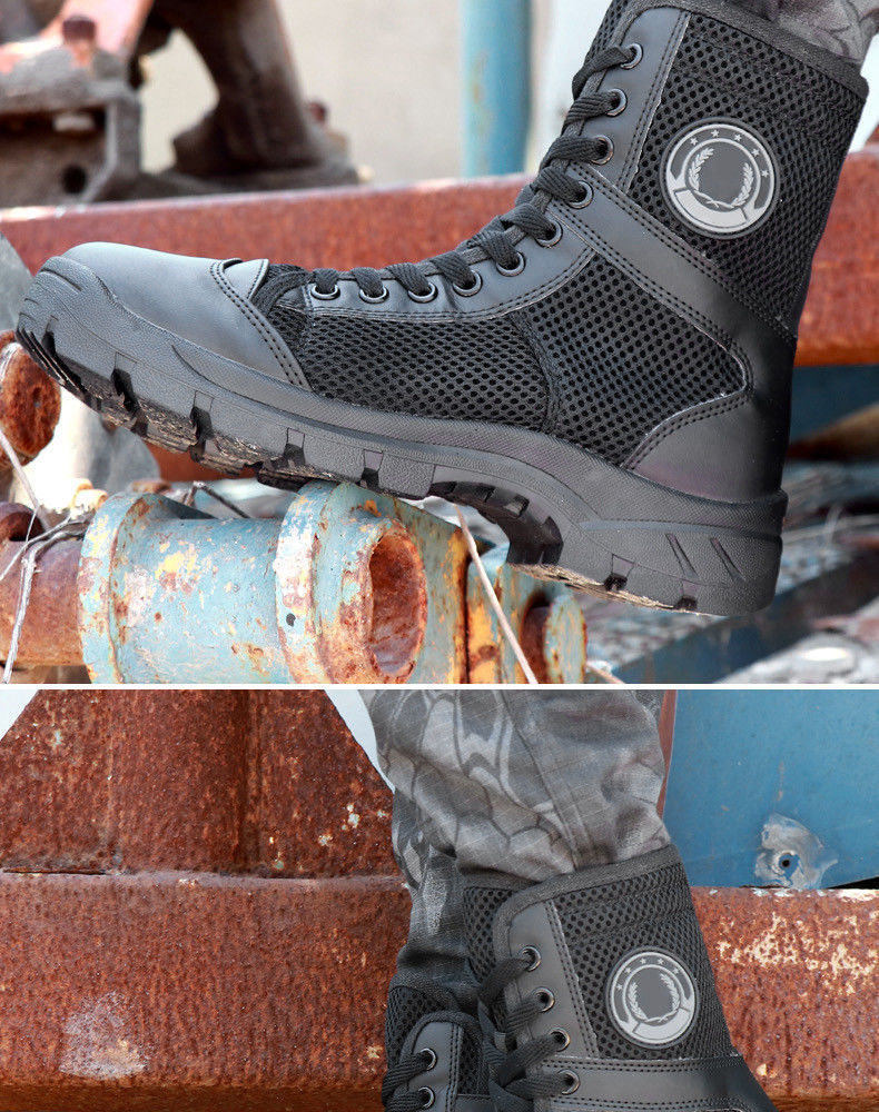 여름 보안 신발 메쉬 하이킹 신발 블랙 지퍼 마틴 부츠 남성 캔버스 바지 부츠 보안 남성 부츠 하이 탑스토어 가기