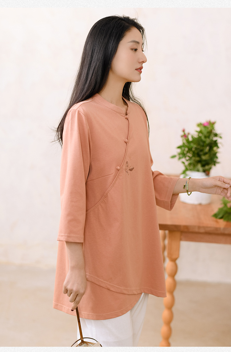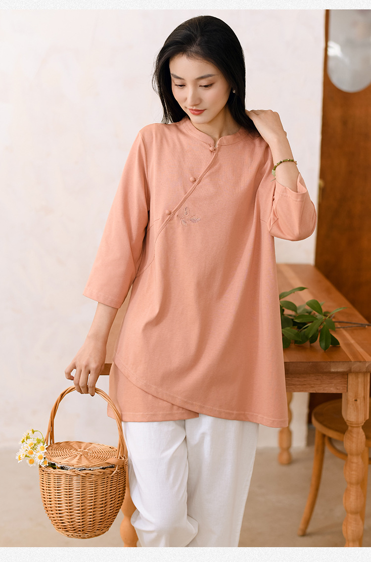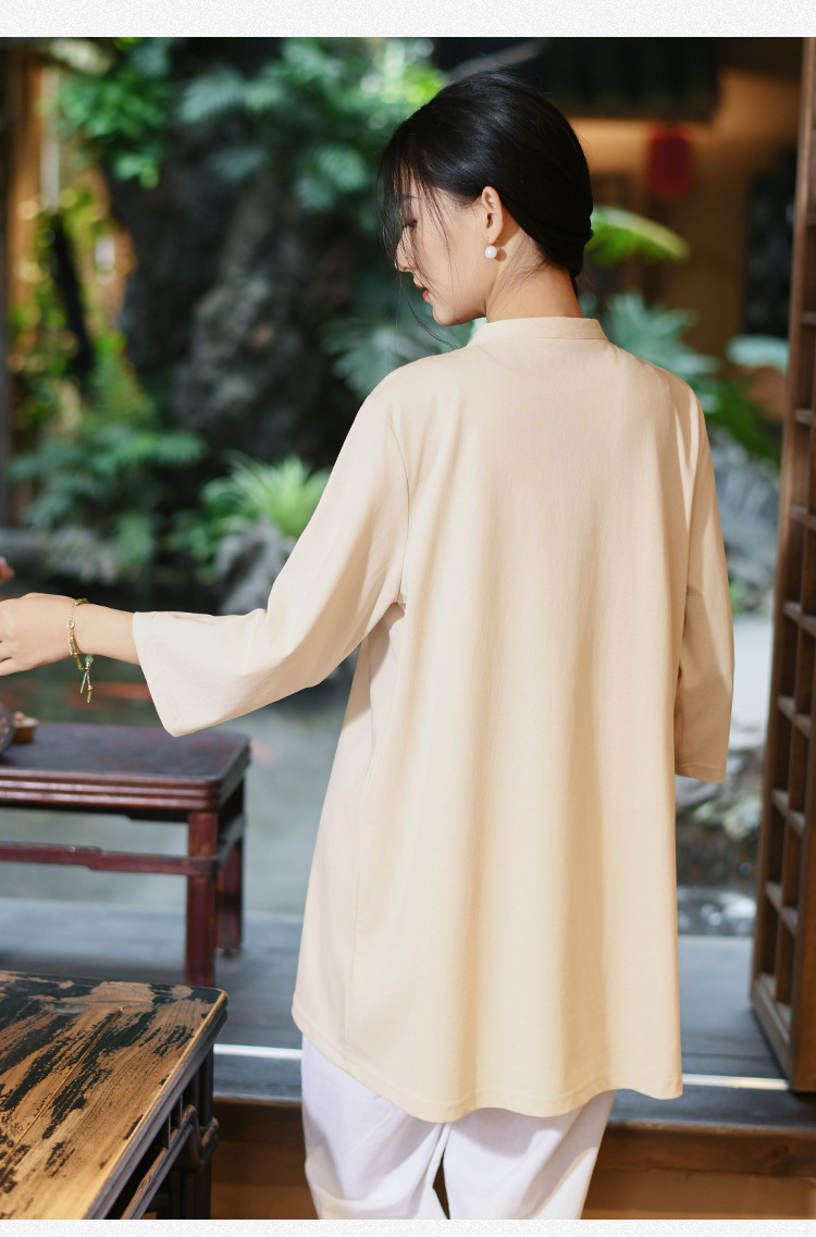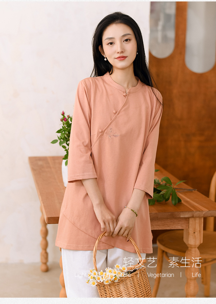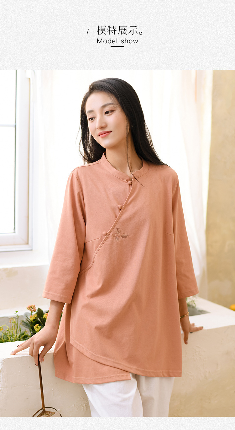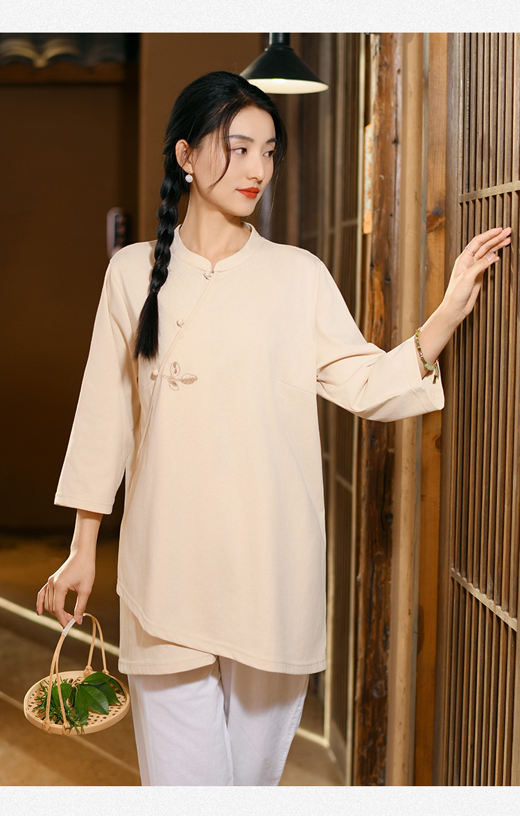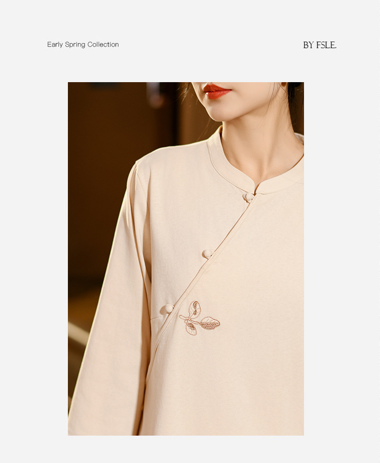 새로운 중국 스타일 여성 의류 2024 봄 새로운 편안한 복고풍 최고 여성 중국 스타일 디자인 긴 소매 스웨터스토어 가기