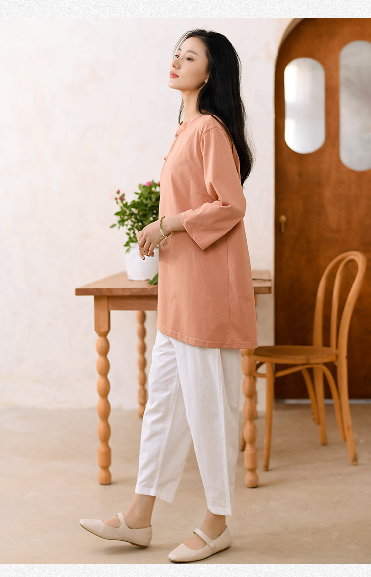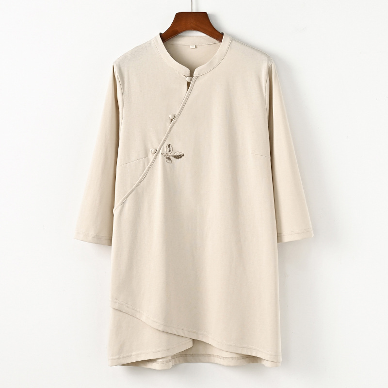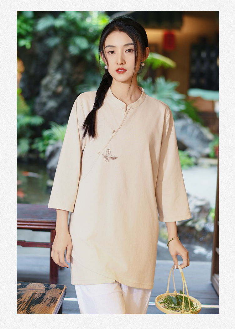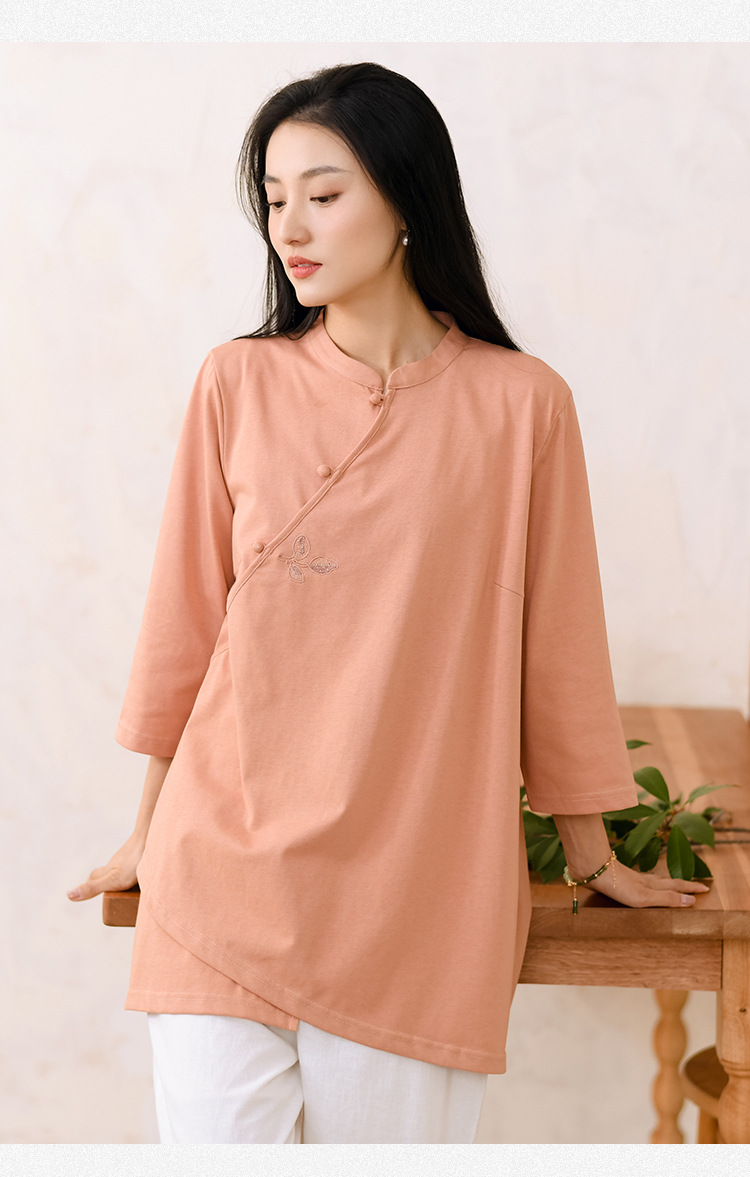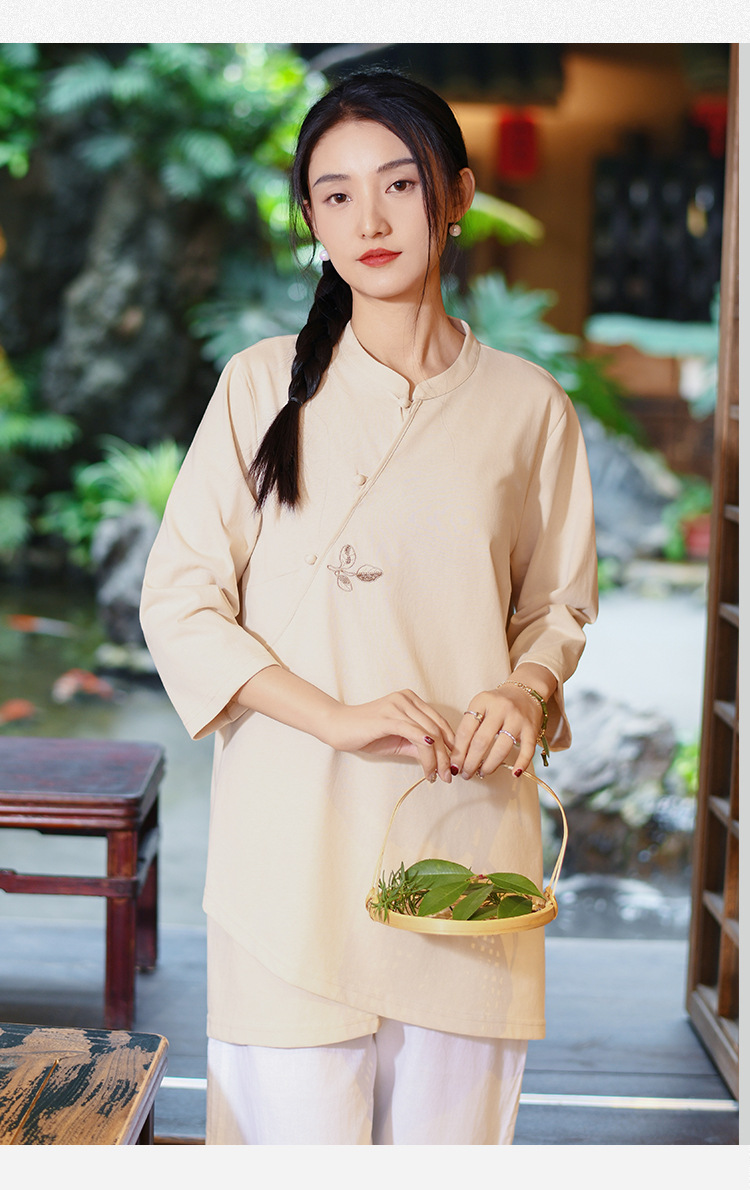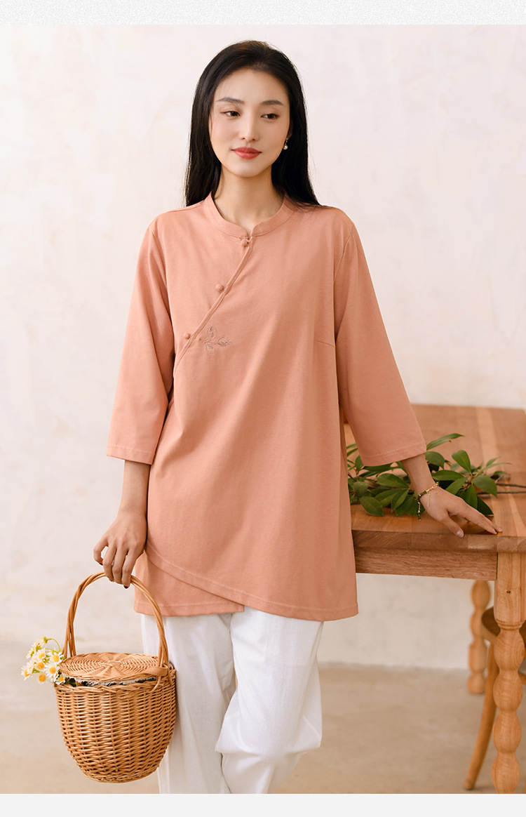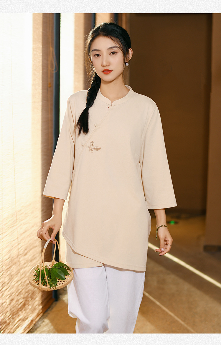 새로운 중국 스타일 여성 의류 2024 봄 새로운 편안한 복고풍 최고 여성 중국 스타일 디자인 긴 소매 스웨터스토어 가기