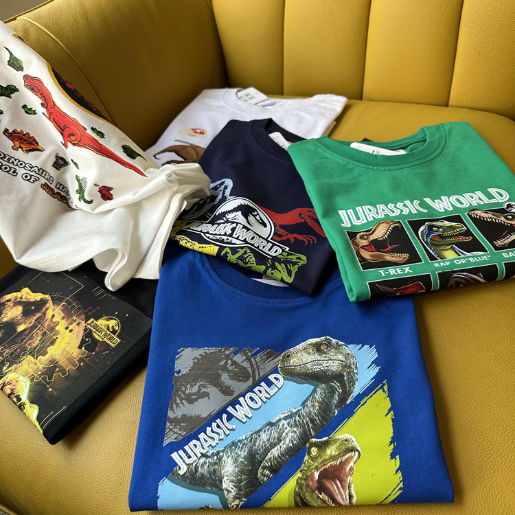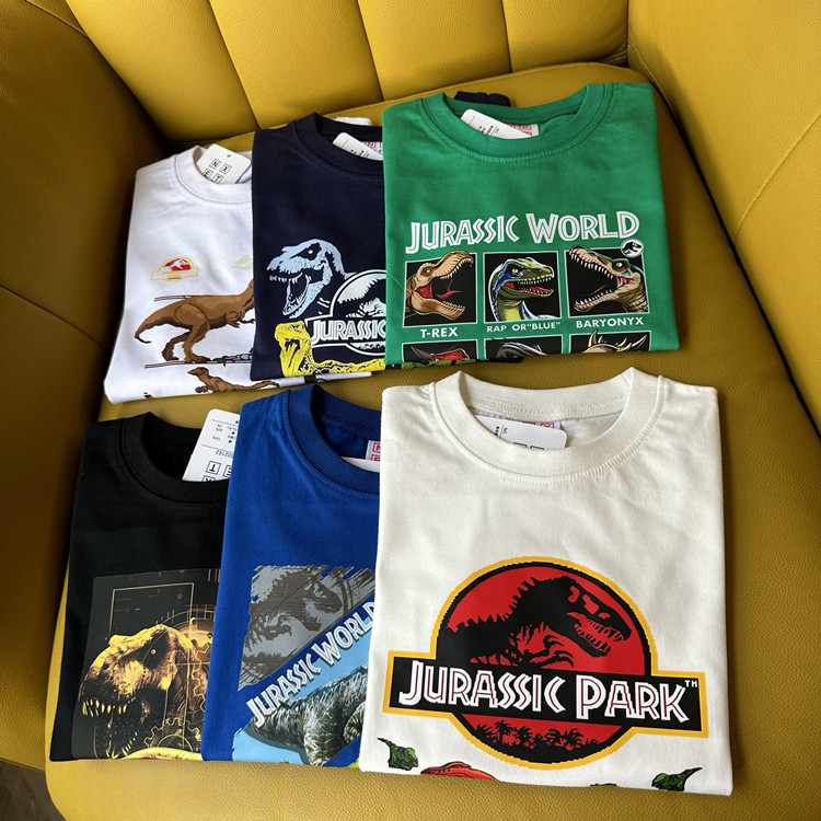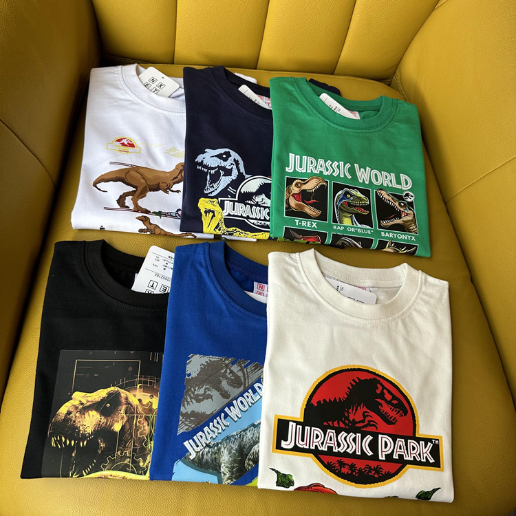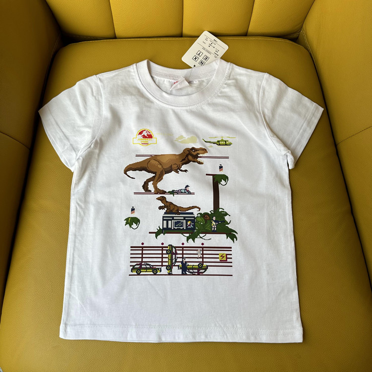 日单外贸侏罗纪公园恐龙系列夏季童装纯棉短袖T恤衫