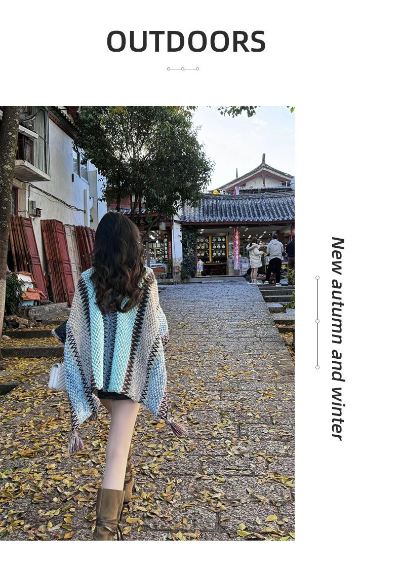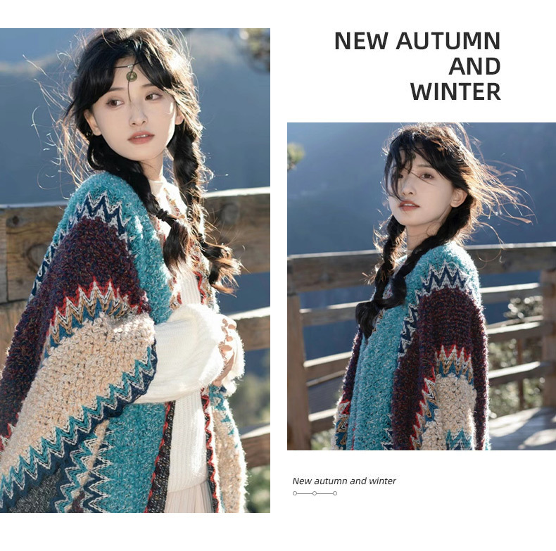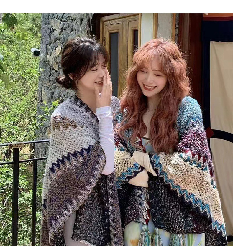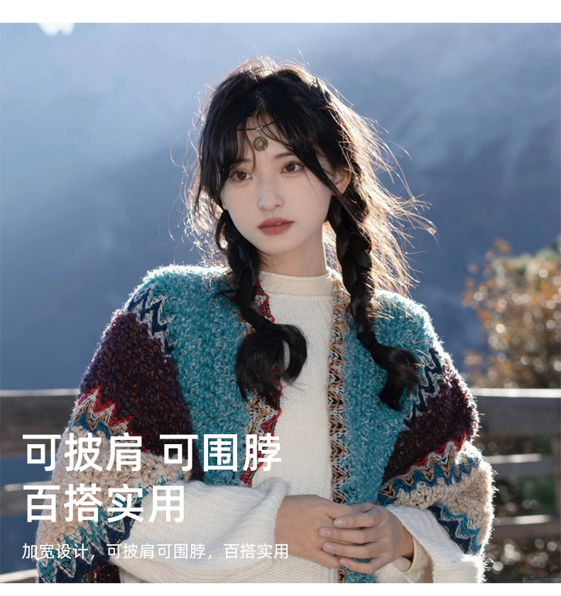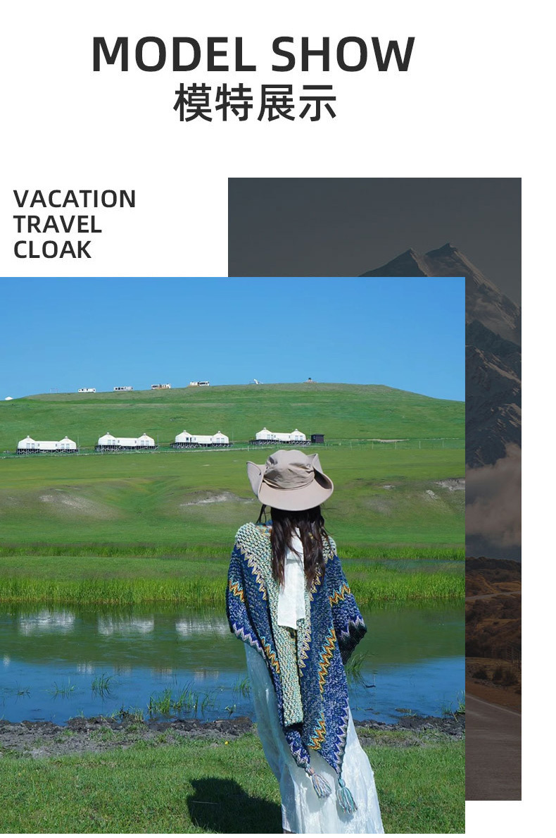 여름 리장 레트로 민족 스타일 목도리 여성 신장 윈난 관광 외부 케이프 코트 듀얼 사용 스카프스토어 가기