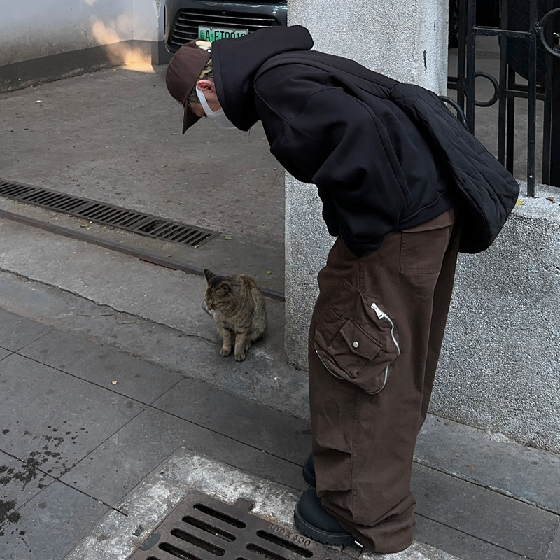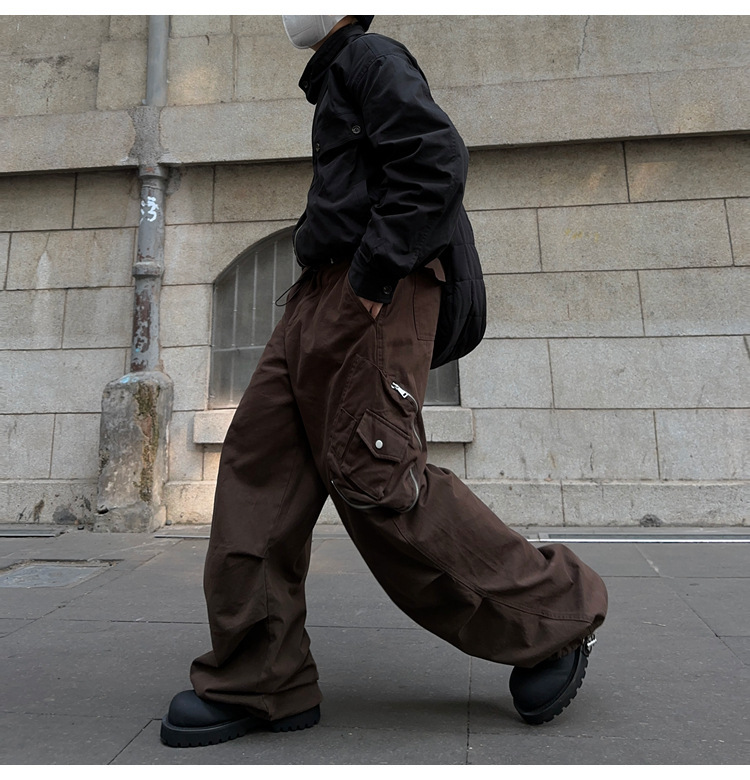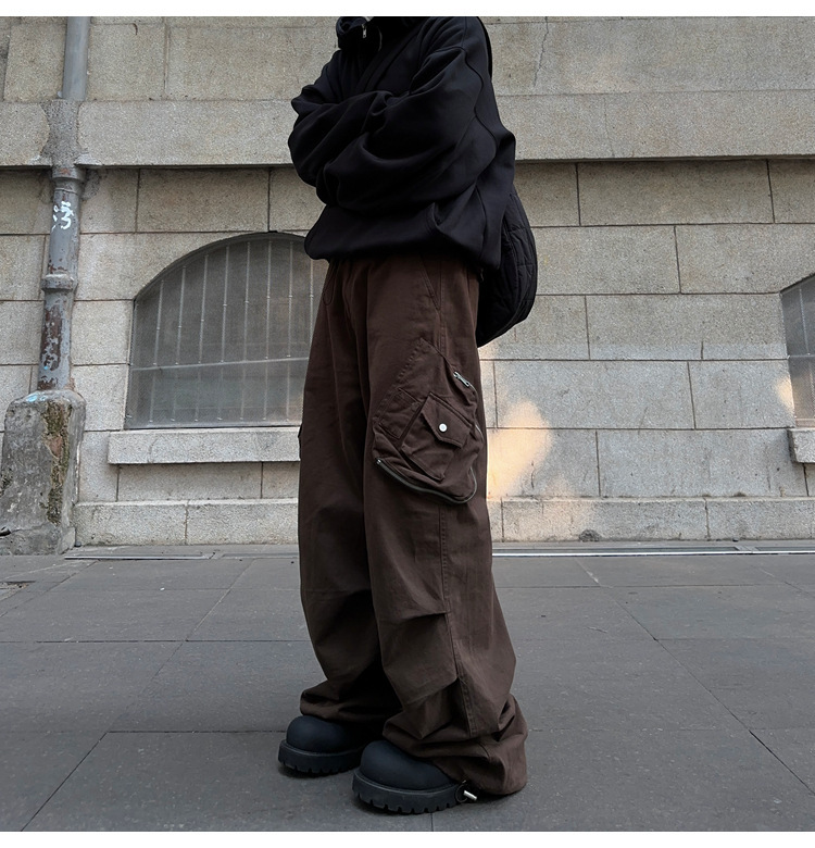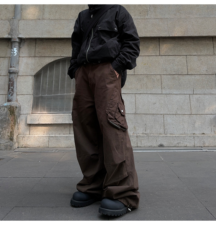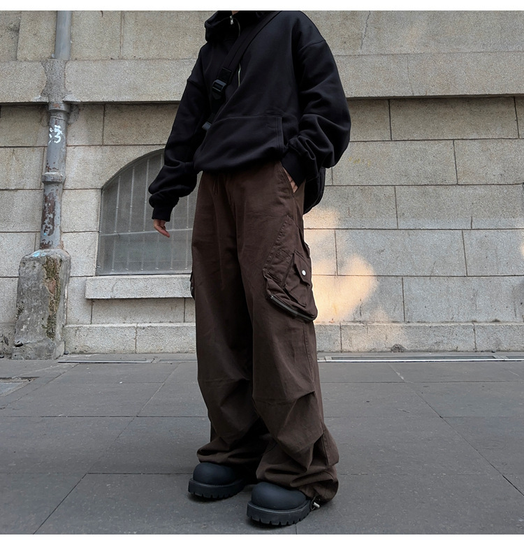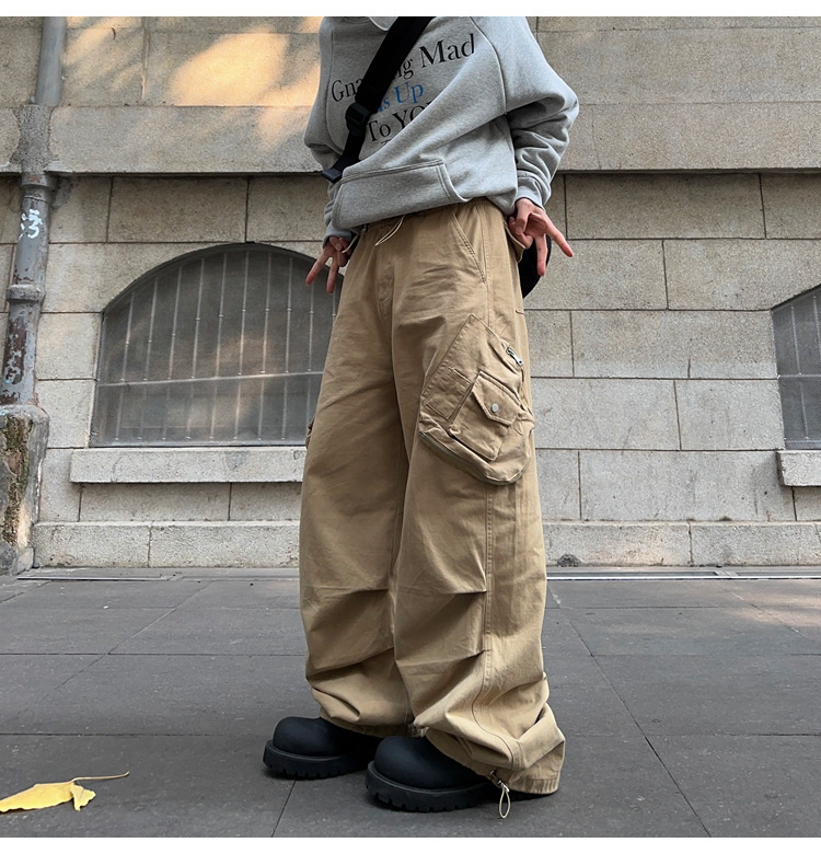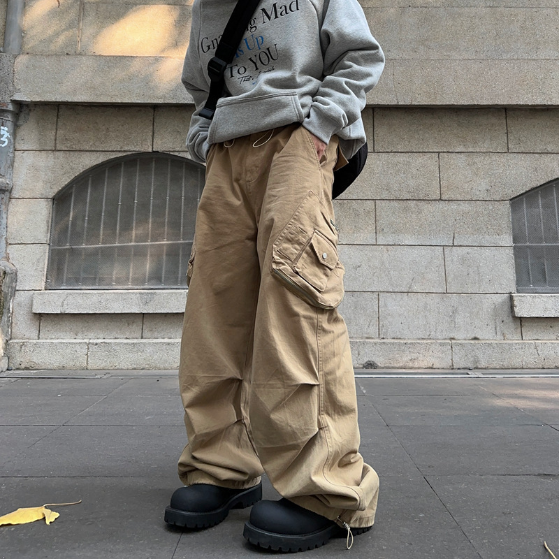아메리칸 스타일 레트로 트렌디 브랜드 캐주얼 바지 하이 스트리트 힙합 멀티 포켓 느슨한 넓은 다리 남자 카키 낙하산 귀여운 바지스토어 가기