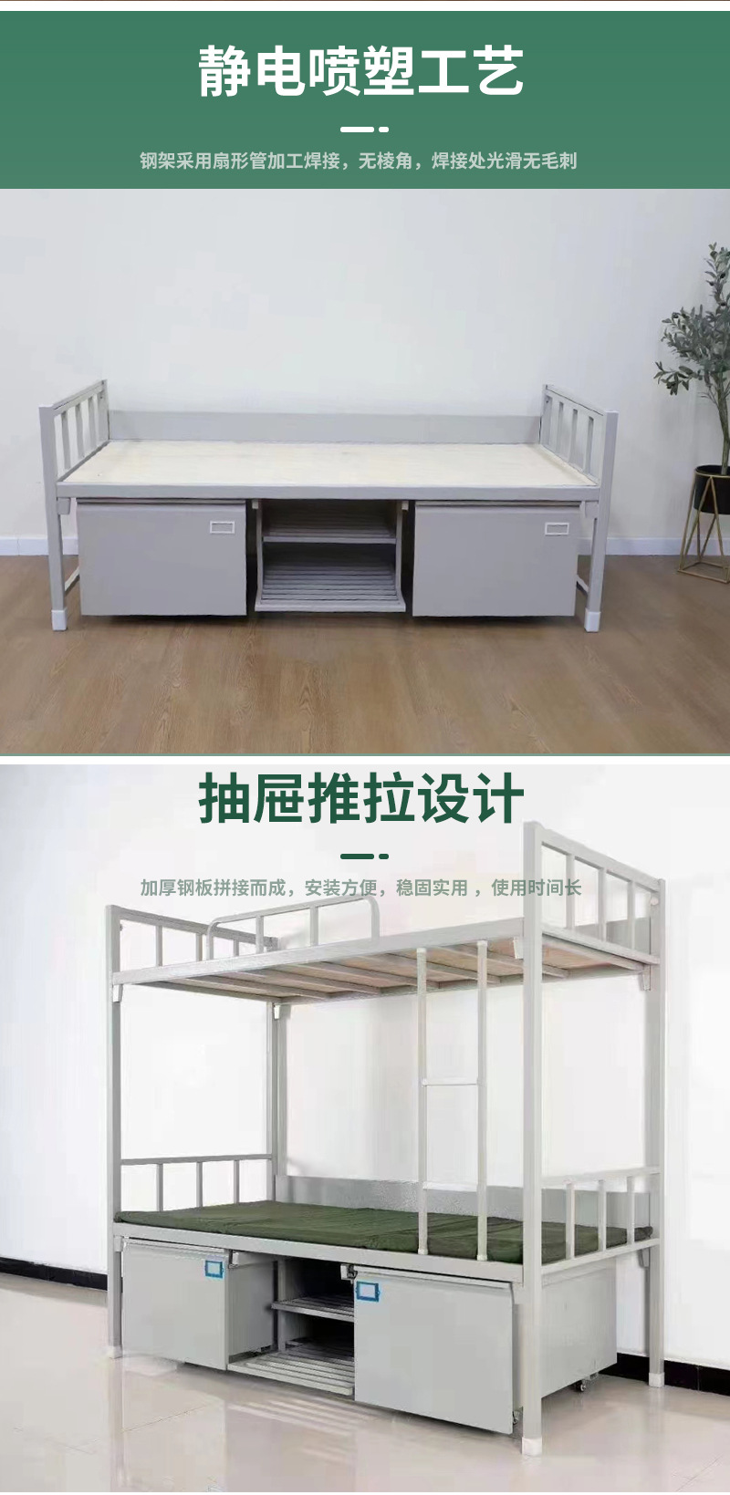 강철 이층침대, 침대 아래 수납장이 있는 이층침대, 강철 철제 프레임 침대, 학교 아파트용 높낮이 조합 침대, 철제 목재 침대스토어 가기