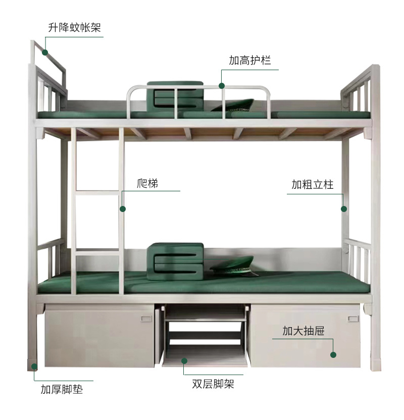 강철 이층침대, 침대 아래 수납장이 있는 이층침대, 강철 철제 프레임 침대, 학교 아파트용 높낮이 조합 침대, 철제 목재 침대