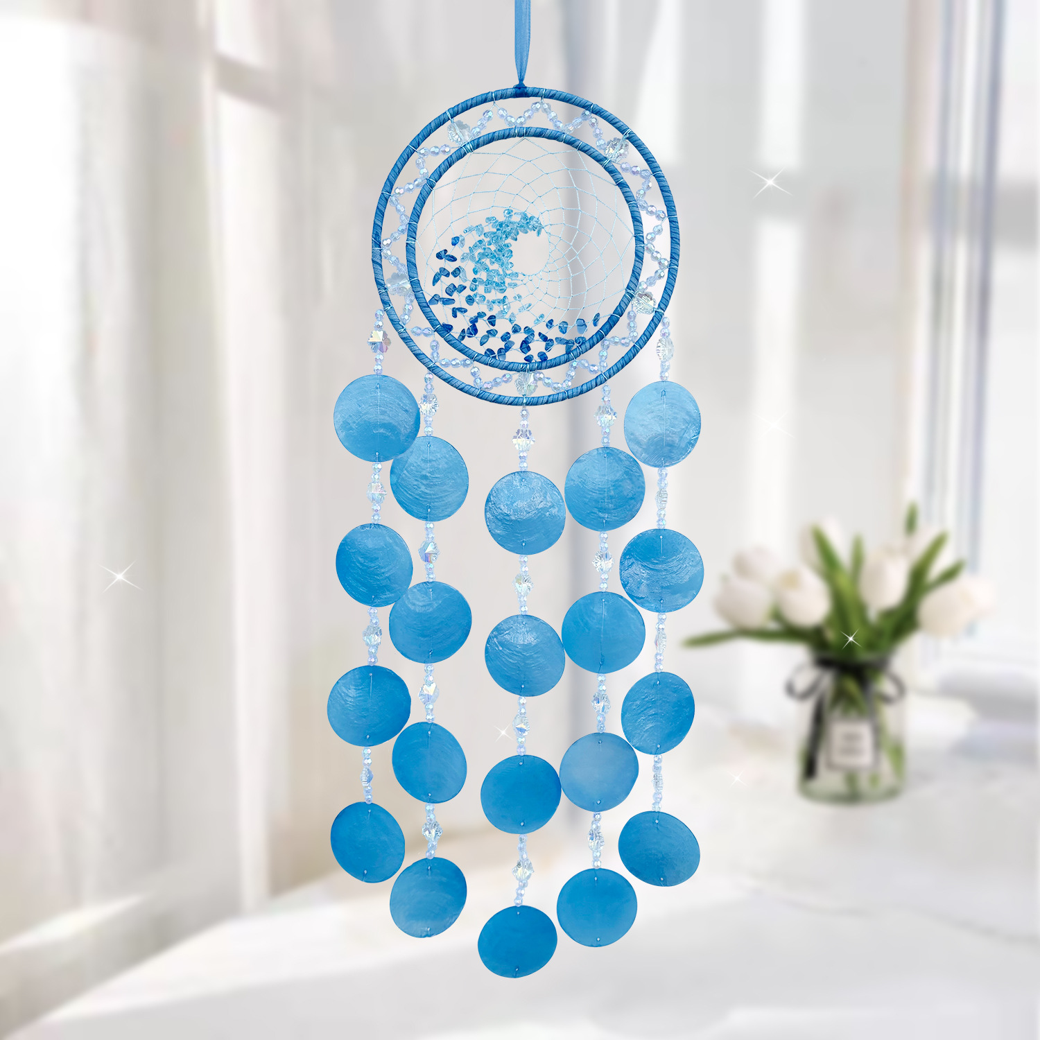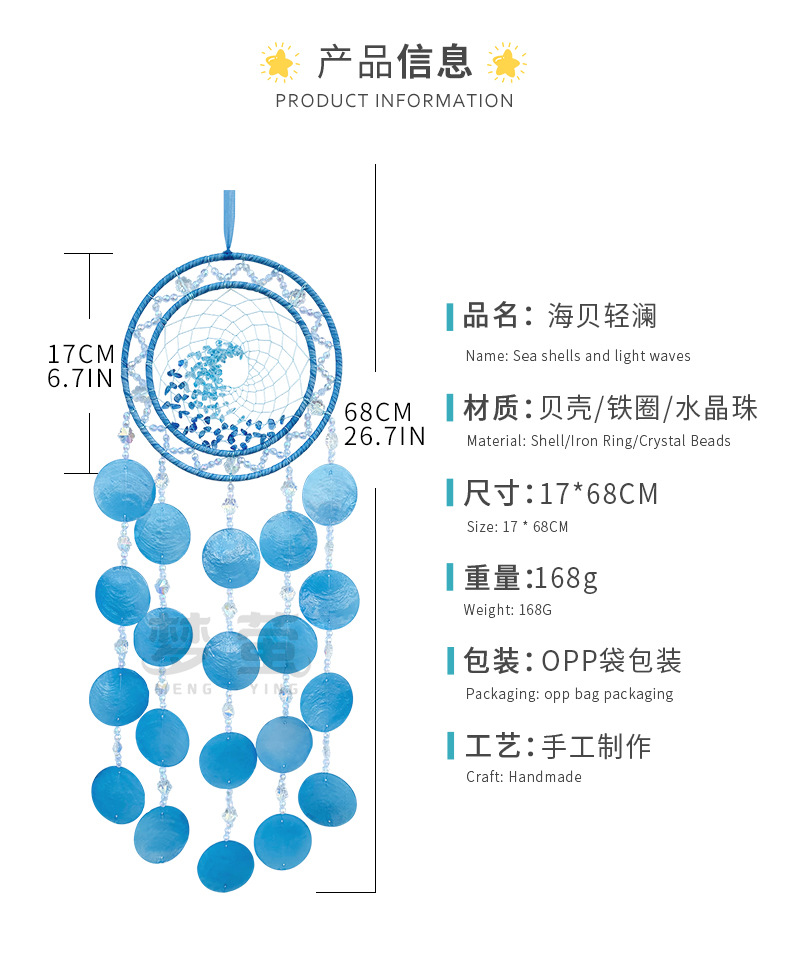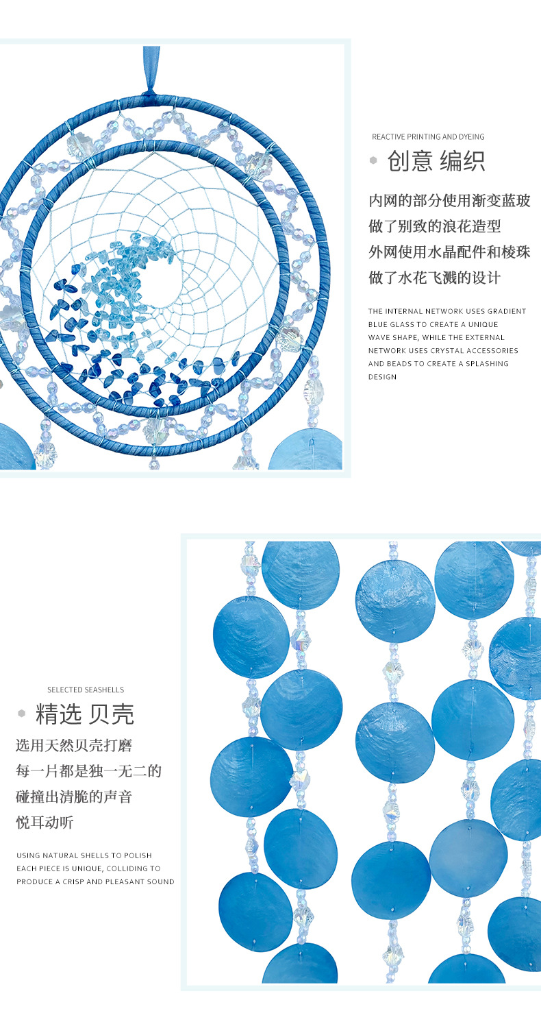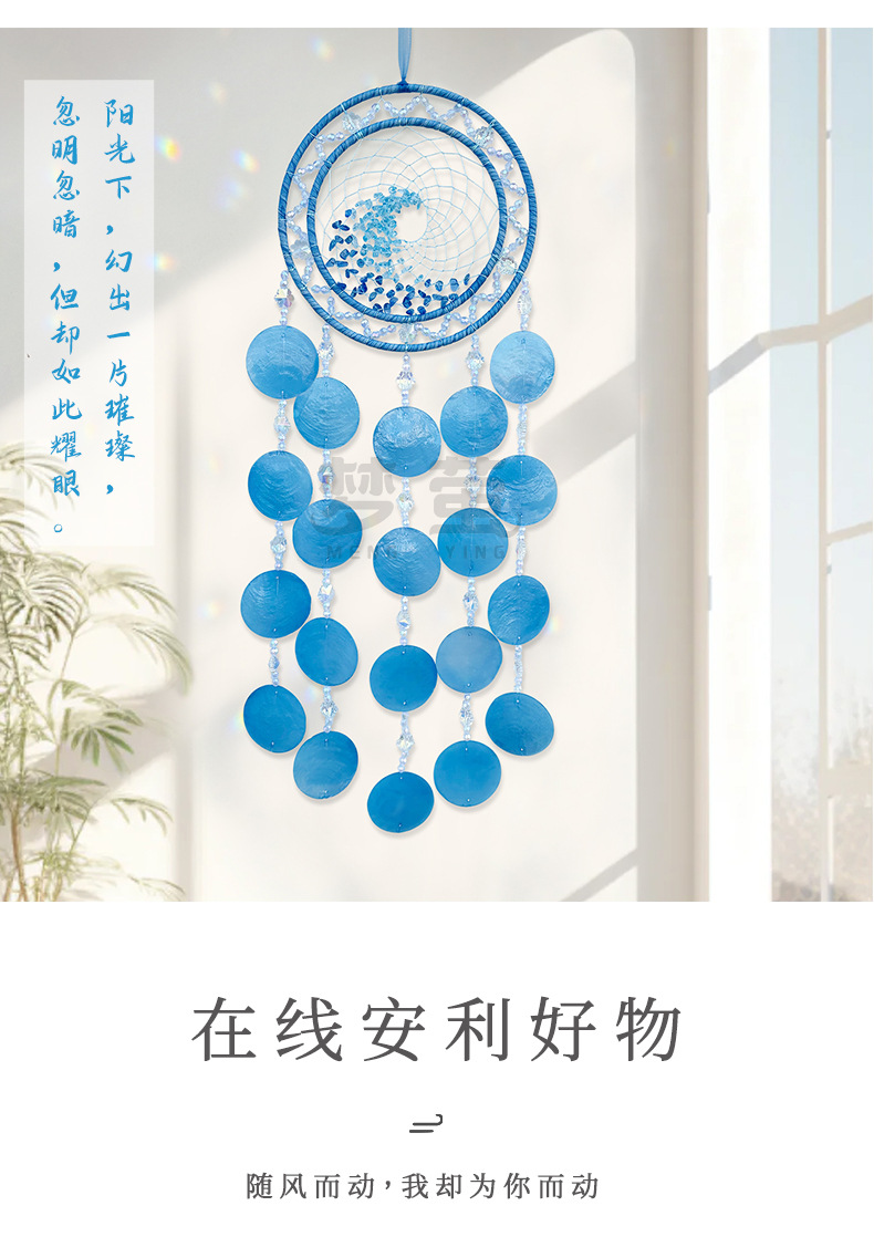 Mengyi 원래 스타일 하이 엔드 천연 쉘 크리스탈 돌 바람 차임 펜던트 어린이 방 침실 배경 벽 선물스토어 가기