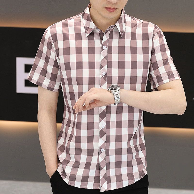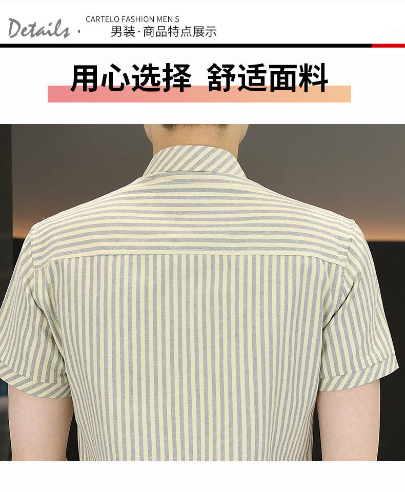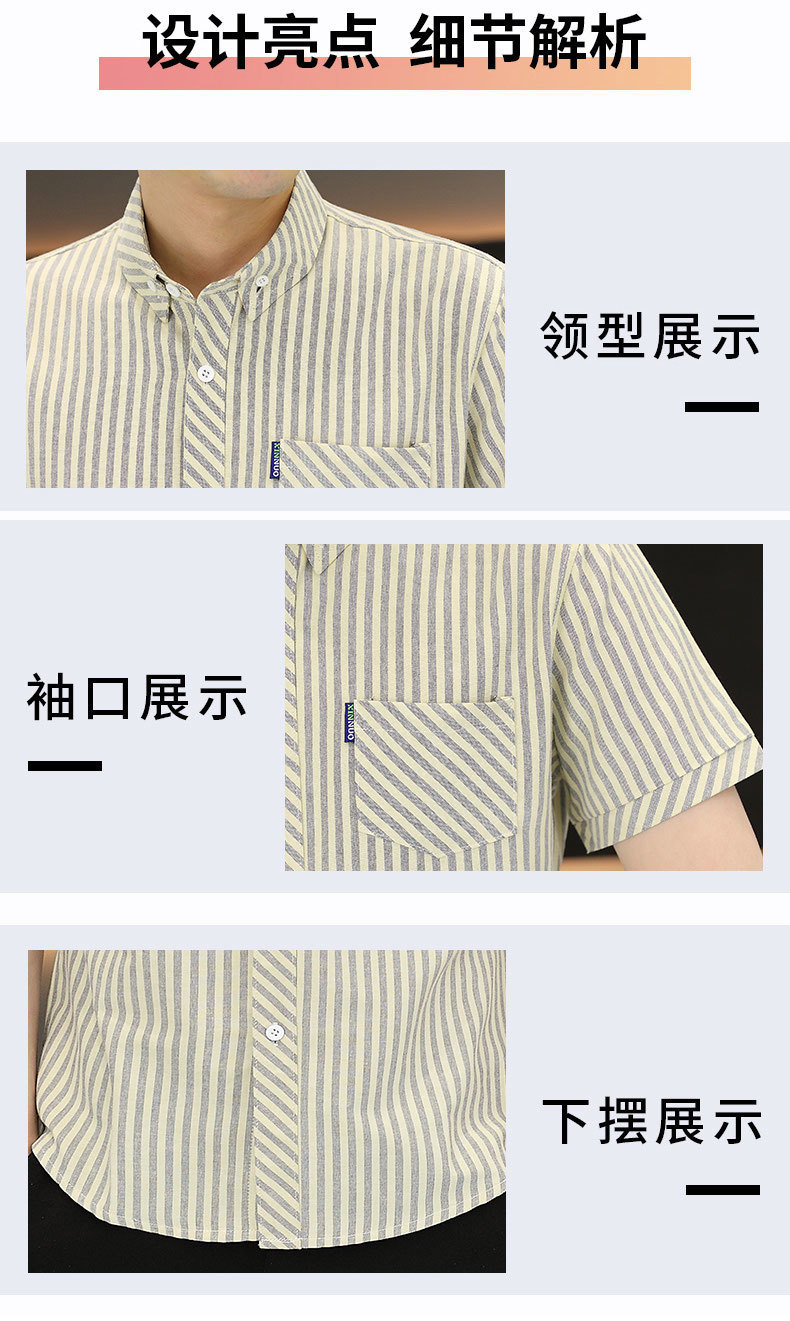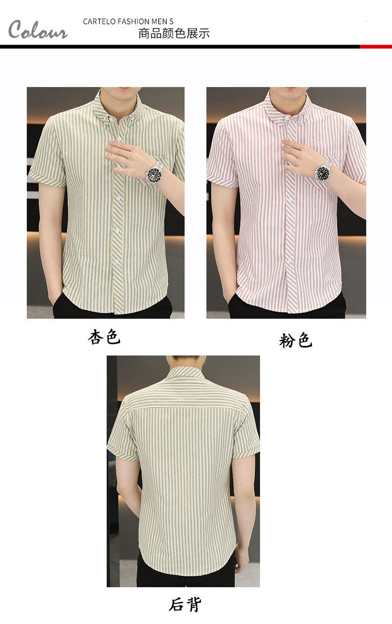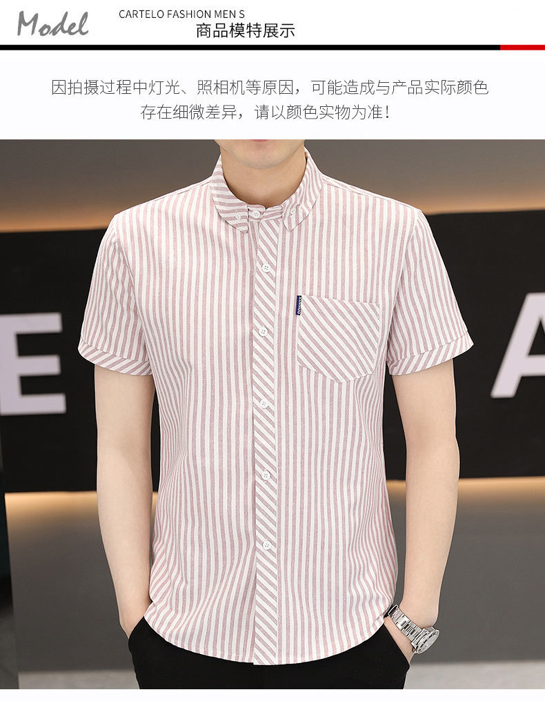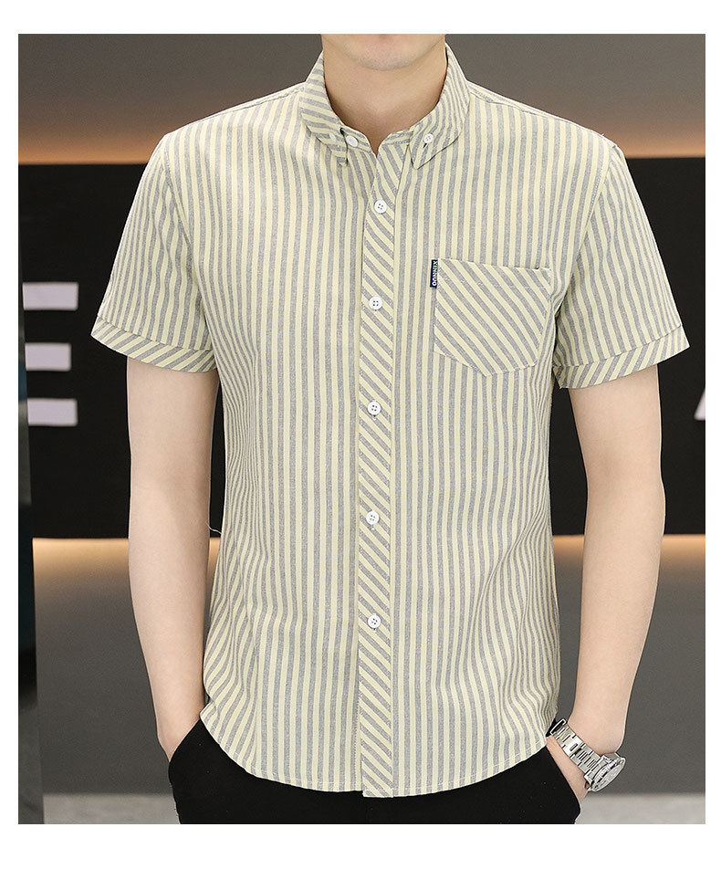 여름 남성 반팔 셔츠 비즈니스 캐주얼 청소년 잘 생긴 스트라이프 셔츠 한국식 슬림 핏 포켓 탑 의류 패션스토어 가기