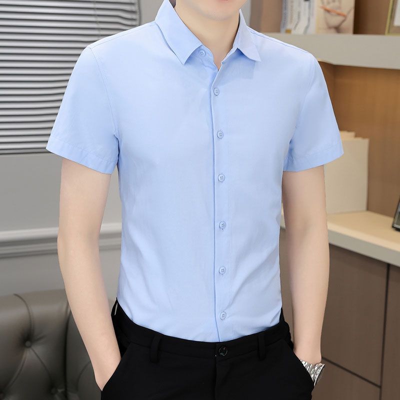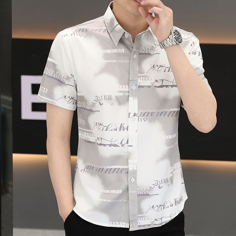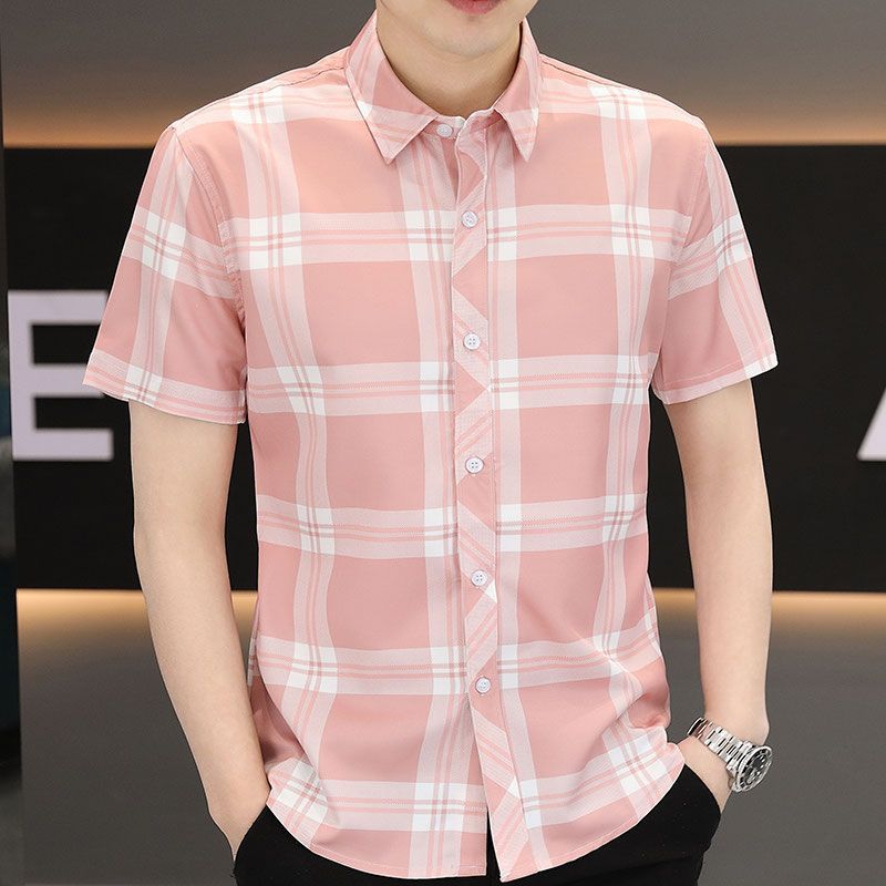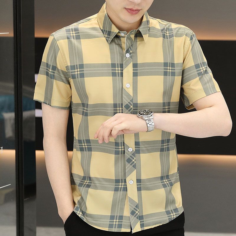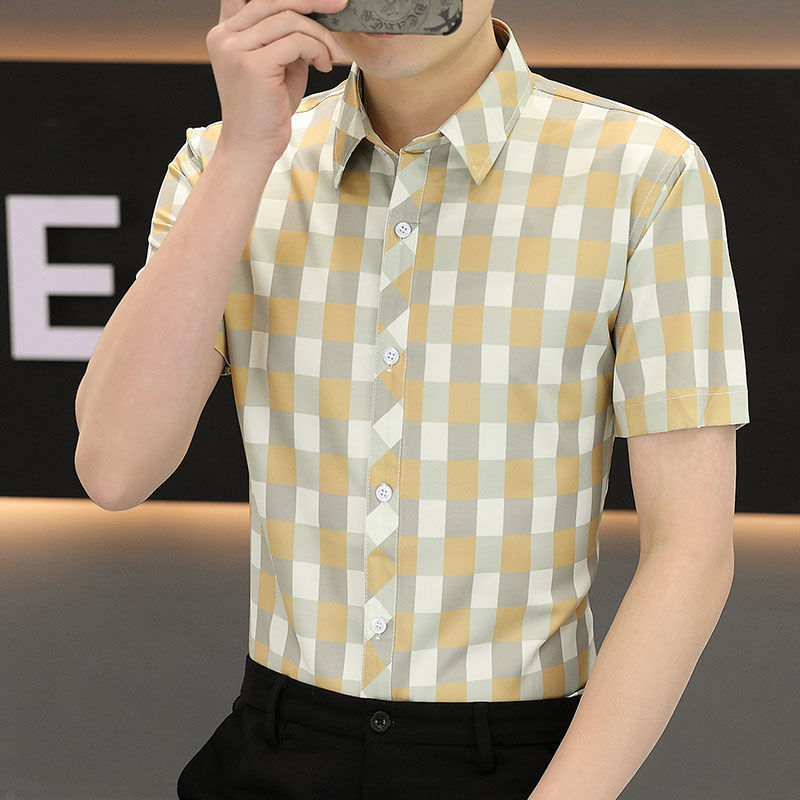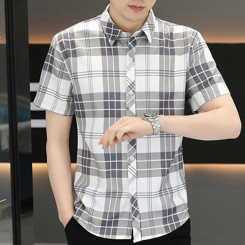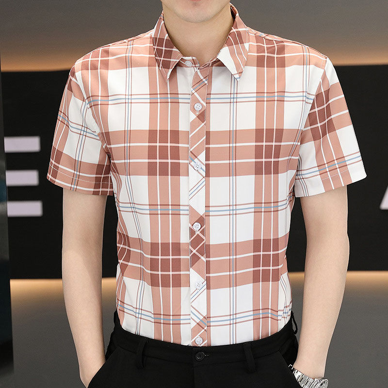 여름 남성 반팔 셔츠 비즈니스 캐주얼 청소년 잘 생긴 스트라이프 셔츠 한국식 슬림 핏 포켓 탑 의류 패션스토어 가기