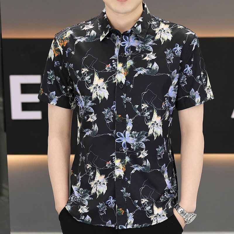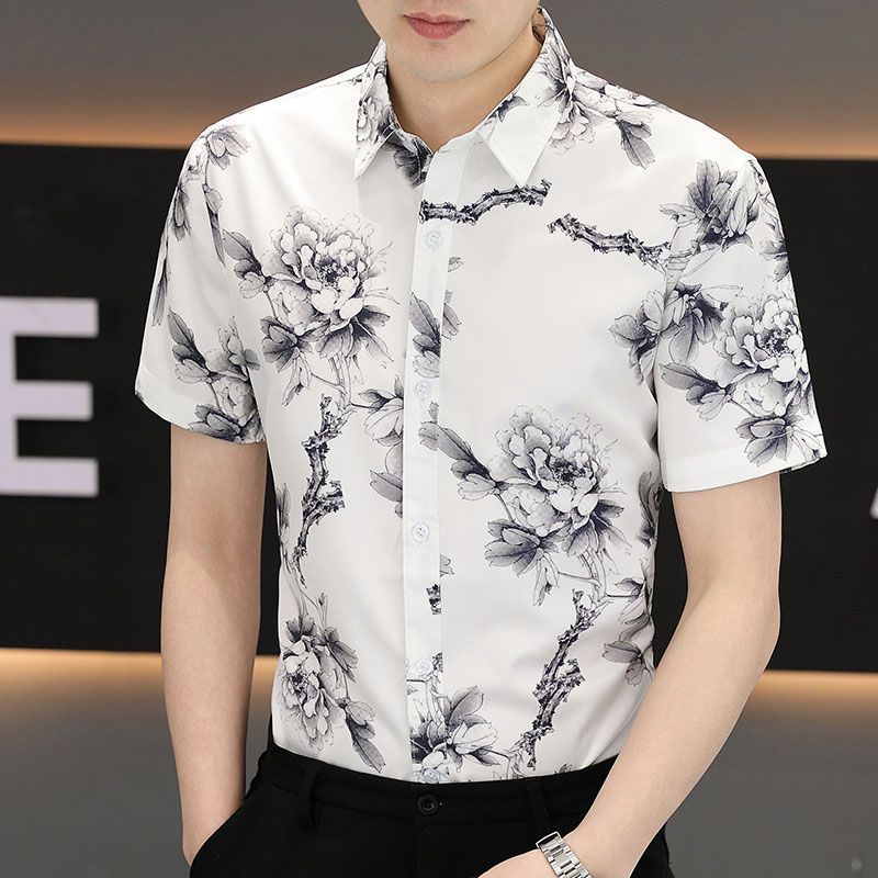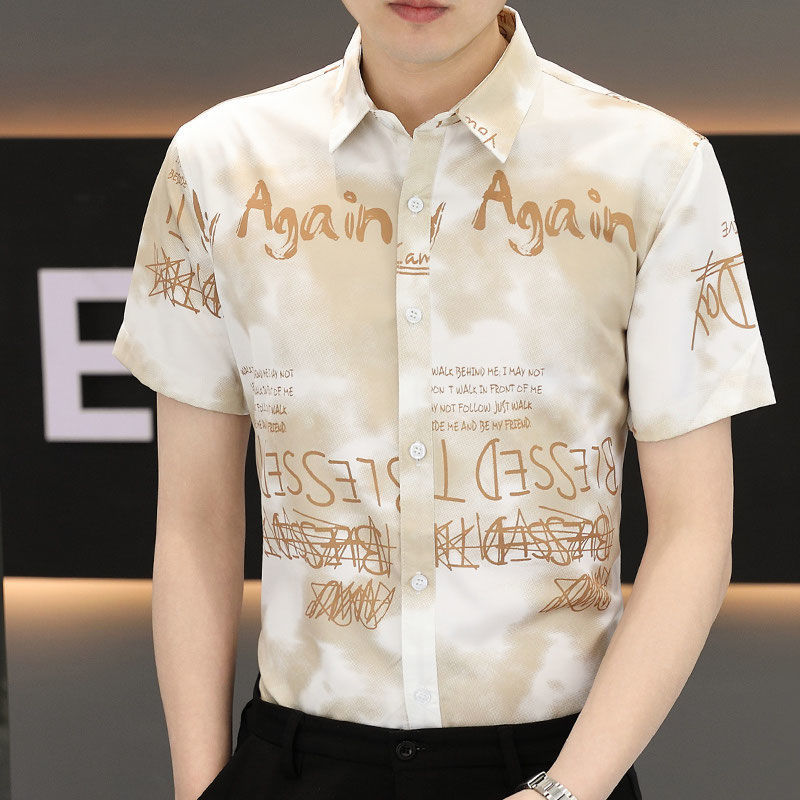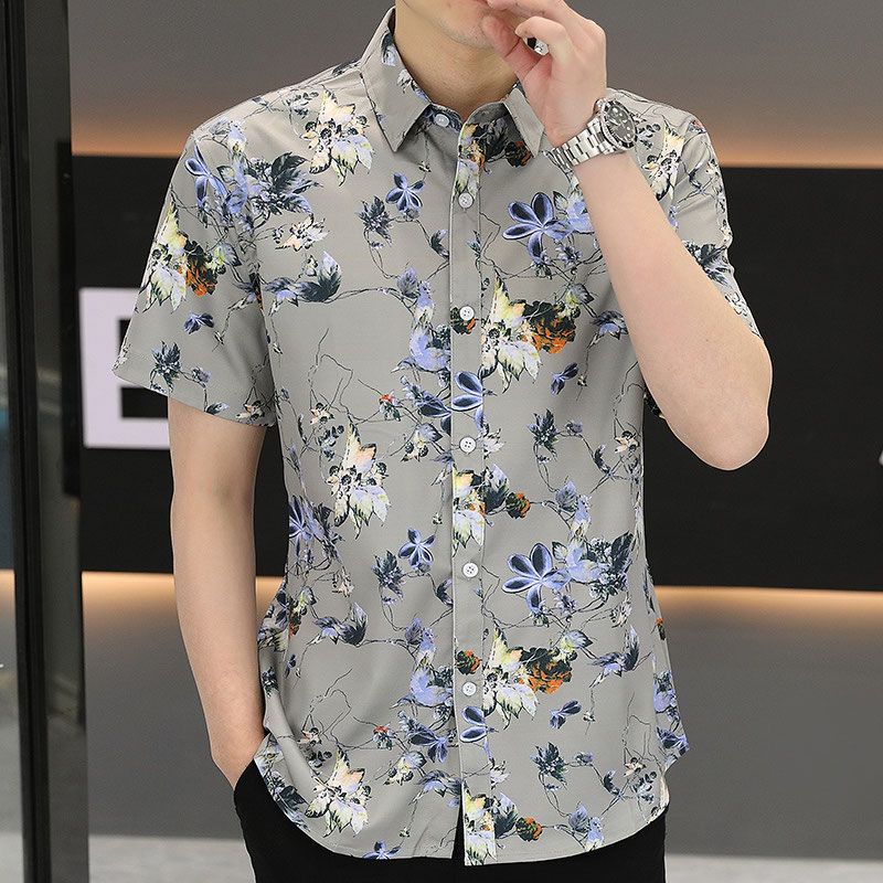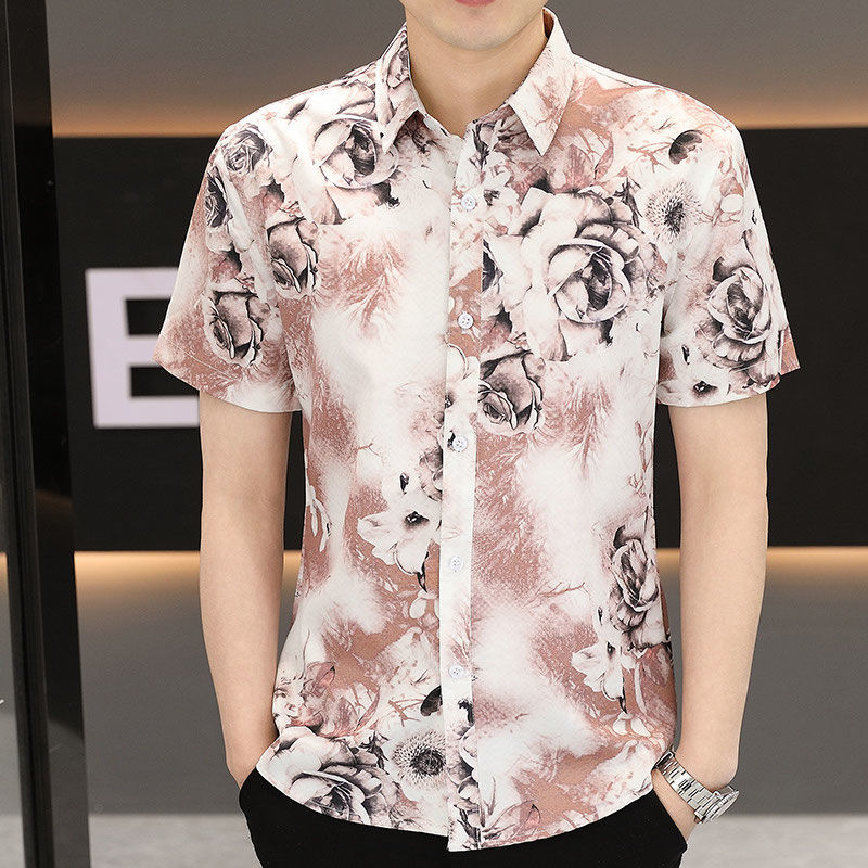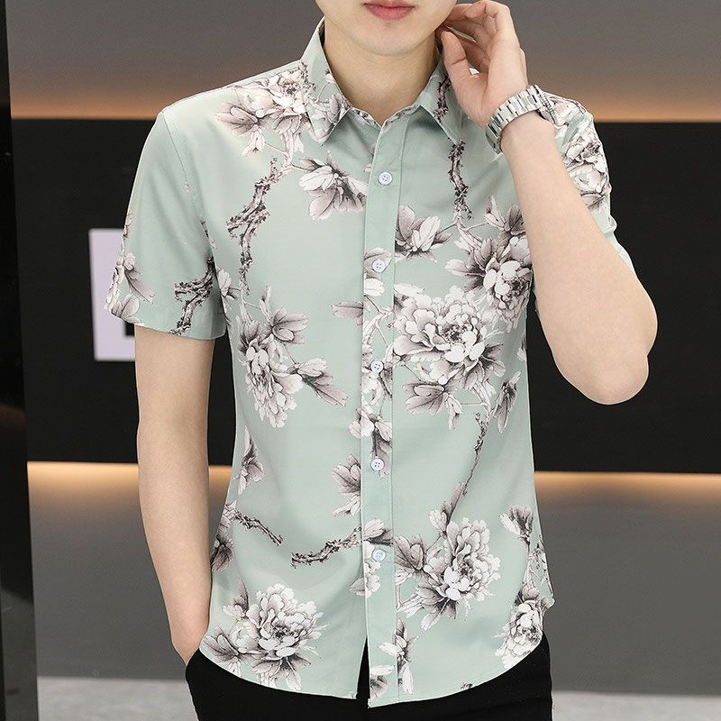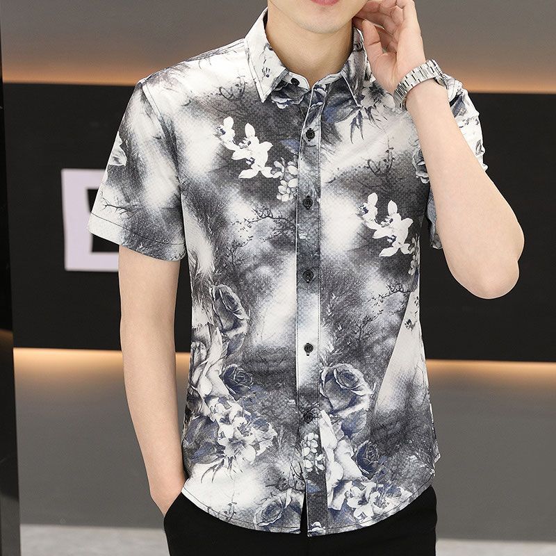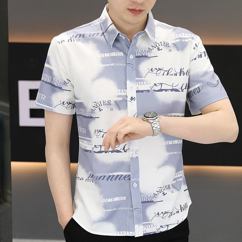 여름 남성 반팔 셔츠 비즈니스 캐주얼 청소년 잘 생긴 스트라이프 셔츠 한국식 슬림 핏 포켓 탑 의류 패션스토어 가기