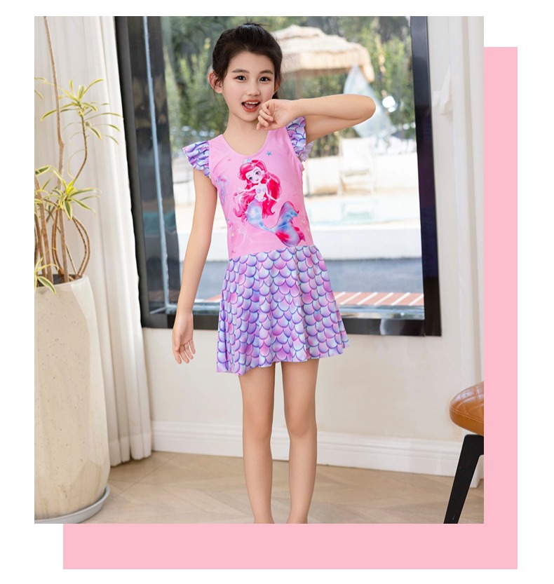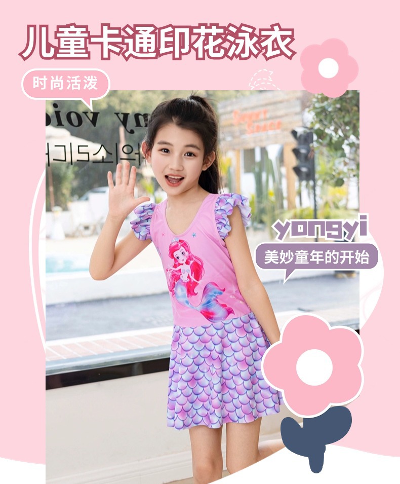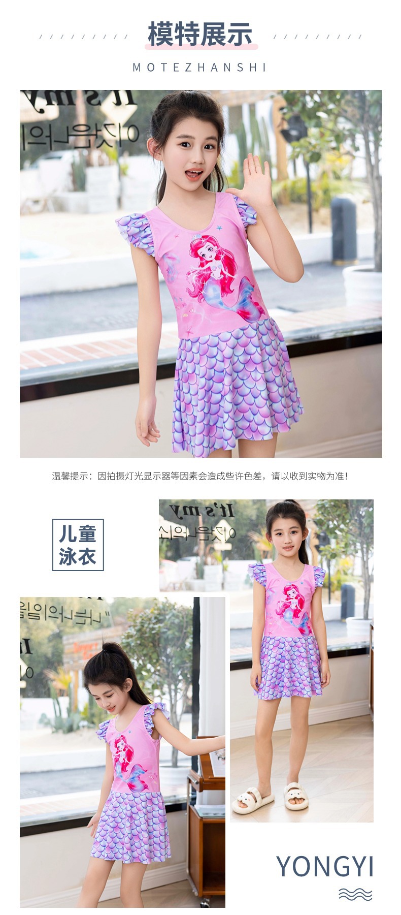 어린이 수영복 새로운 스타일 소녀 원피스 태양 보호 수영복 크로스 보더 인어 공주 만화 프린트 수영복 대외 무역스토어 가기