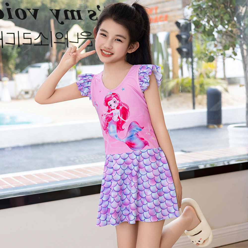 어린이 수영복 새로운 스타일 소녀 원피스 태양 보호 수영복 크로스 보더 인어 공주 만화 프린트 수영복 대외 무역