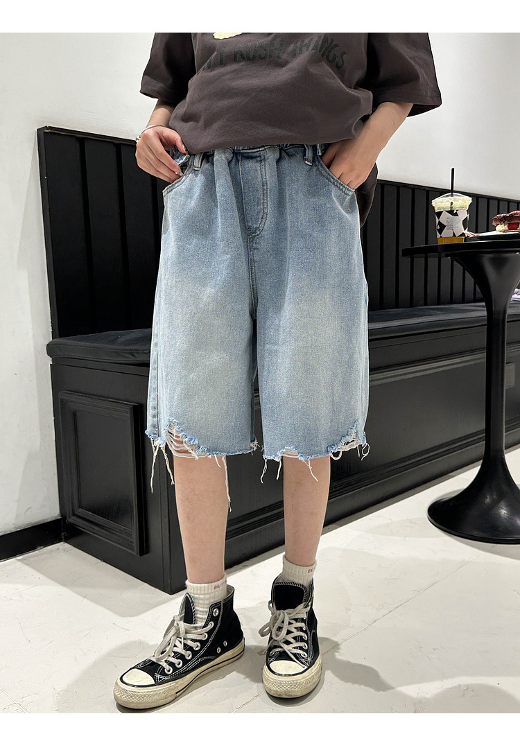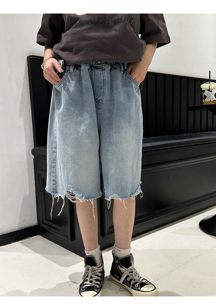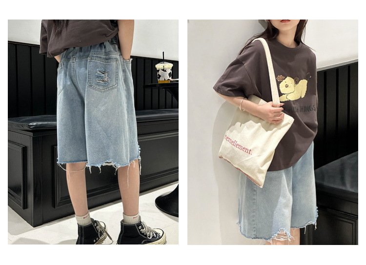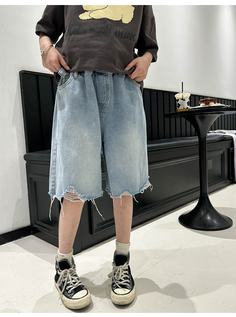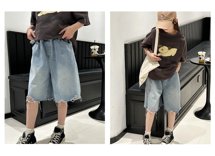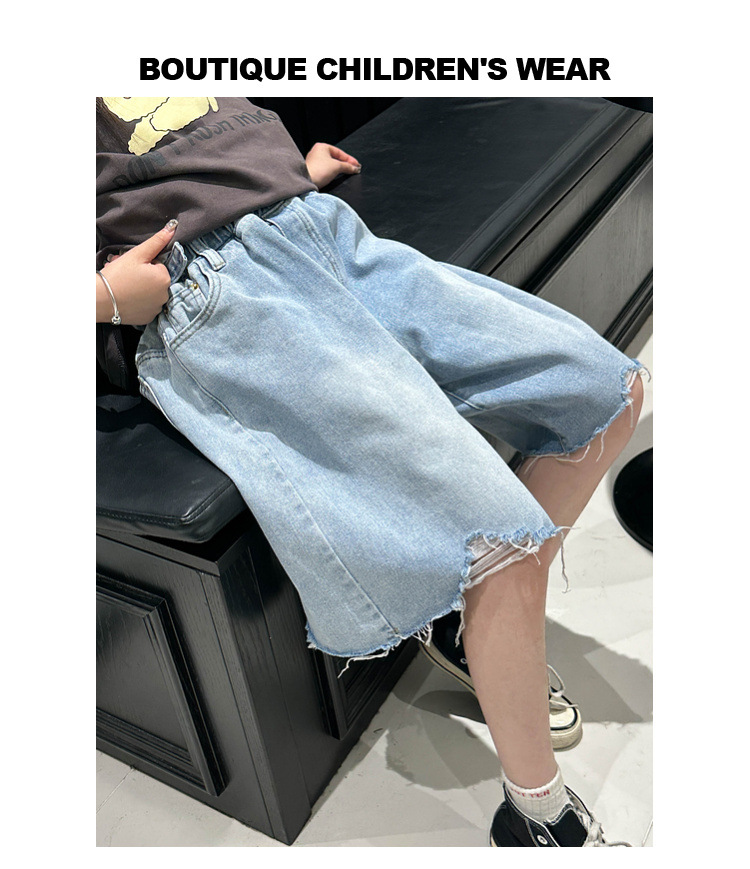 여아 데님 반바지 2026년 신상 아동 여름 얇은 5부 바지 루즈핏 여름옷 큰아이들을 위한 스타일리쉬한 바지스토어 가기