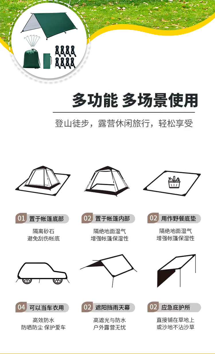 야외 다기능 사각형 캐노피 방수 자외선 차단제 해변 pergola 차양 텐트 경량 실버 코팅 매트 바닥 천