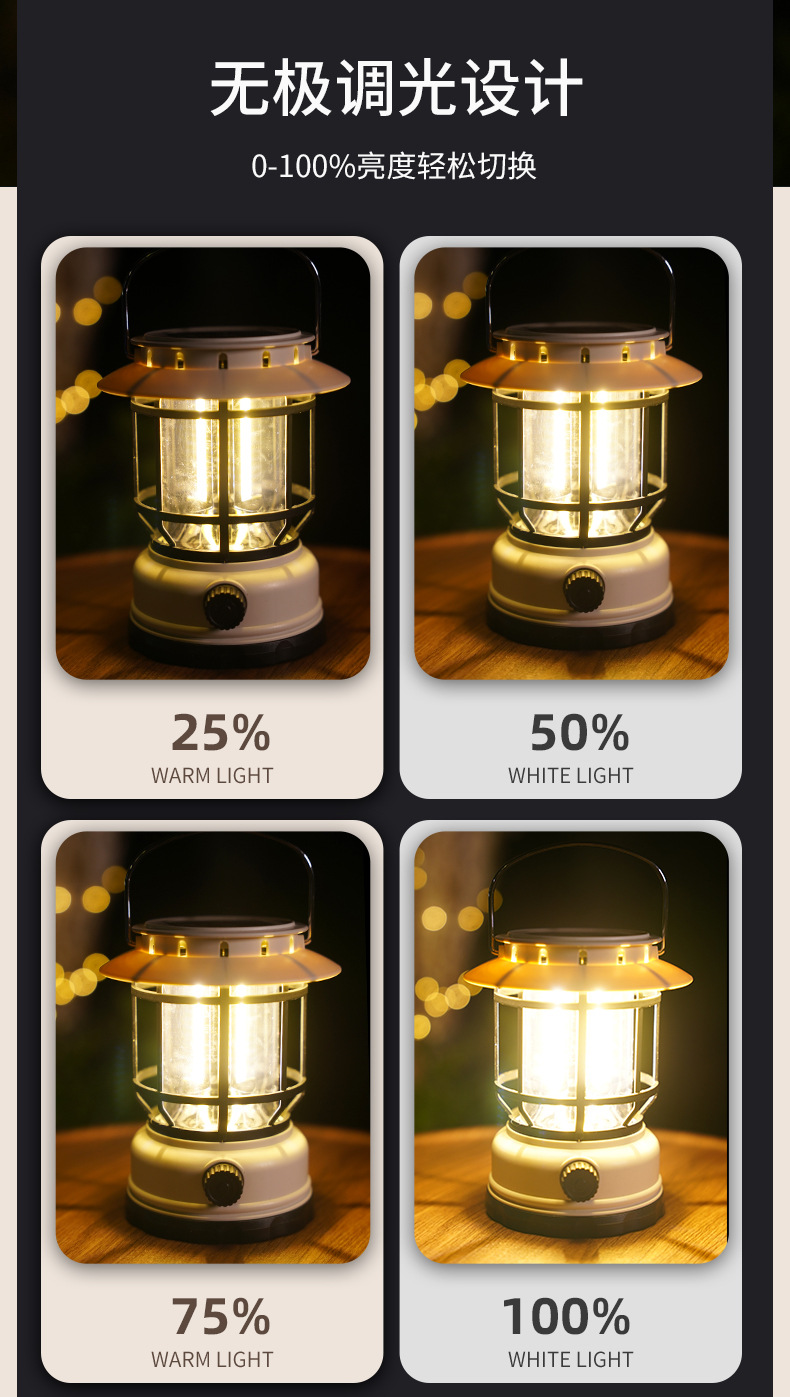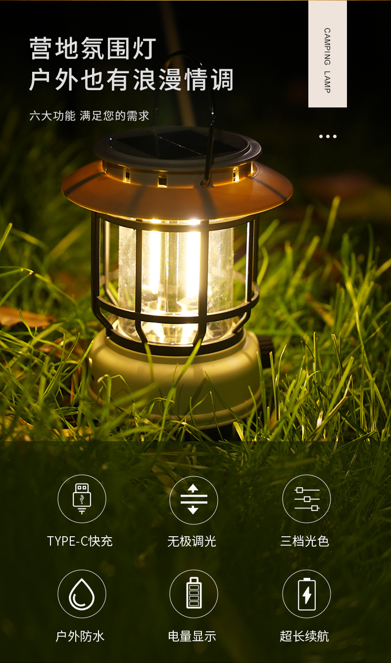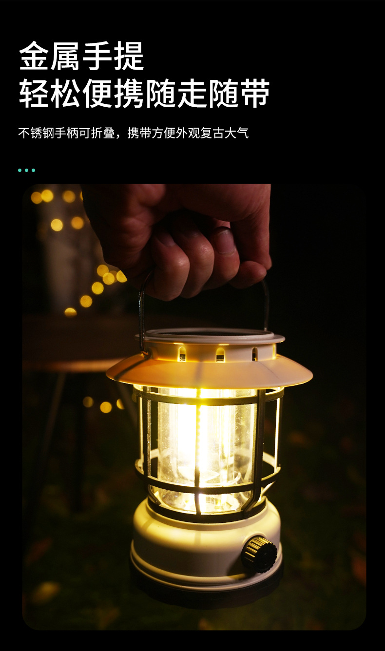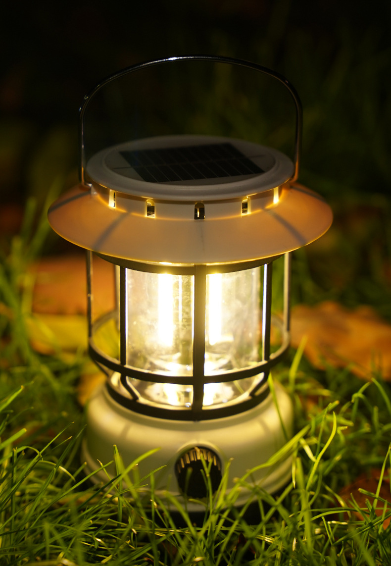 새로운 복고풍 태양 충전식 캠핑 라이트 조랑말 랜턴 야외 분위기 조명 led 휴대용 램프 텐트 라이트스토어 가기