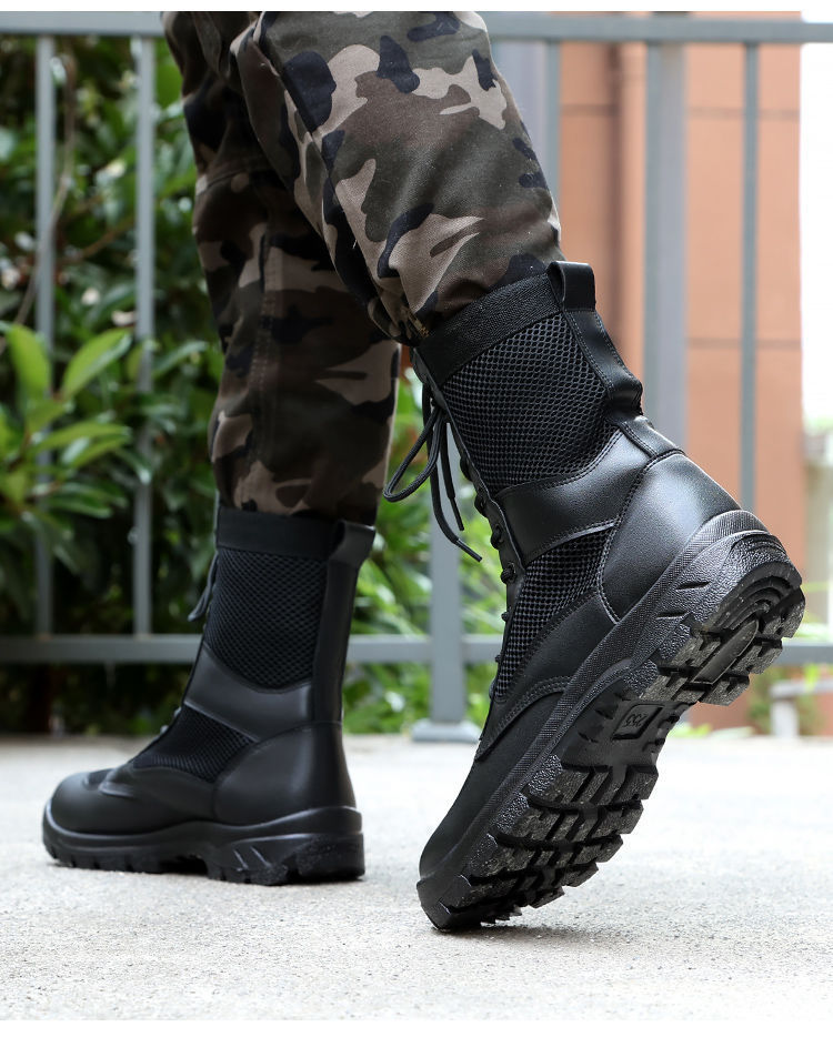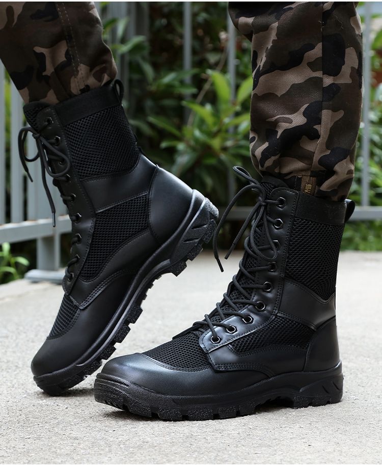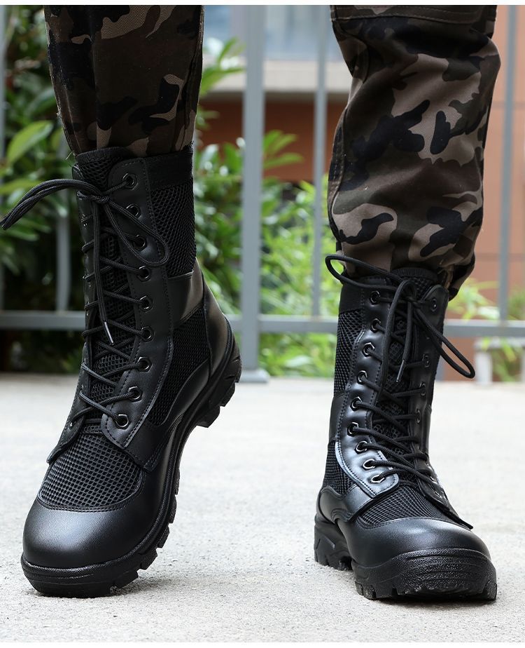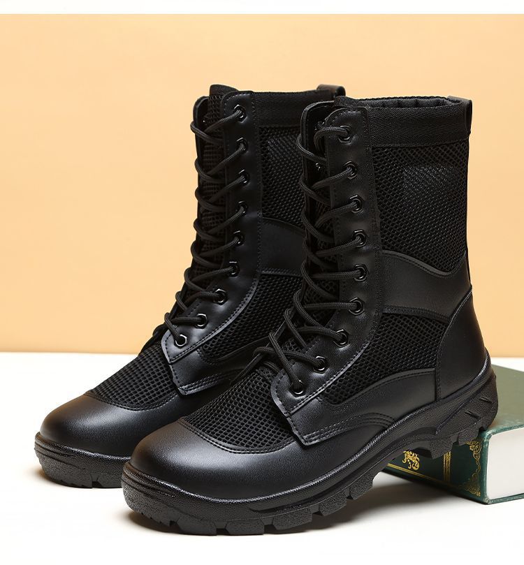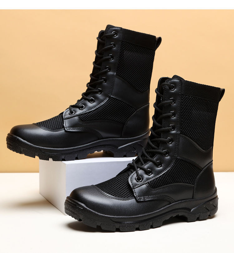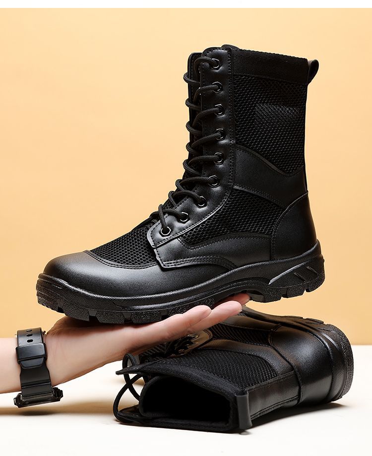 남성 초경량 메쉬 야외 훈련 부츠 내마모성 보안 부츠 여름 마틴 부츠 하이 탑 하이킹 부츠