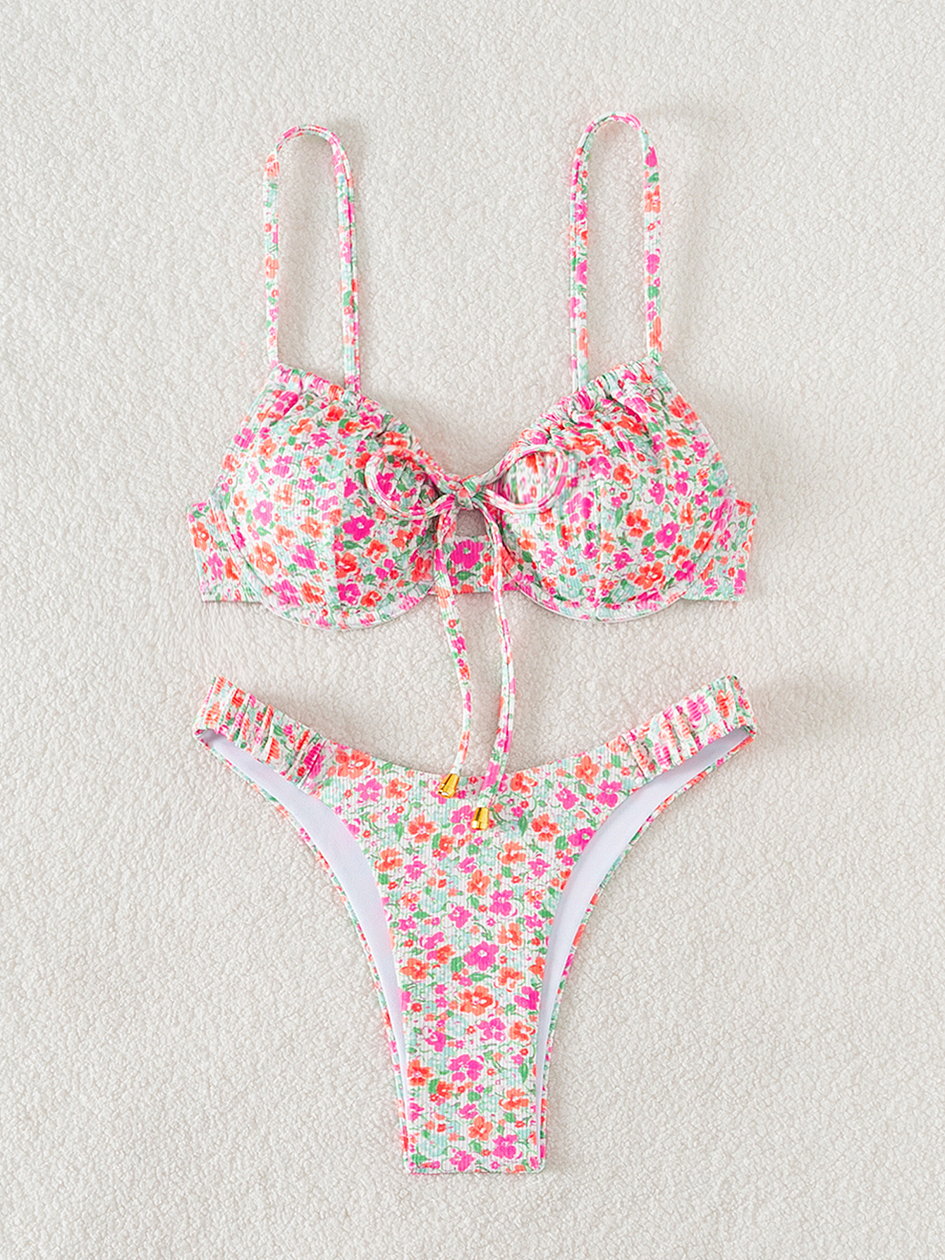 작은 피트 패브릭 더블 어깨 삼각형 수영 트렁크 비키니 세트 가슴 패드와 함께 비키니 인쇄 유럽과 미국의 대외 무역 수영복