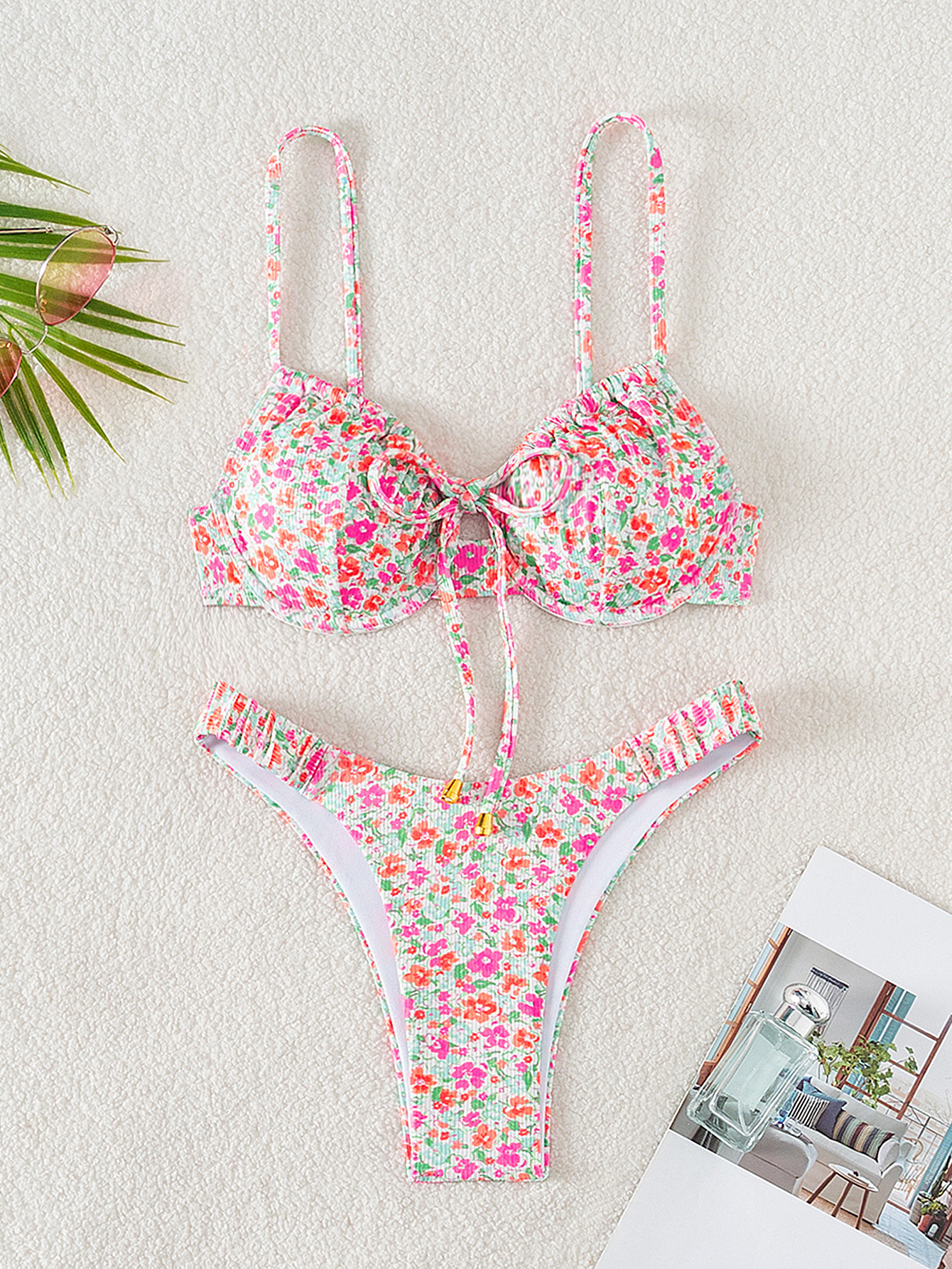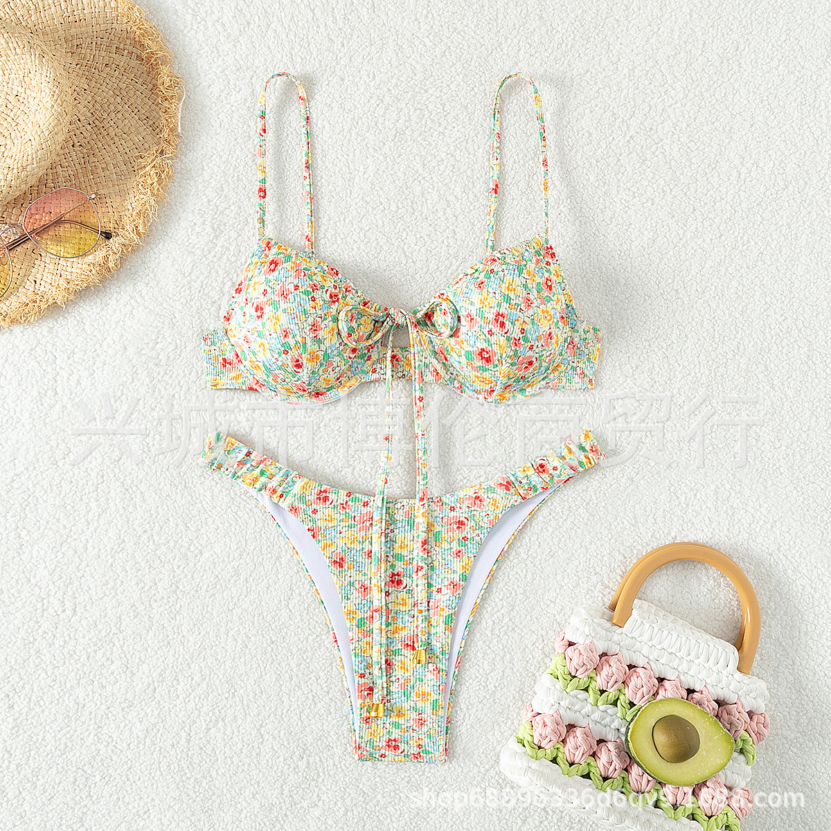 작은 피트 패브릭 더블 어깨 삼각형 수영 트렁크 비키니 세트 가슴 패드와 함께 비키니 인쇄 유럽과 미국의 대외 무역 수영복스토어 가기