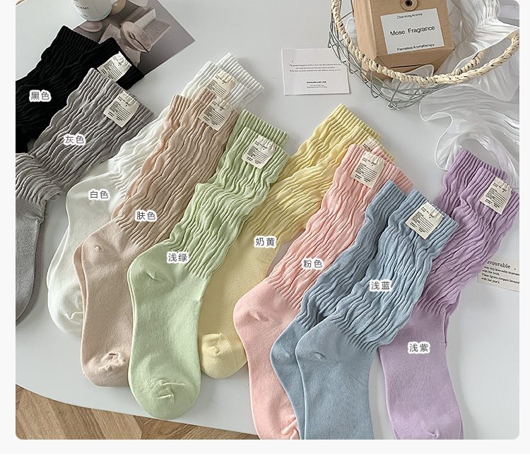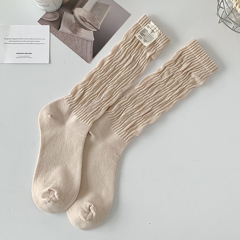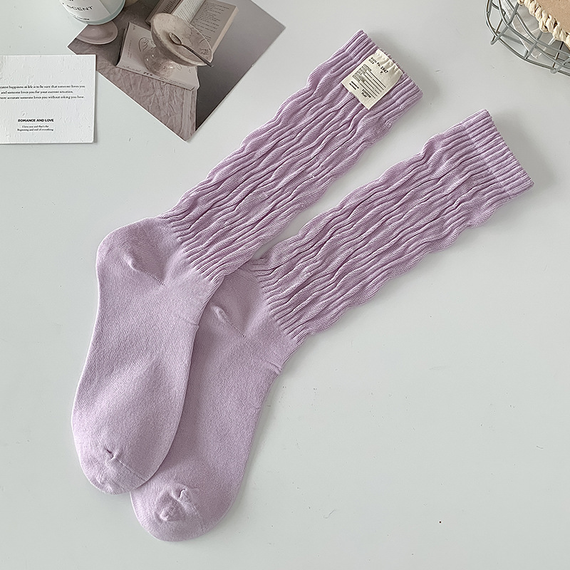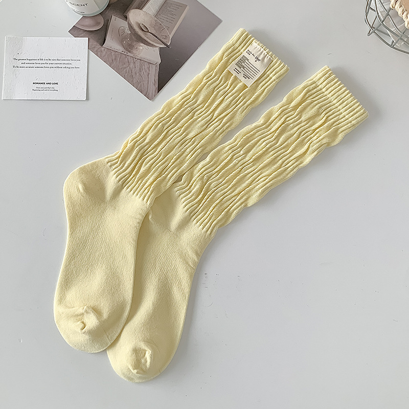 여성 양말 일본식 단색면 중간 종아리 양말 여성의 긴 꼬인 양말, 트렌디 한 파일 양말 도매스토어 가기