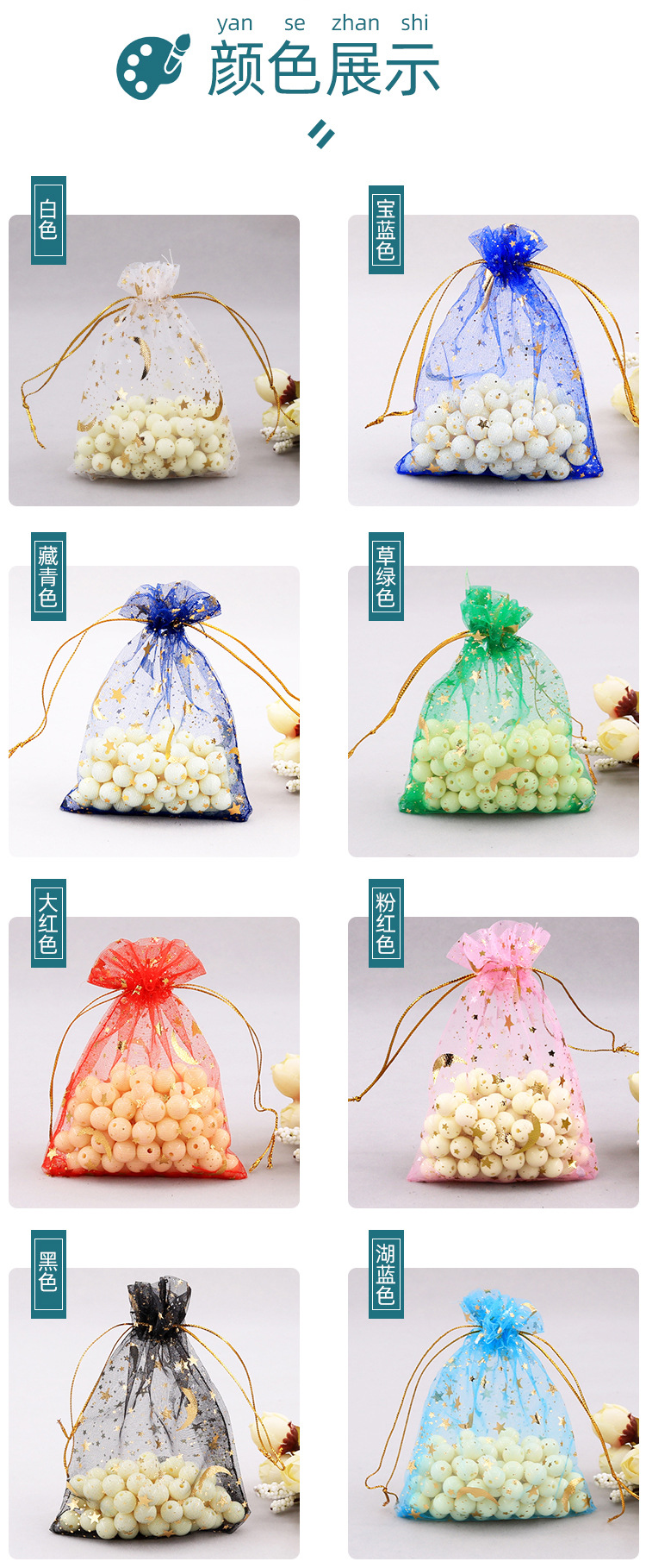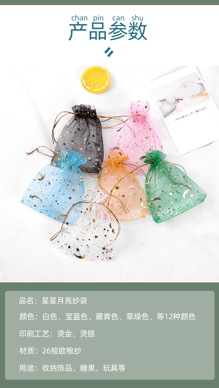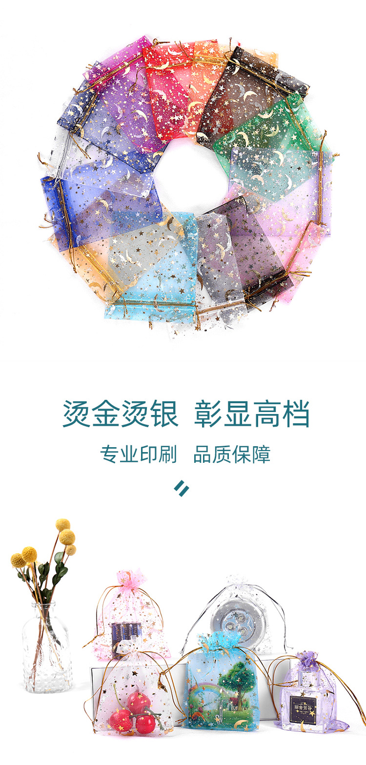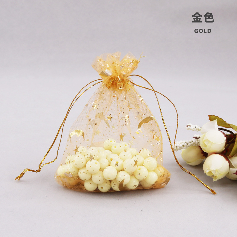 국경 간 작은 거즈 가방 도금 스타 문 투명 오간자 거즈 가방 보석 번들 포켓 선물 포장 가방