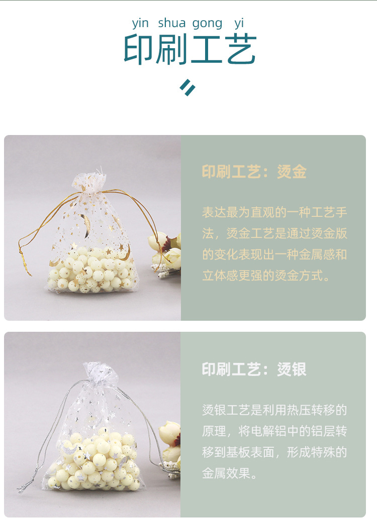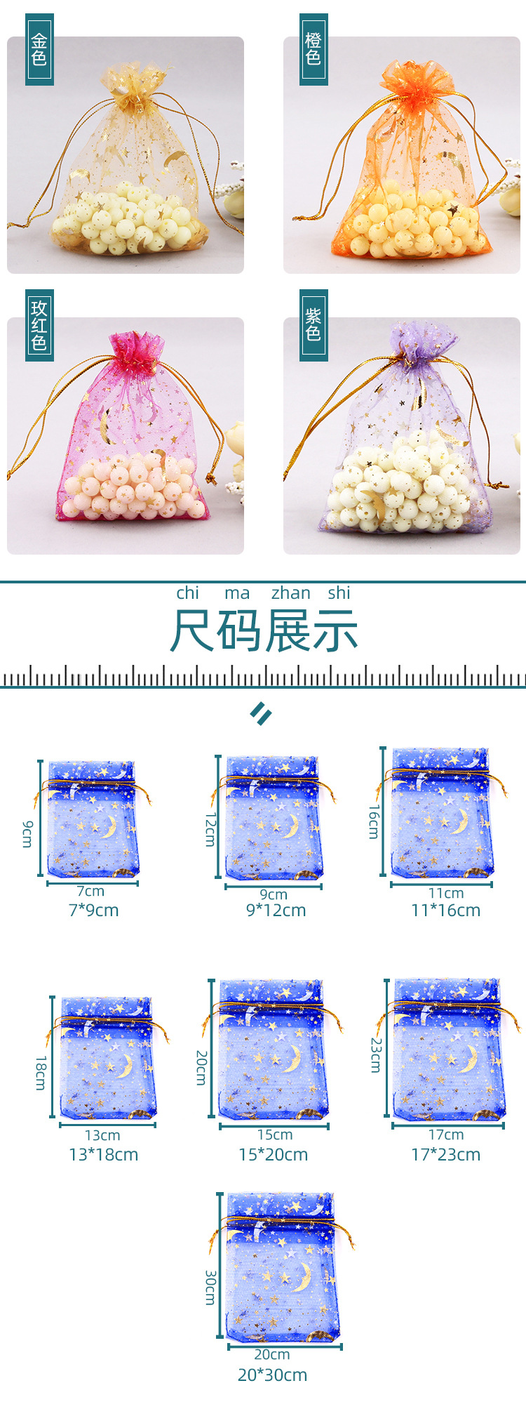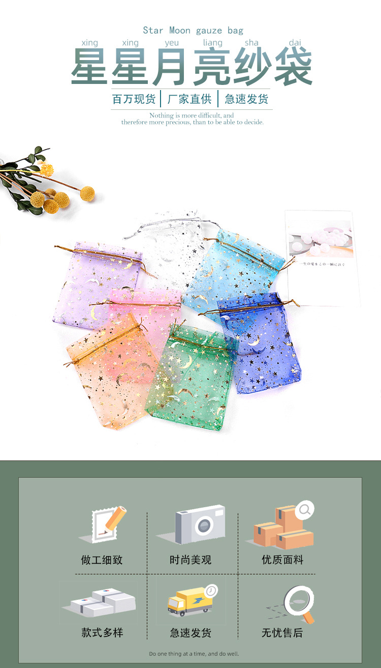 국경 간 작은 거즈 가방 도금 스타 문 투명 오간자 거즈 가방 보석 번들 포켓 선물 포장 가방