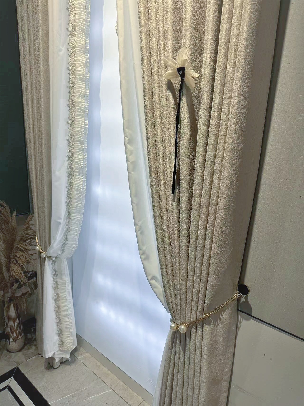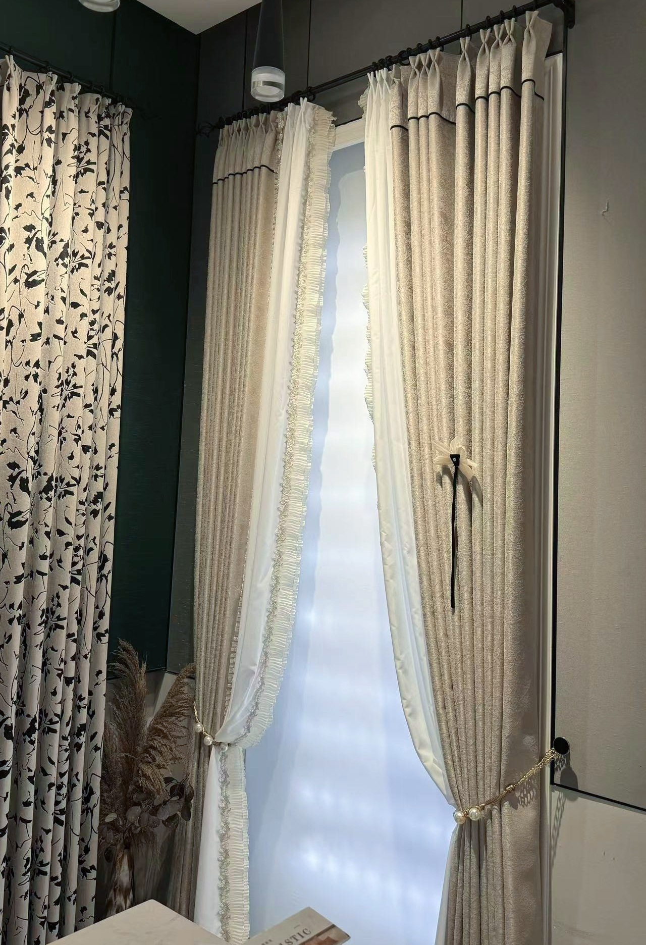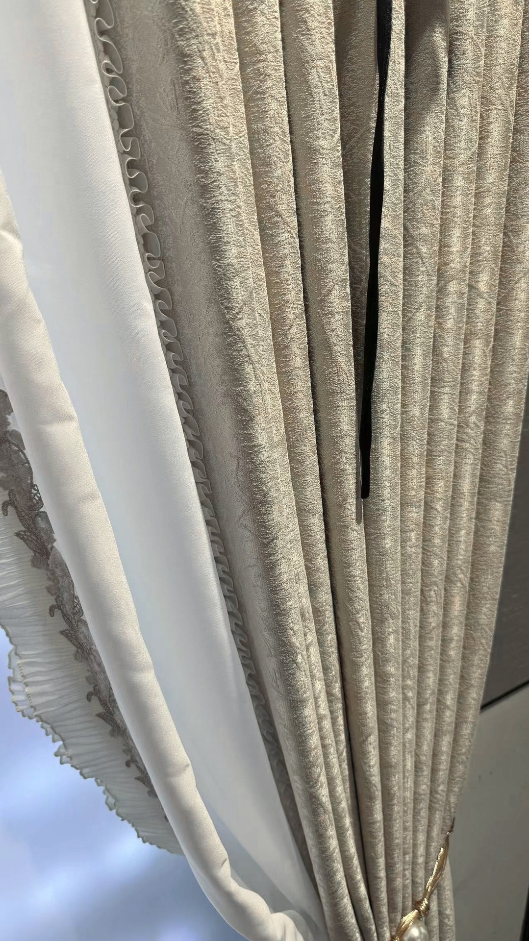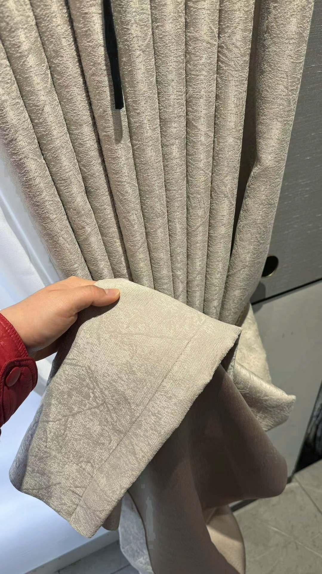 현대적인 간단한 프랑스 스타일의 가벼운 고급 자카드 고정밀 음영 커튼 패브릭 거실 우유 차 컬러 침실 회색 커튼 완제품스토어 가기
