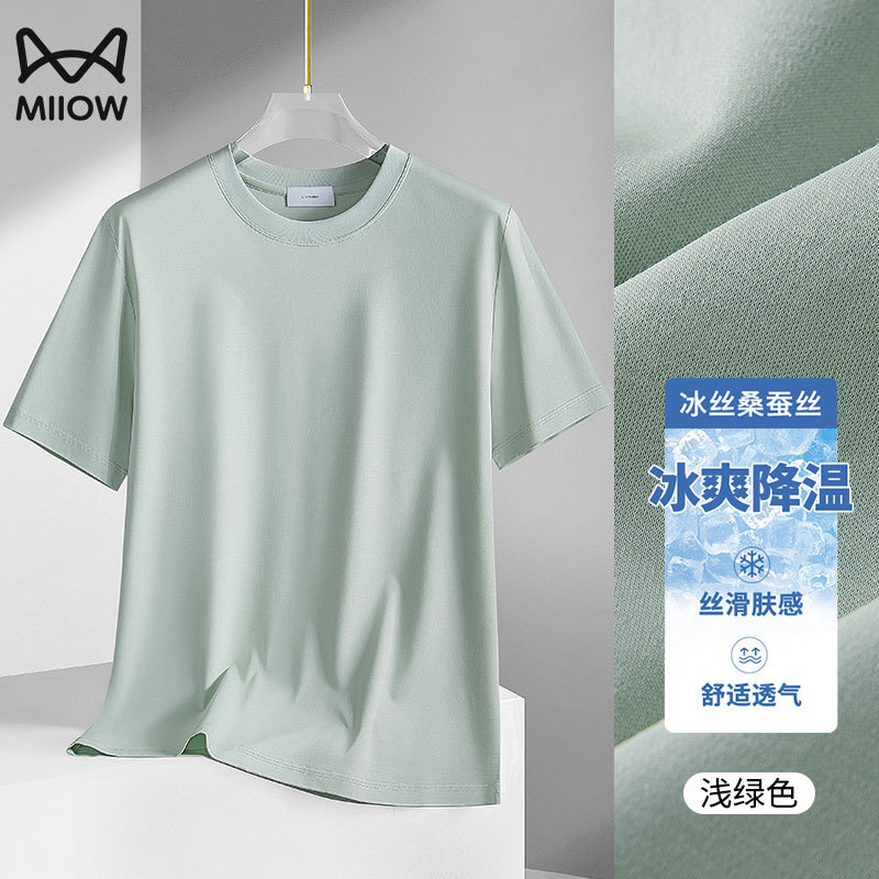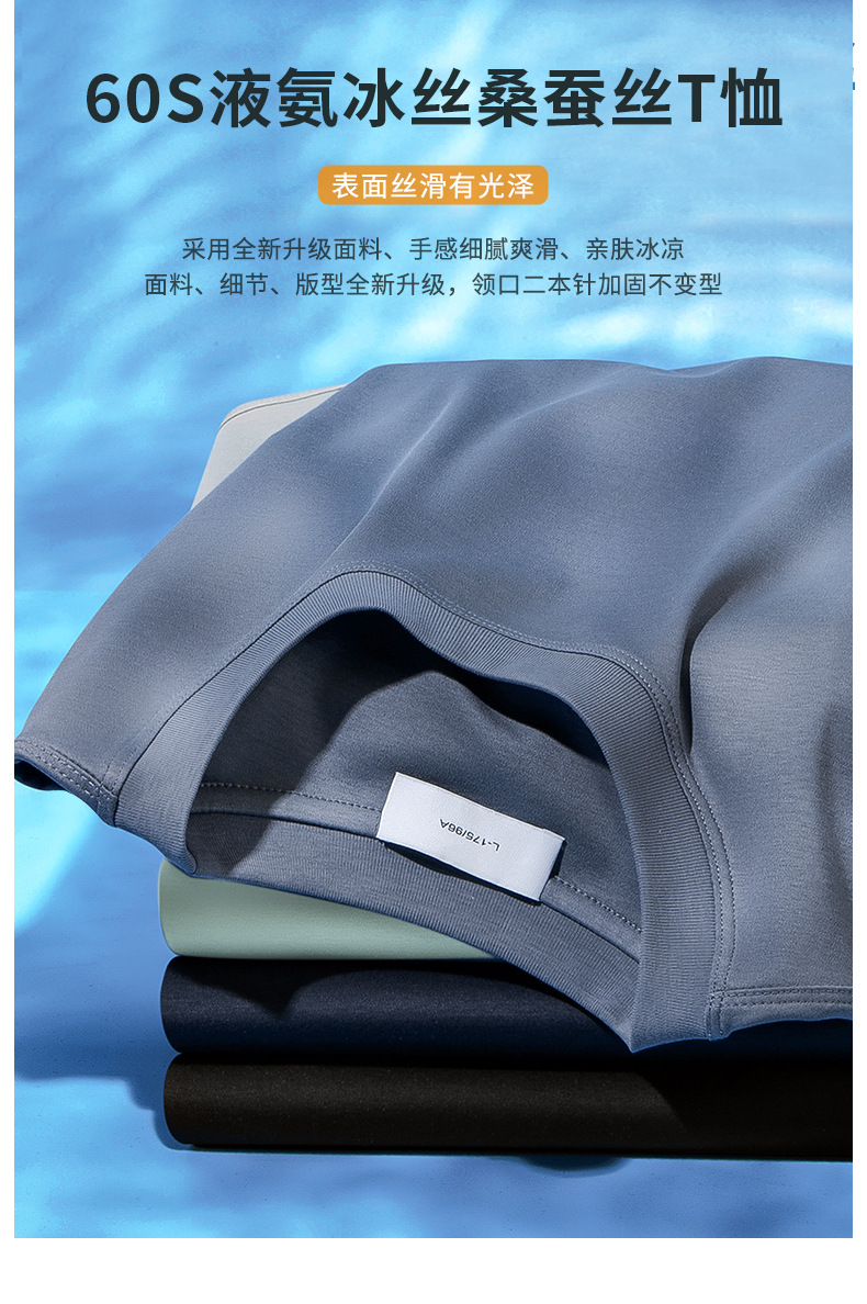 60년대 액체 암모니아 티셔츠 남성용 뽕나무 실크 반팔 여름 아이스 실크 2025 새로운 스트레치 쿨 탑 [7A 항균]스토어 가기
