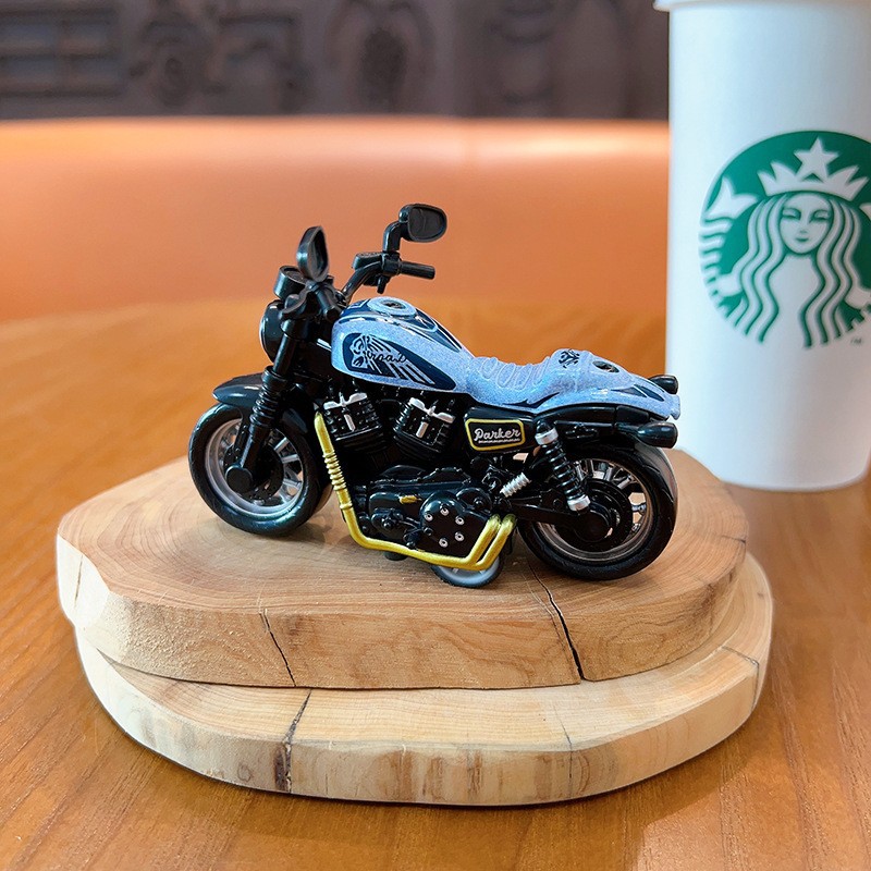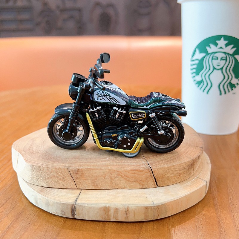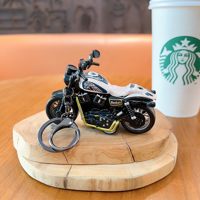 만화 오토바이 인형 시뮬레이션 자동차 키 체인 귀여운 장난감 펜던트 크리 에이 티브 데스크탑 장식품 선물 도매스토어 가기