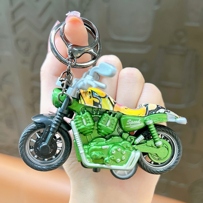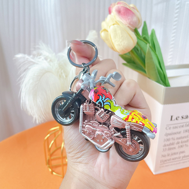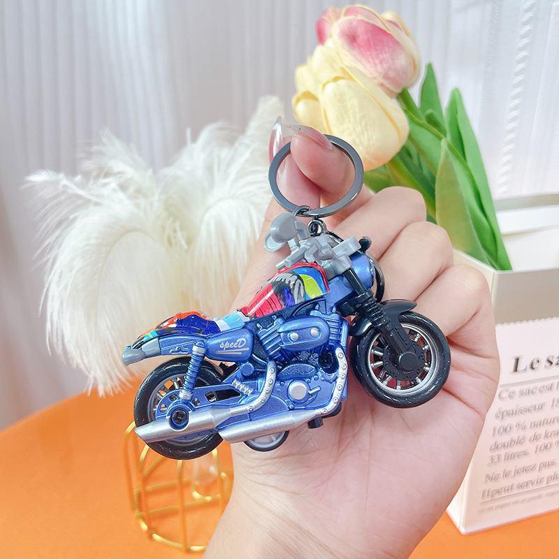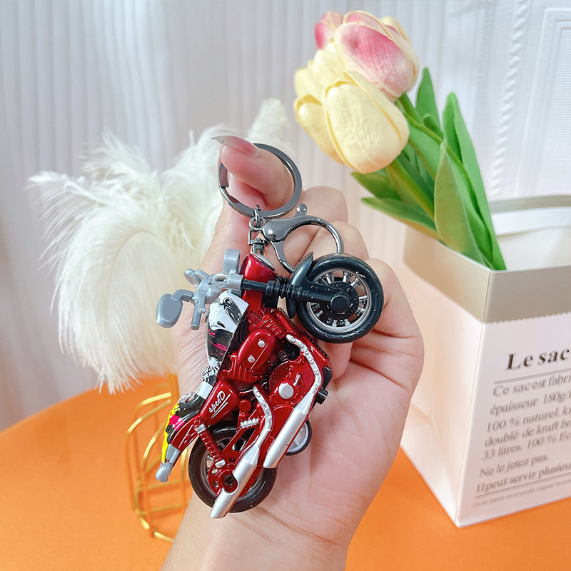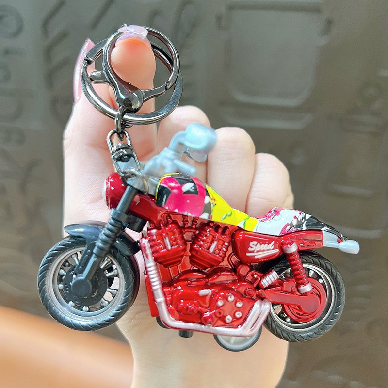 만화 오토바이 인형 시뮬레이션 자동차 키 체인 귀여운 장난감 펜던트 크리 에이 티브 데스크탑 장식품 선물 도매
