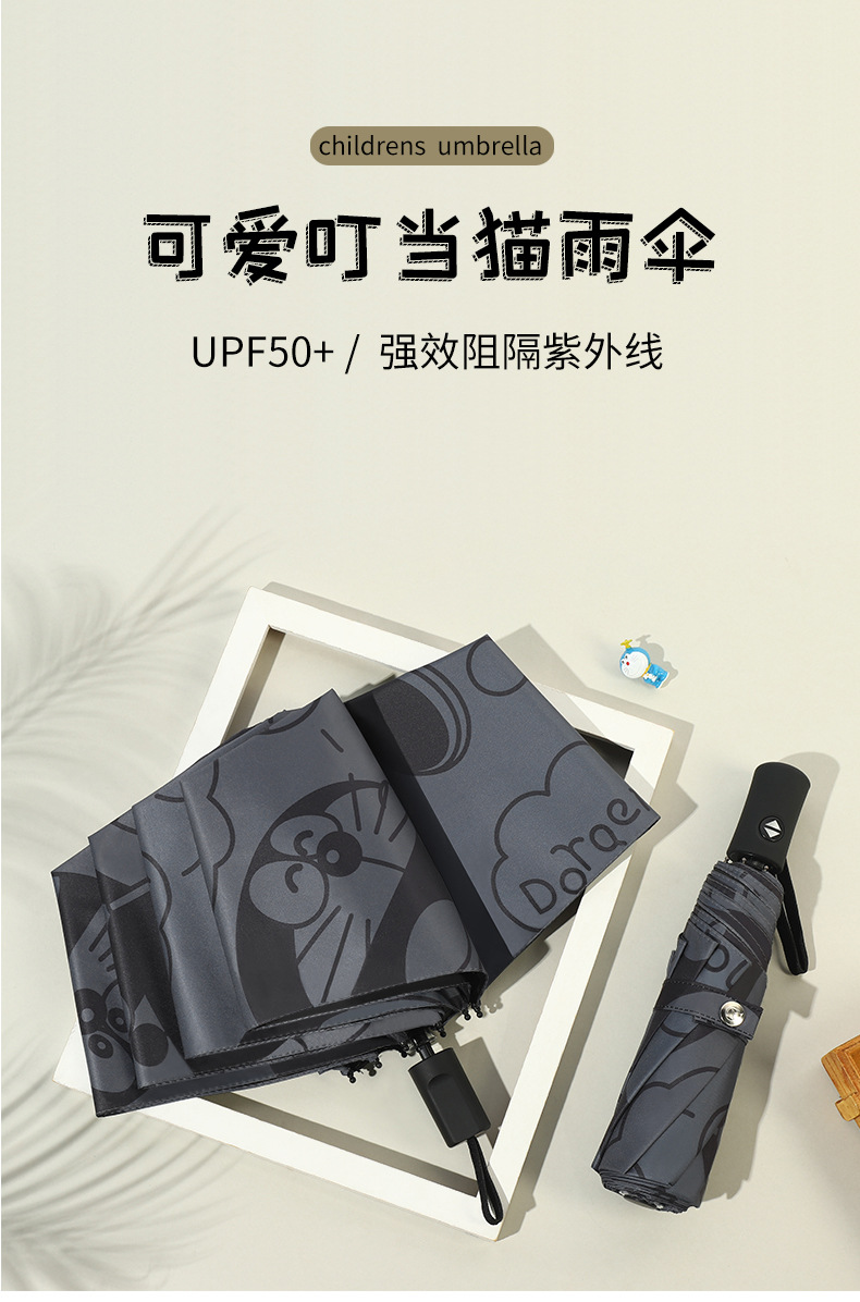 도라에몽 우산 태양 보호 자외선 보호 여성 태양 우산 비 이중 사용 태양 우산 학생 접이식 완전 자동 우산