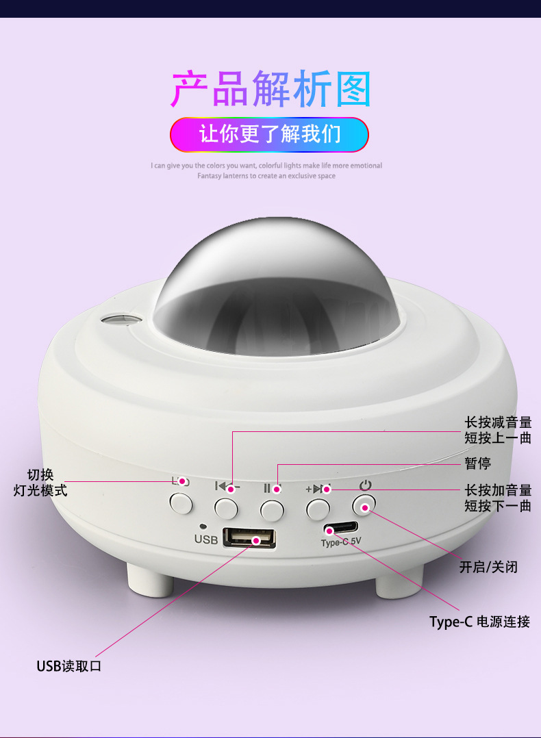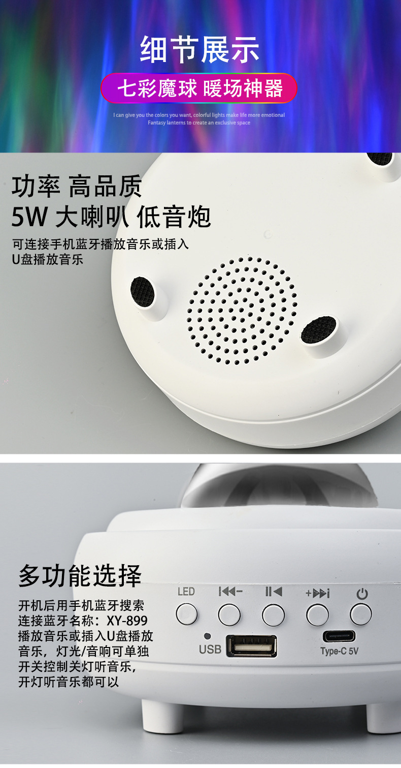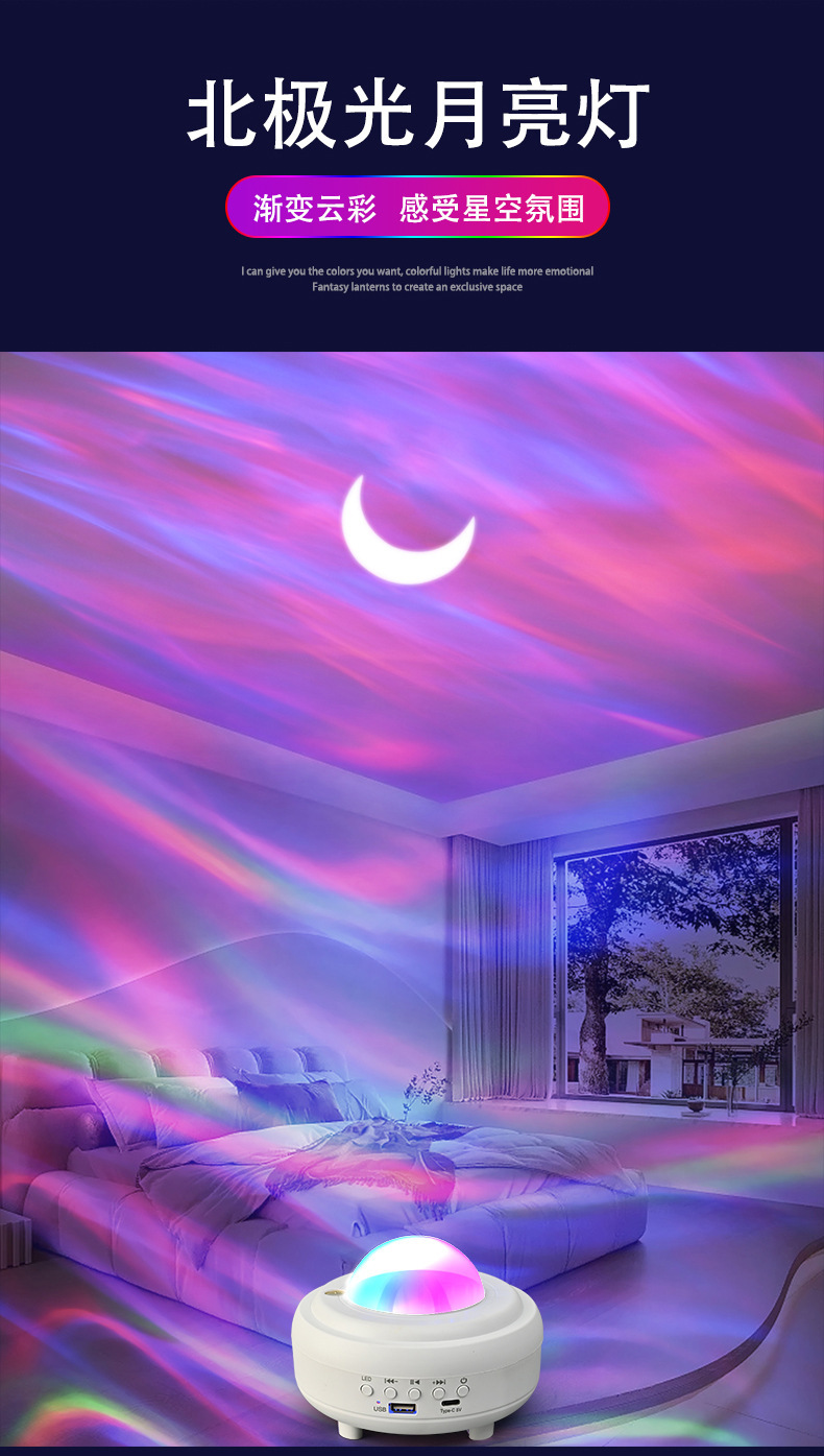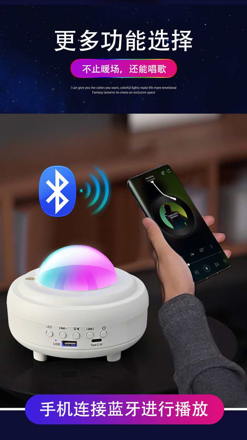 폭발적인 국경 블루투스 스타 빛 달 빛 프로젝션 빛 분위기 빛 서브 우퍼 다채로운 블루투스 야간 조명