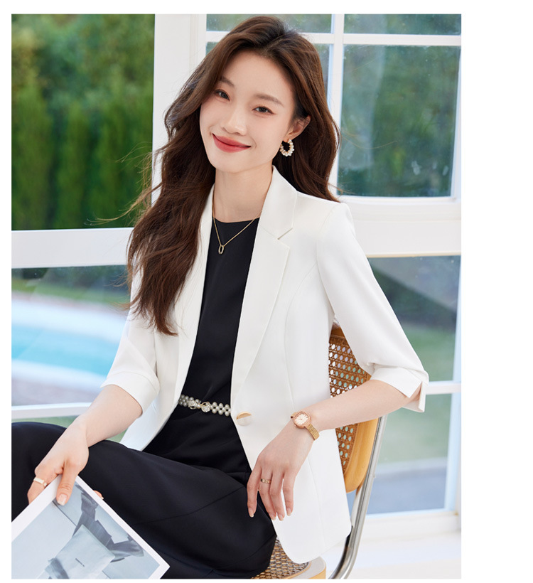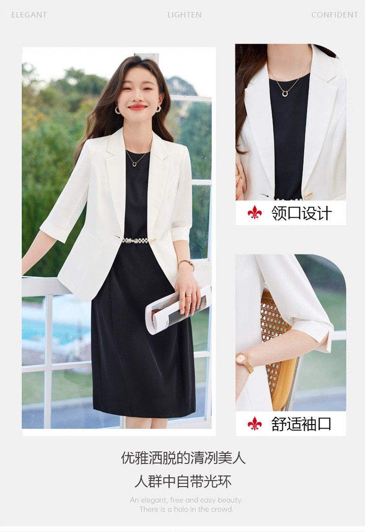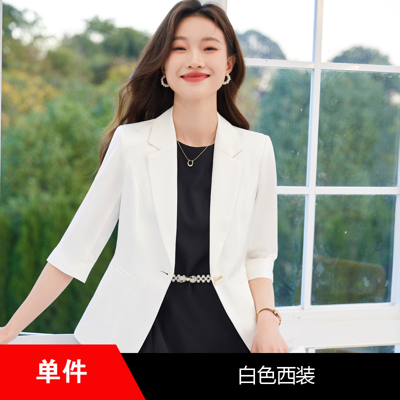 여성용 화이트 블레이저 여름 얇은 스타일 2025 여름 고급스러운 중간 소매 정장 원피스 직업용 정장 스커트스토어 가기