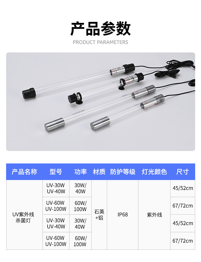 UV 어항 살균등 자외선 어류 연못 정수 조류 제거 잠수 살균등 수족관 소독등 수족관 램프