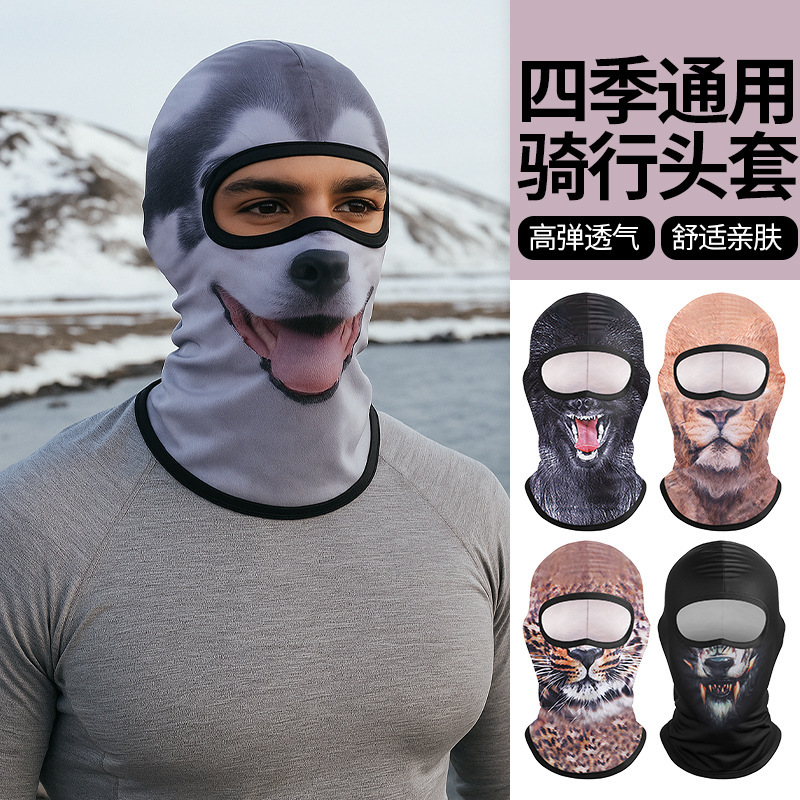 겨울 모자 스카프 일체형 사이클링 헤드기어 동물 얼굴 디지털 프린트 보온 후드 얼굴 보호 스키 마스크