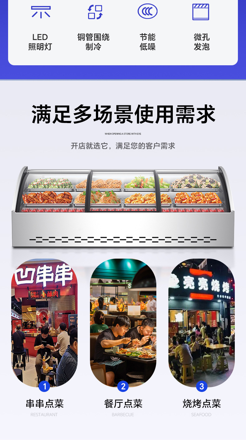 상업용 사다리 냉동고 데스크탑 디스플레이 캐비닛 냉장 냉장고 해산물 튀김 문자열 Malatang a la carte Stall Freezer