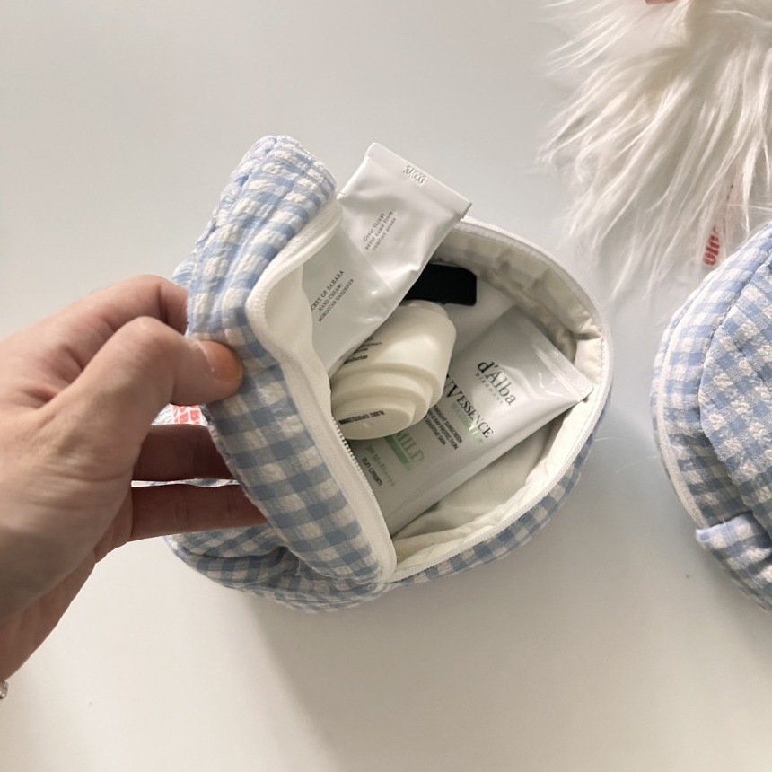 인스 스타일 메이크업 가방 대용량 학생 세면도구 가방 여행용 휴대용 화장품 수납 가방 항균 체크무늬