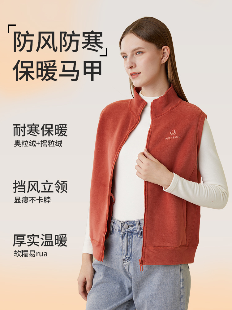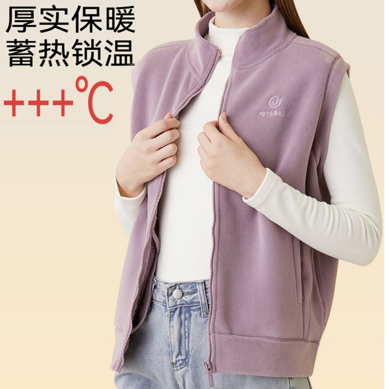 Aoli 벨벳 스탠드 칼라 지퍼 조끼 여성의 가을과 겨울 방풍 따뜻한 캐주얼 재킷 기모 민소매 양복 조끼