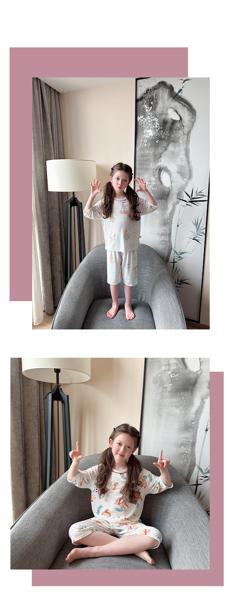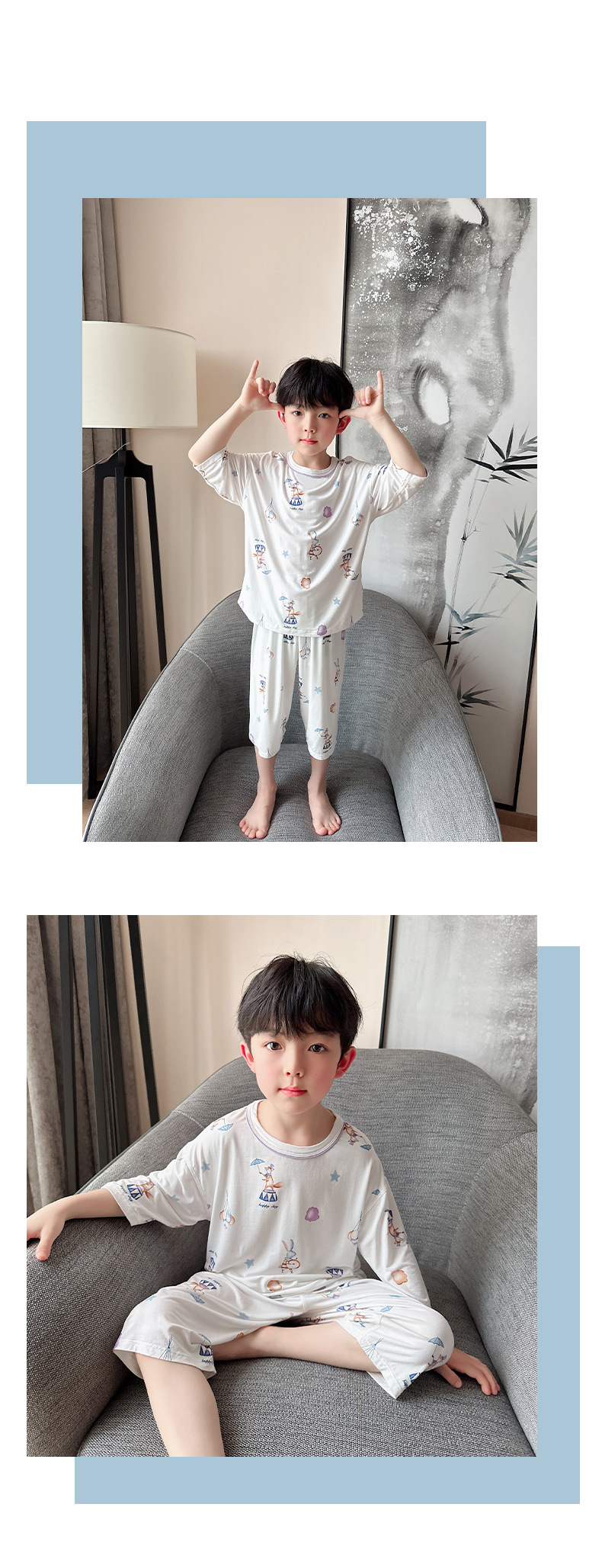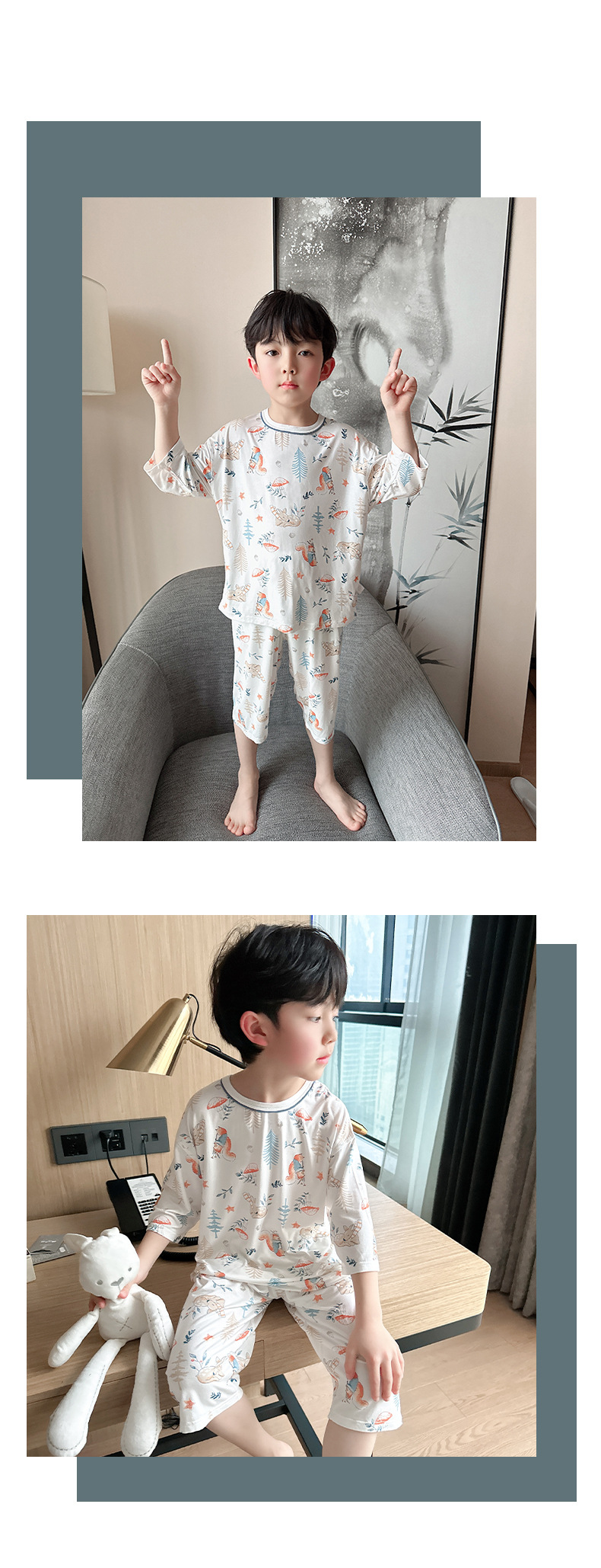 3-15 세 소년 여름 youkosi 시원한 에어컨 의류 80-160cm 소녀 7 소매 자른 바지 잠옷