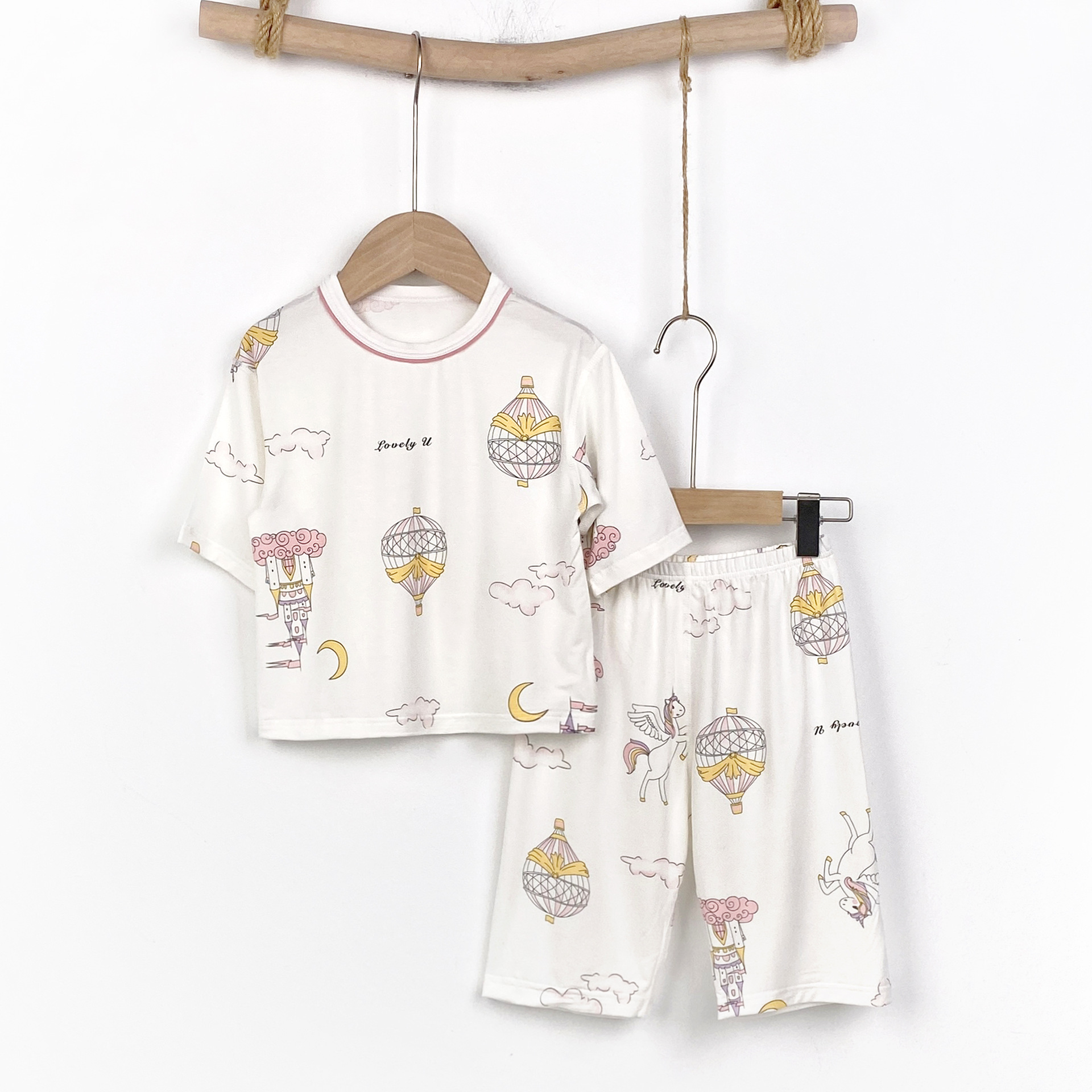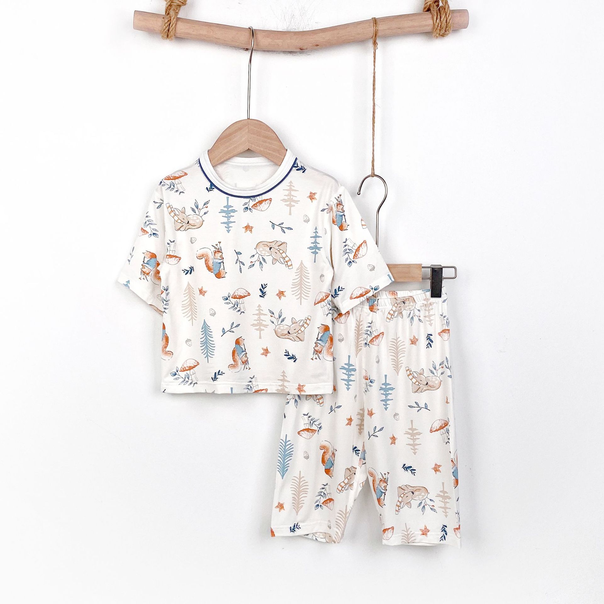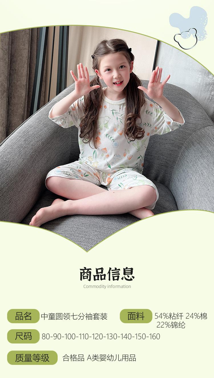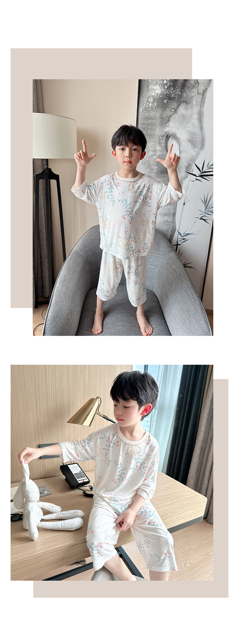 3-15 세 소년 여름 youkosi 시원한 에어컨 의류 80-160cm 소녀 7 소매 자른 바지 잠옷