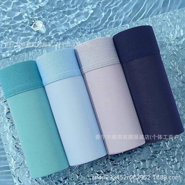 남자 속옷 아이스 실크 단색 통기성 원활한 복서 브리프 여름 편안한 플러스 사이즈 달리기 권투 선수 머리 도매스토어 가기