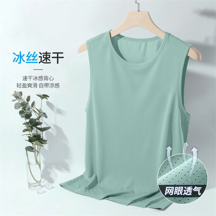 여름 아이스 실크 얇은 조끼 남성용 메쉬 언더 셔츠 야외 스포츠 달리기 등반 옷 원피스 배달스토어 가기