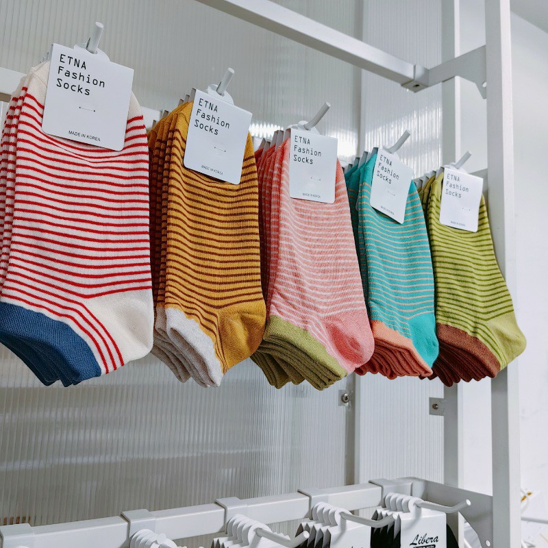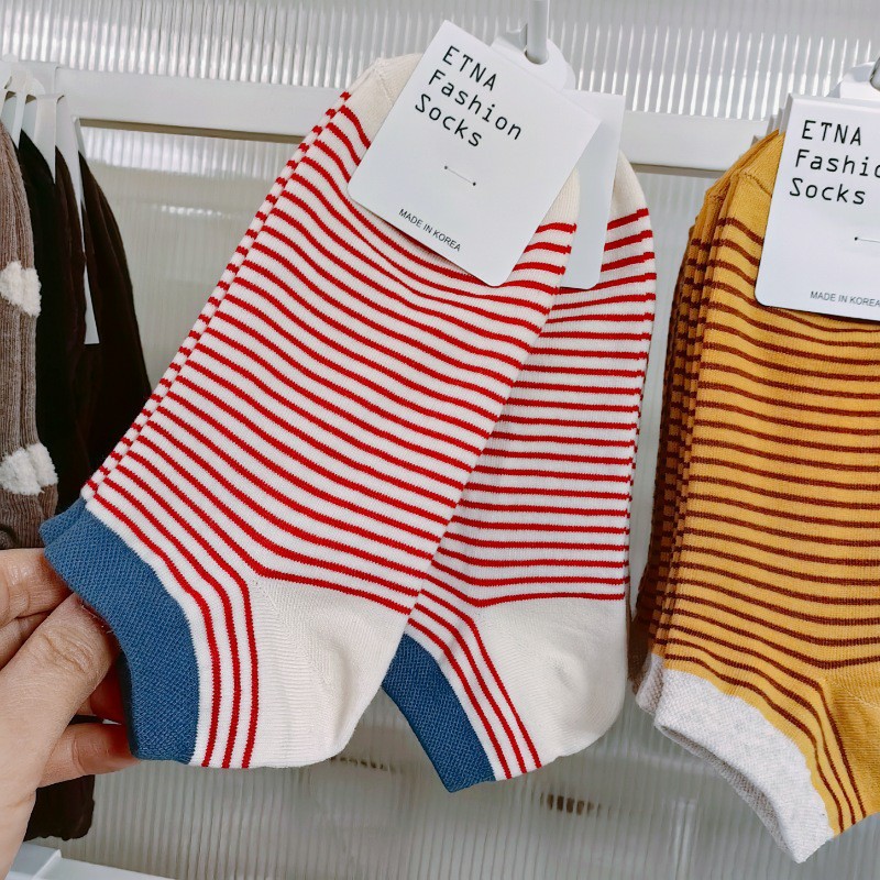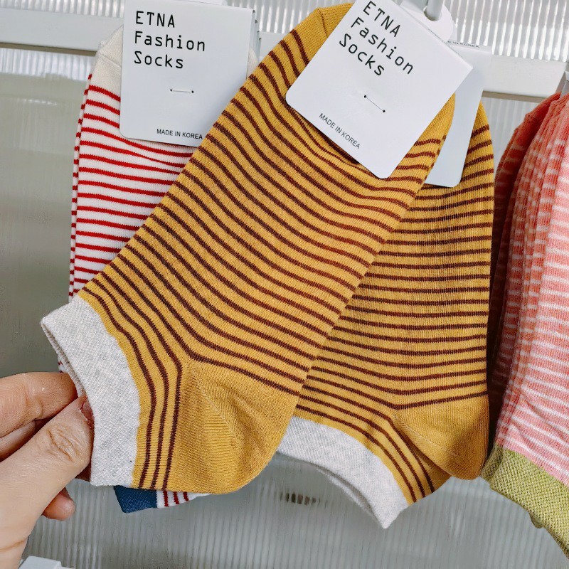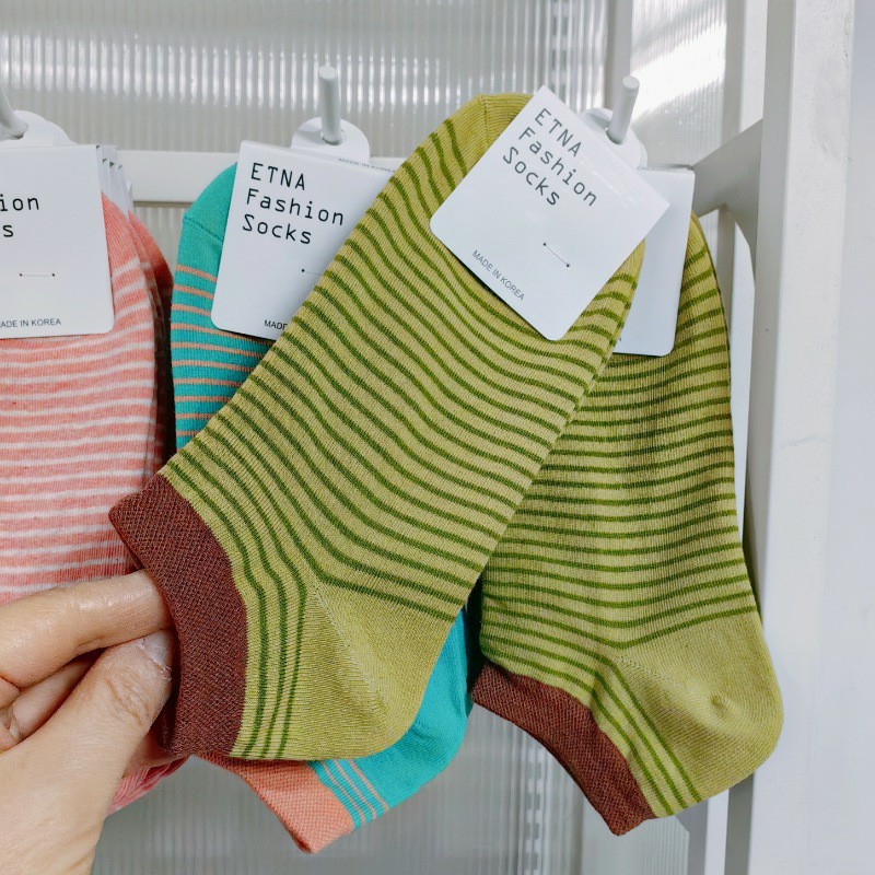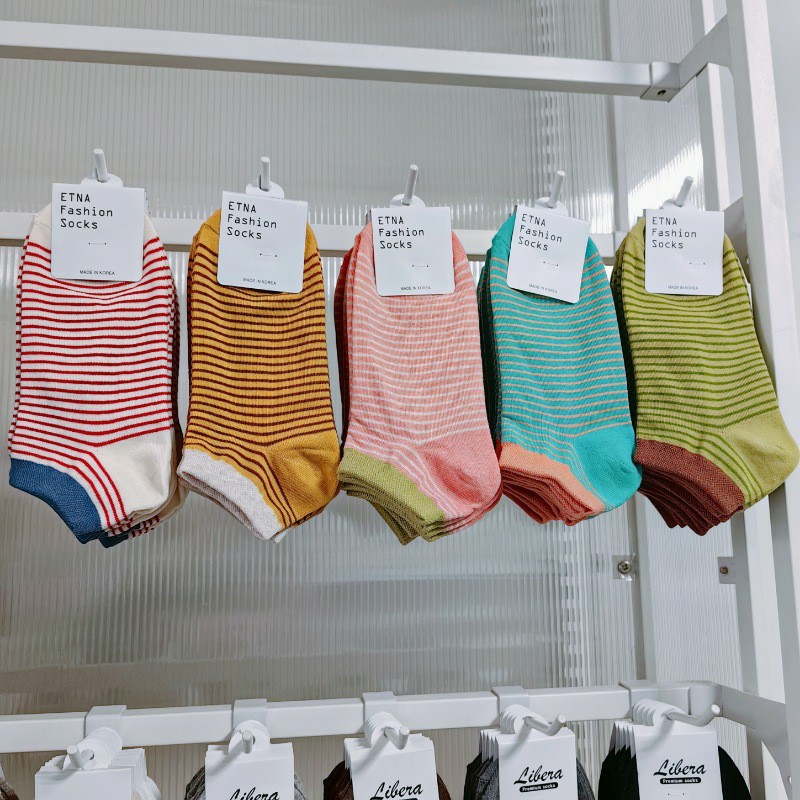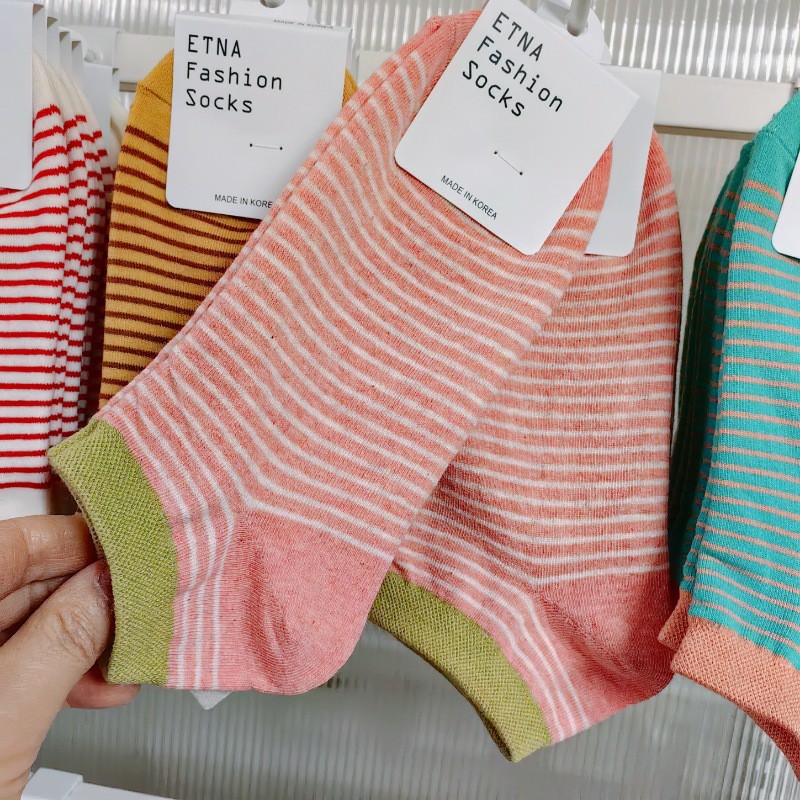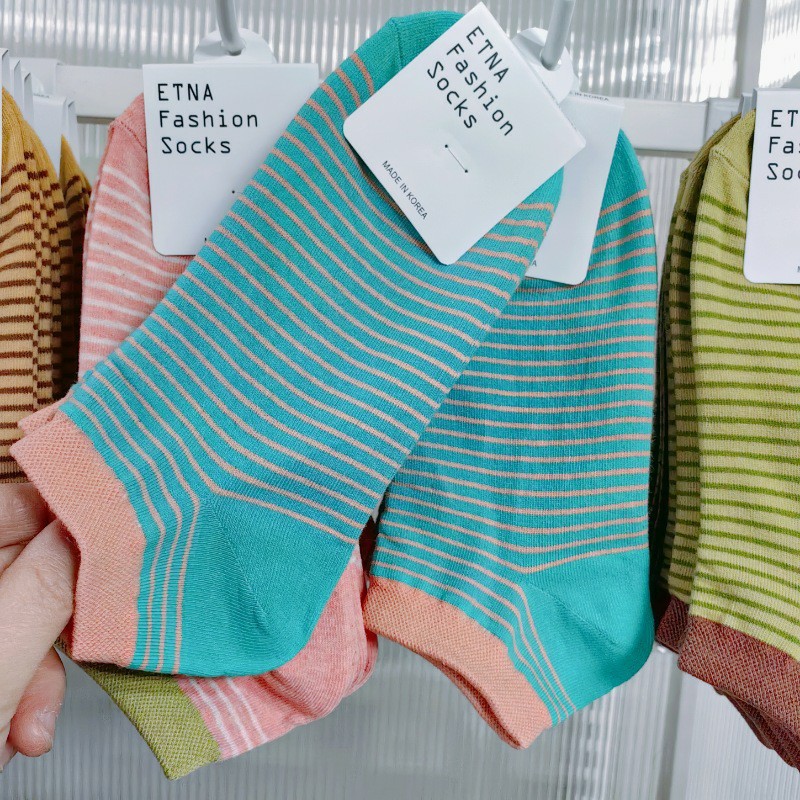 한국 동대문 양말 ETNA24 봄과 여름 새로운 여성 양말 마카롱 스트라이프 로우 허리 컬러 매칭 짧은면 양말스토어 가기