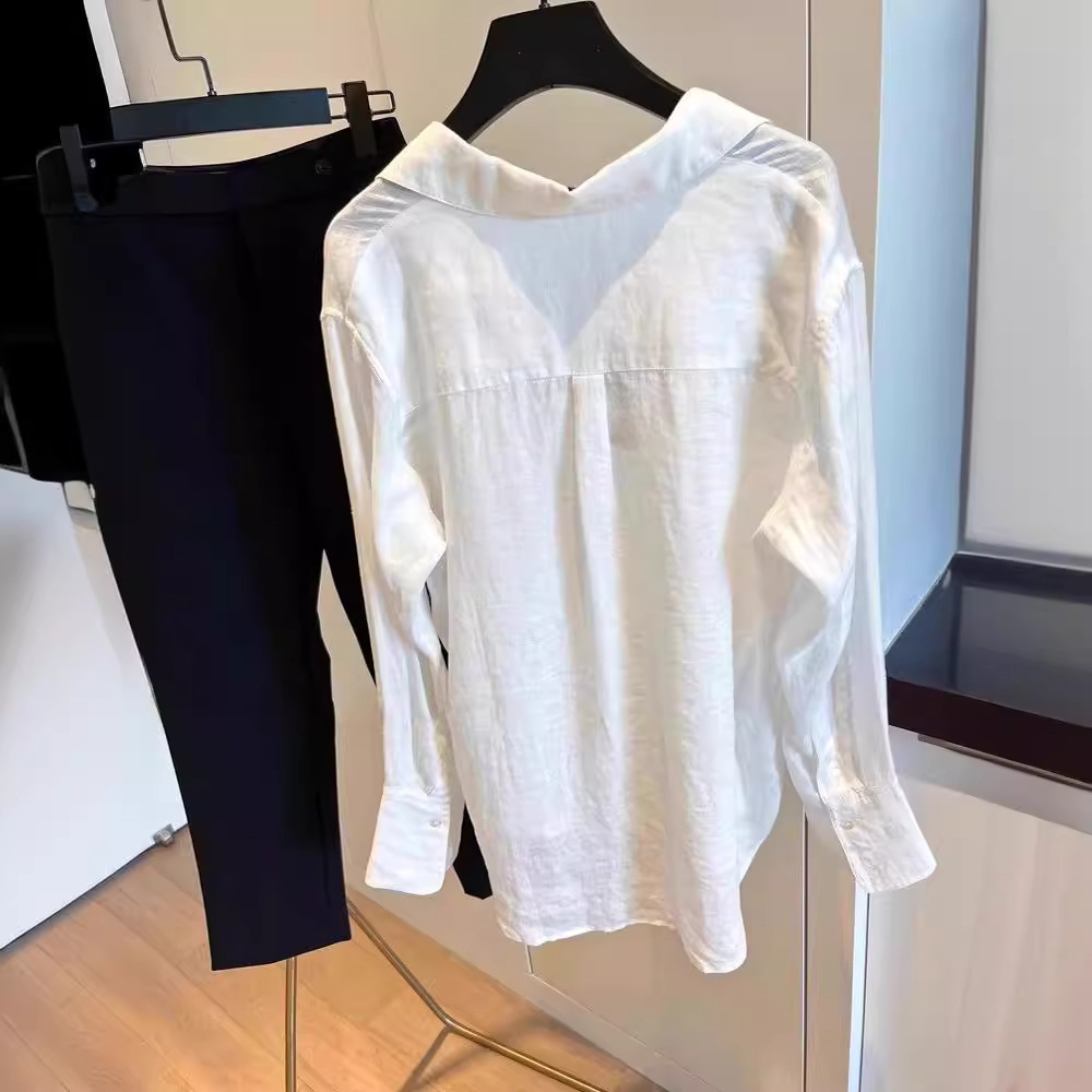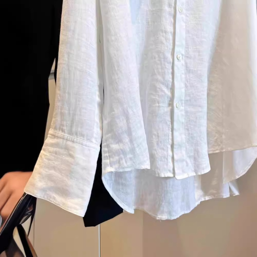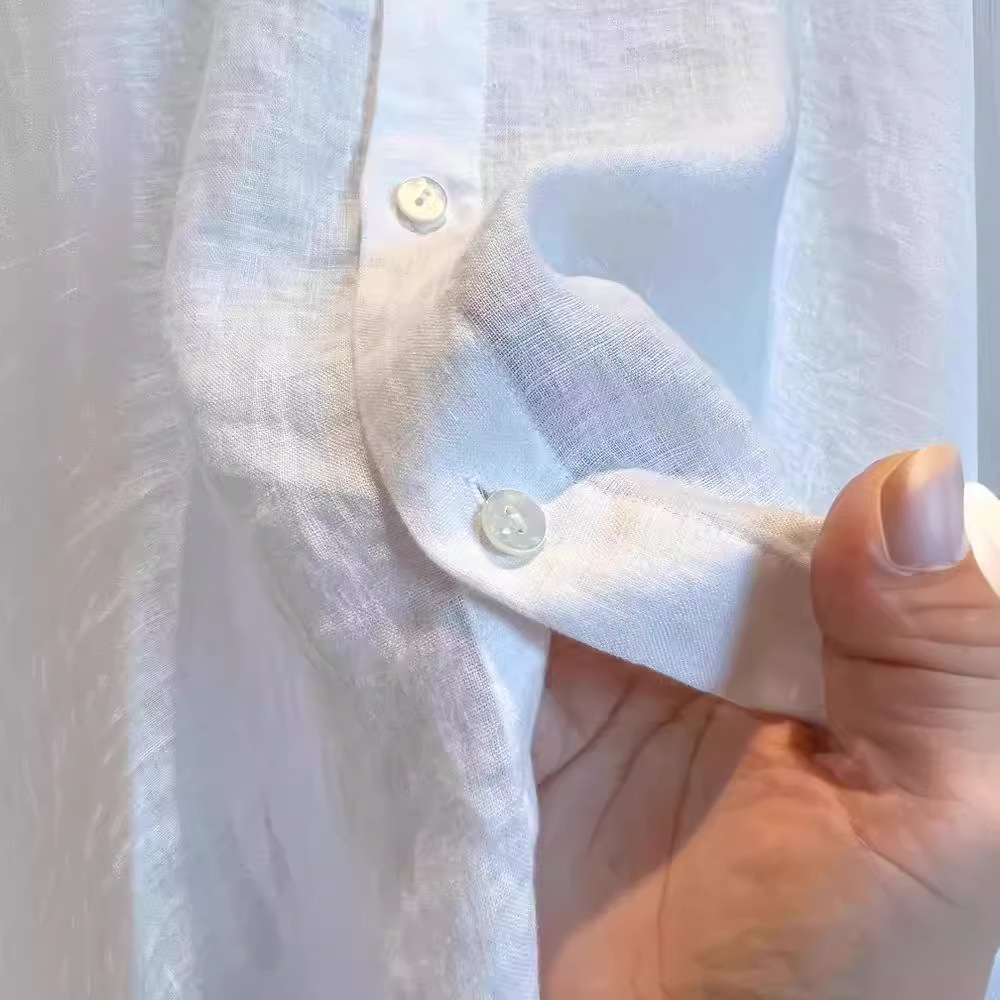 프랑스 스타일 화이트 코튼 리넨 선스크린 셔츠 여성의 여름 얇은 디자인 센스 니쉬 긴 소매 셔츠 텐셀 리넨 탑스토어 가기