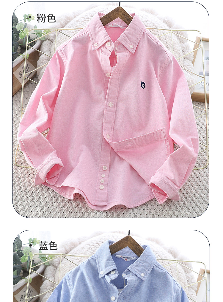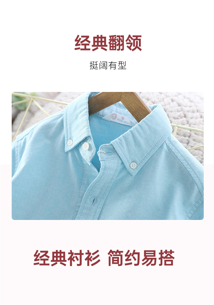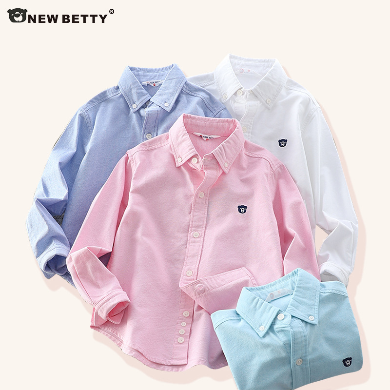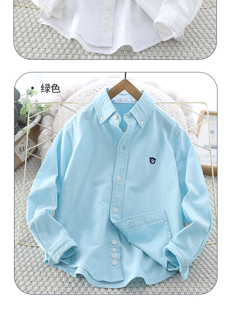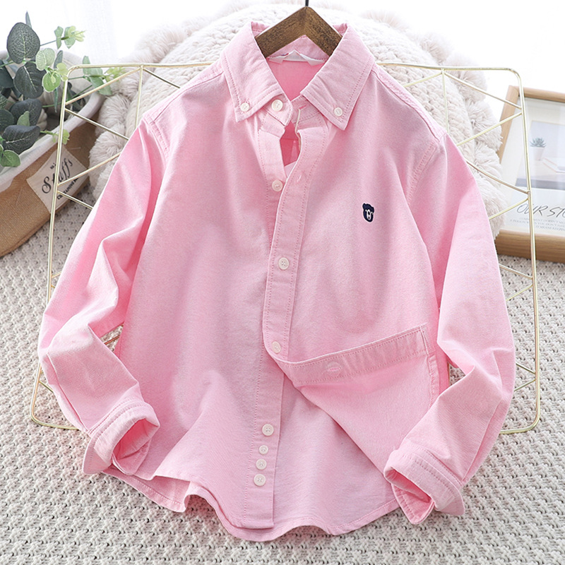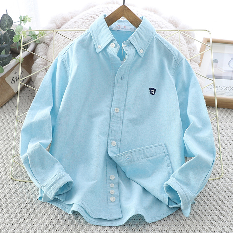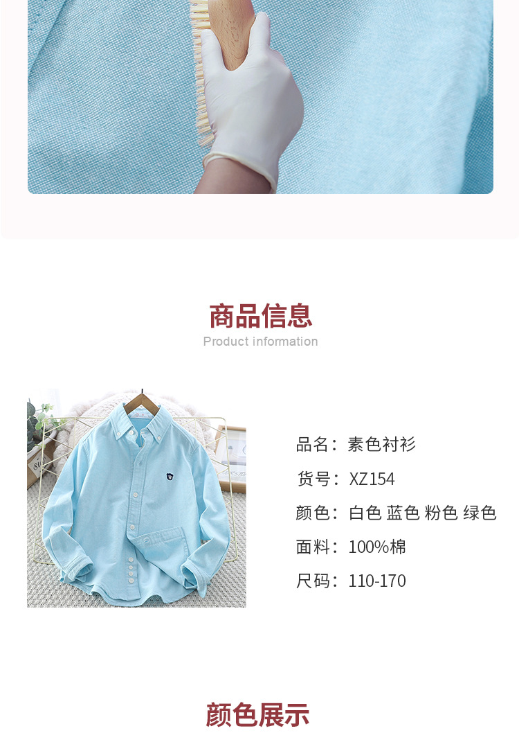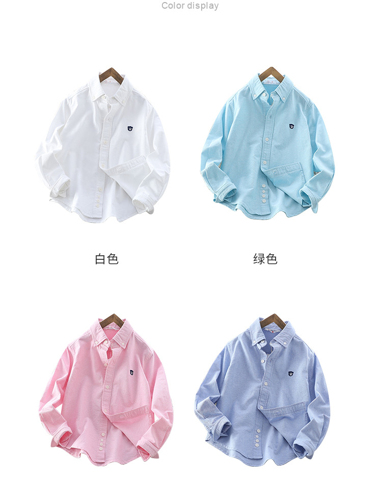 아이들의 새로운 순수한면 캐주얼 셔츠 소년 소녀 단색 셔츠 초등 및 중등 학교 유니폼 시계 공연 옷 옷깃 탑스토어 가기