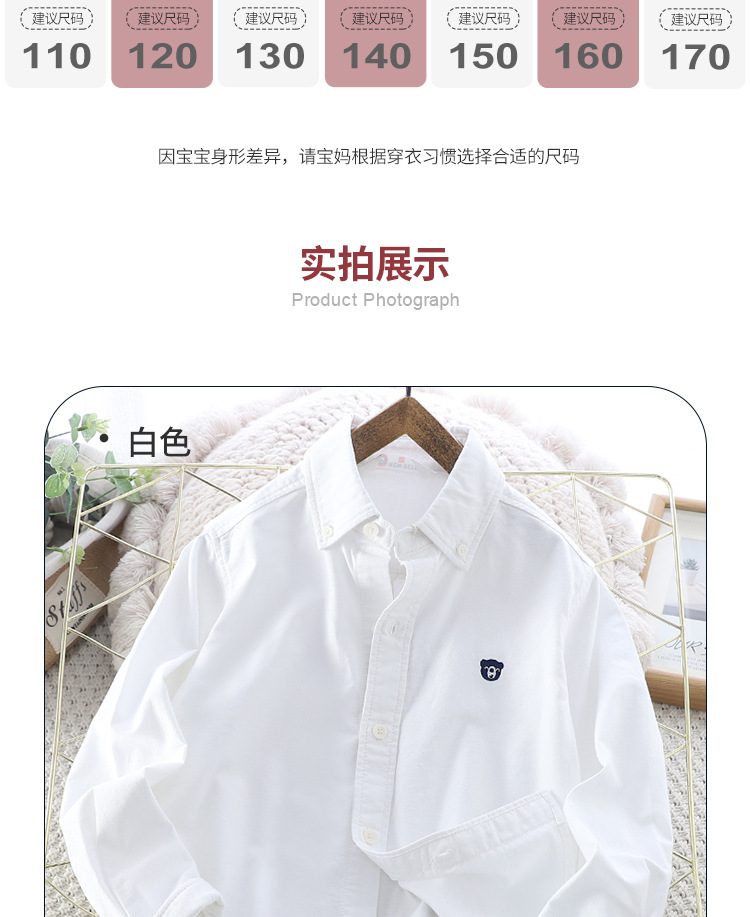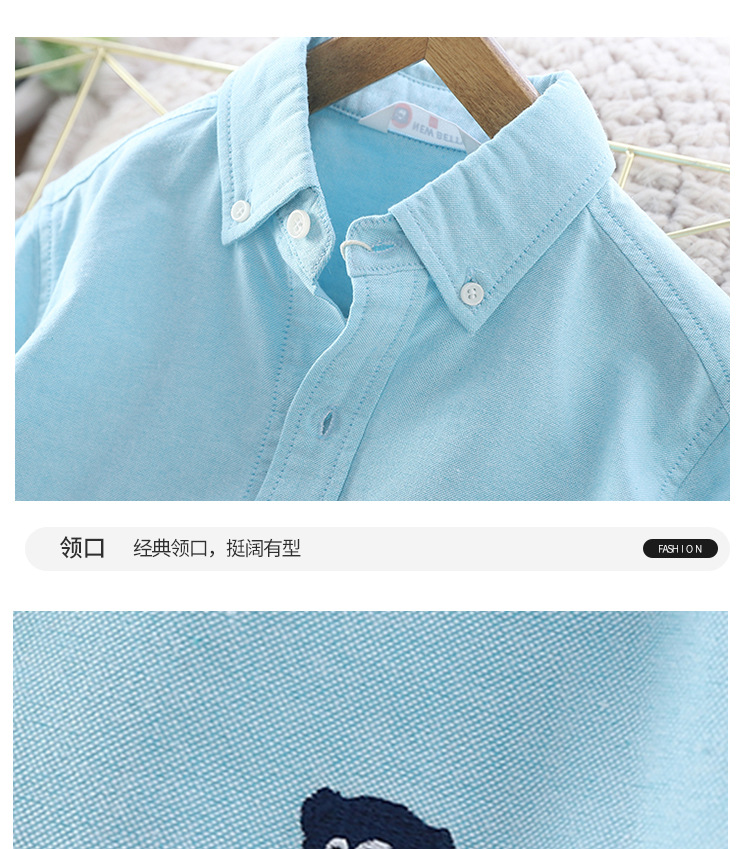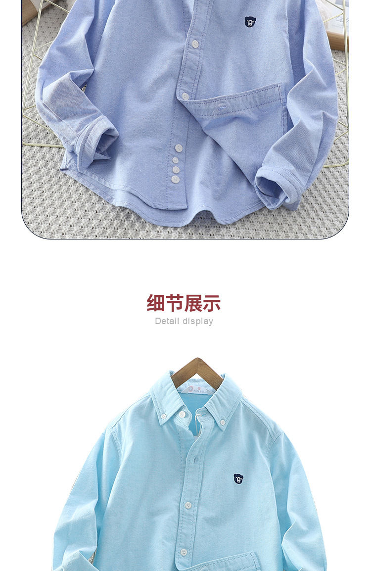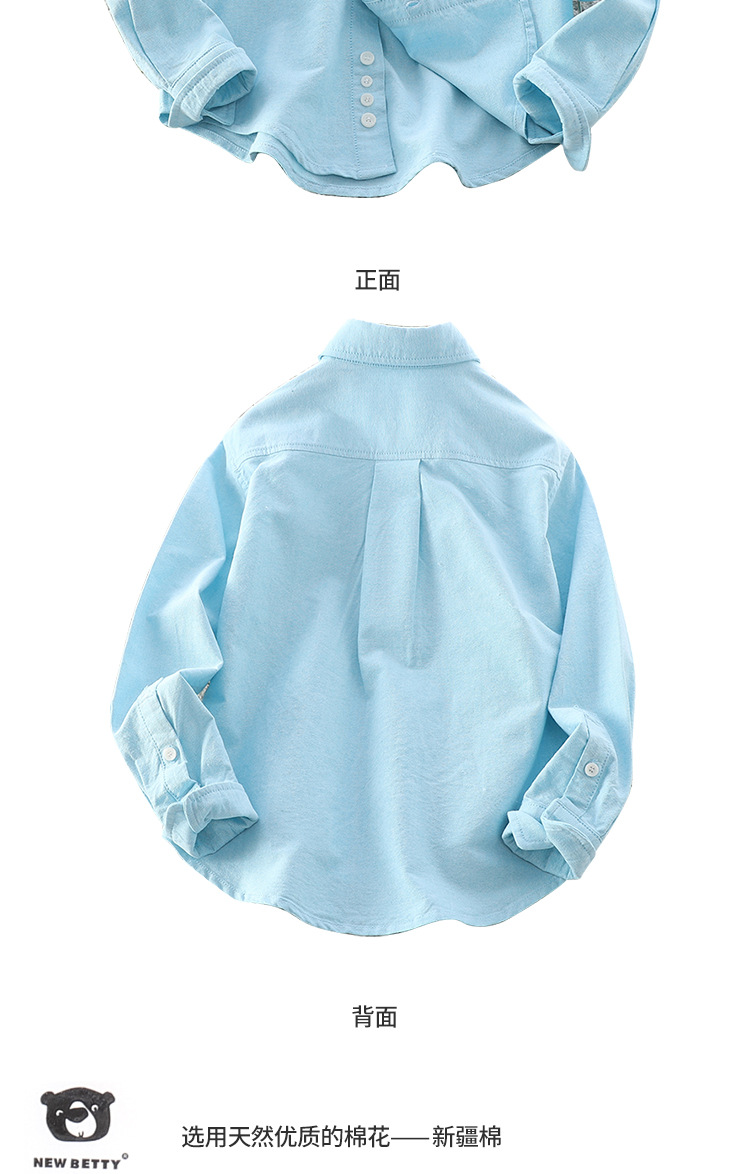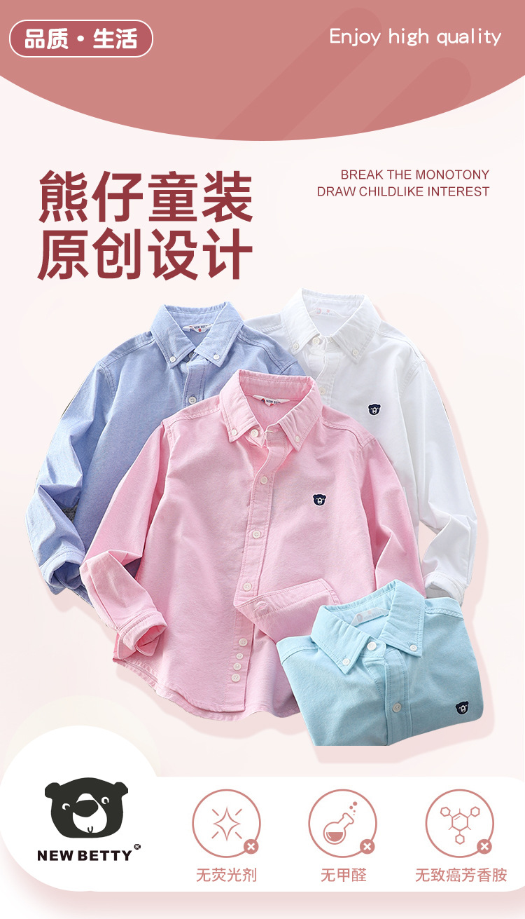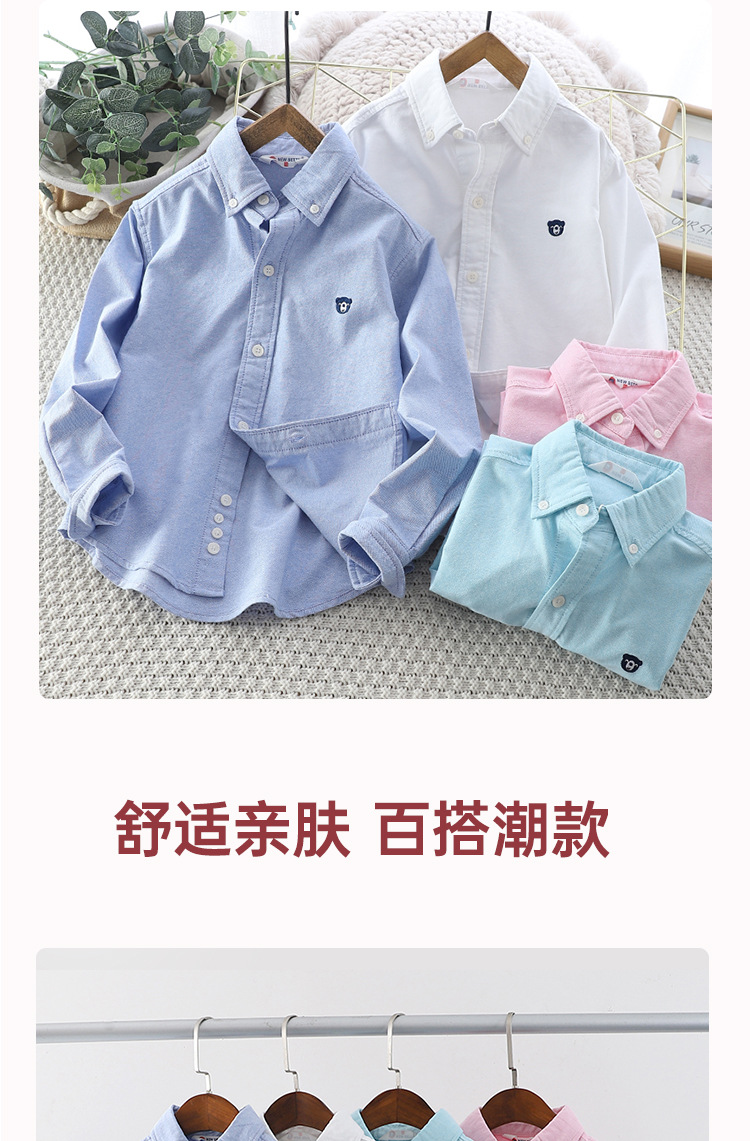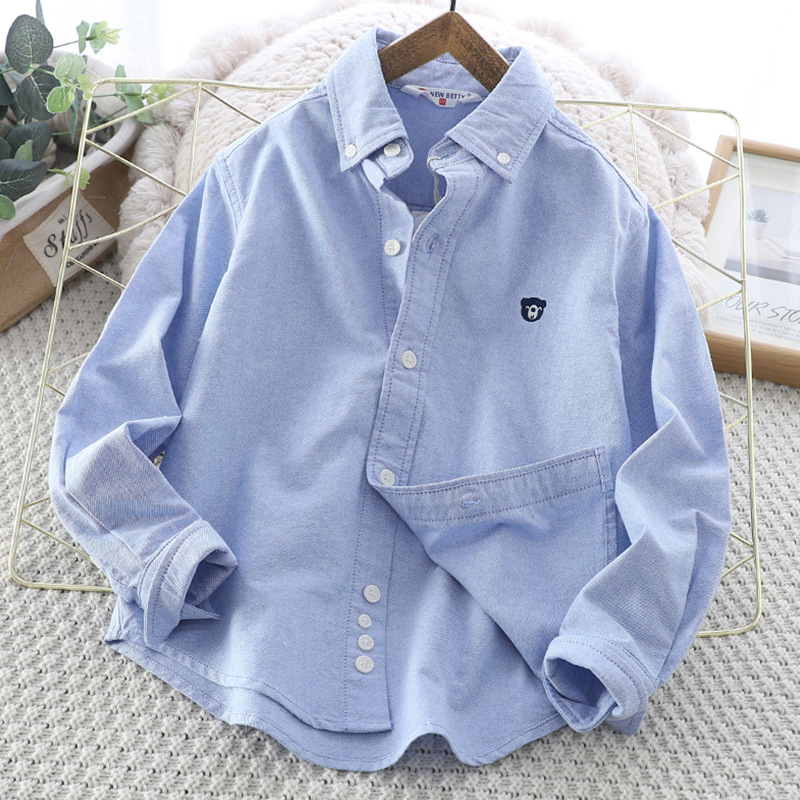 아이들의 새로운 순수한면 캐주얼 셔츠 소년 소녀 단색 셔츠 초등 및 중등 학교 유니폼 시계 공연 옷 옷깃 탑스토어 가기