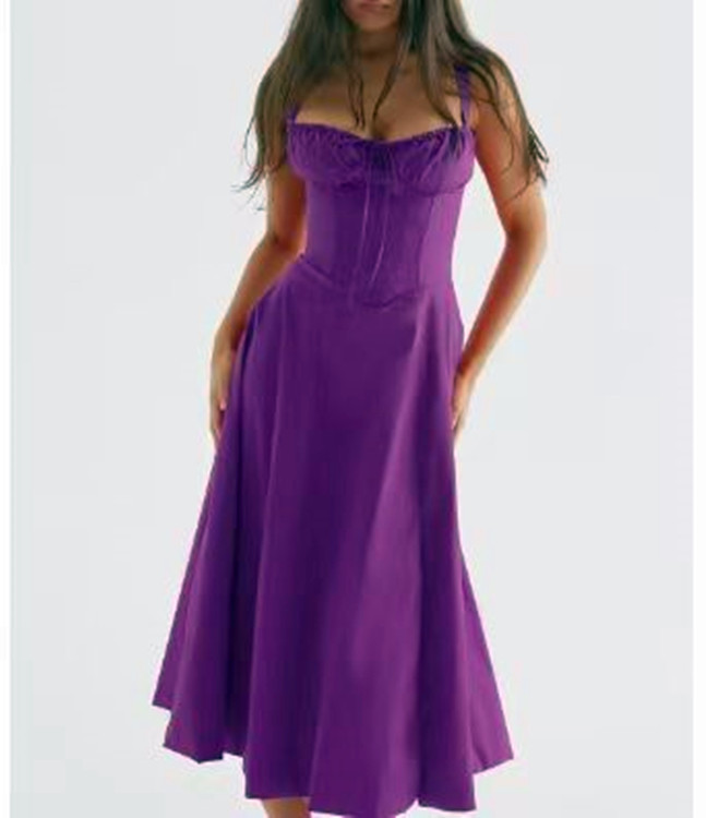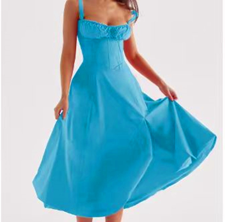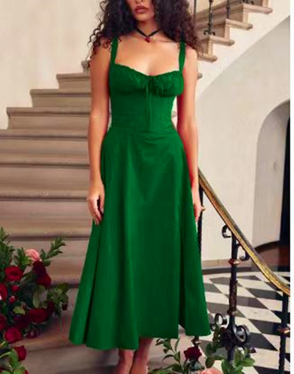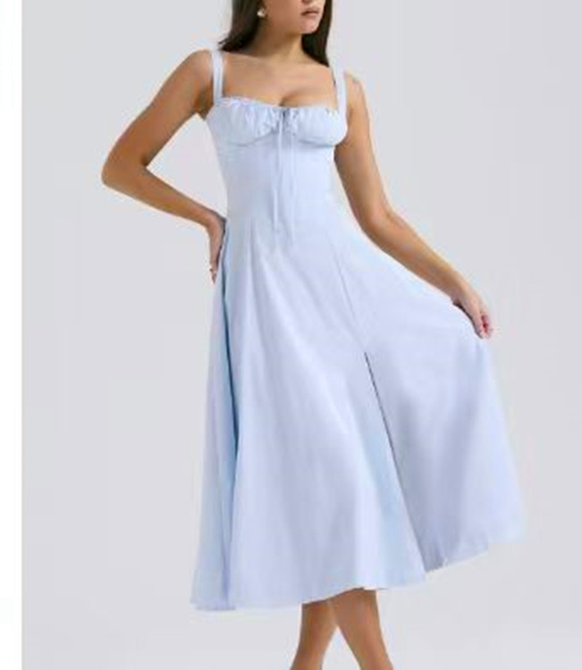 2024 아마존 인기 여름 해외 무역 통근 우아한 단색 패션 하이 엔드 슬링 원피스 스커트 여성