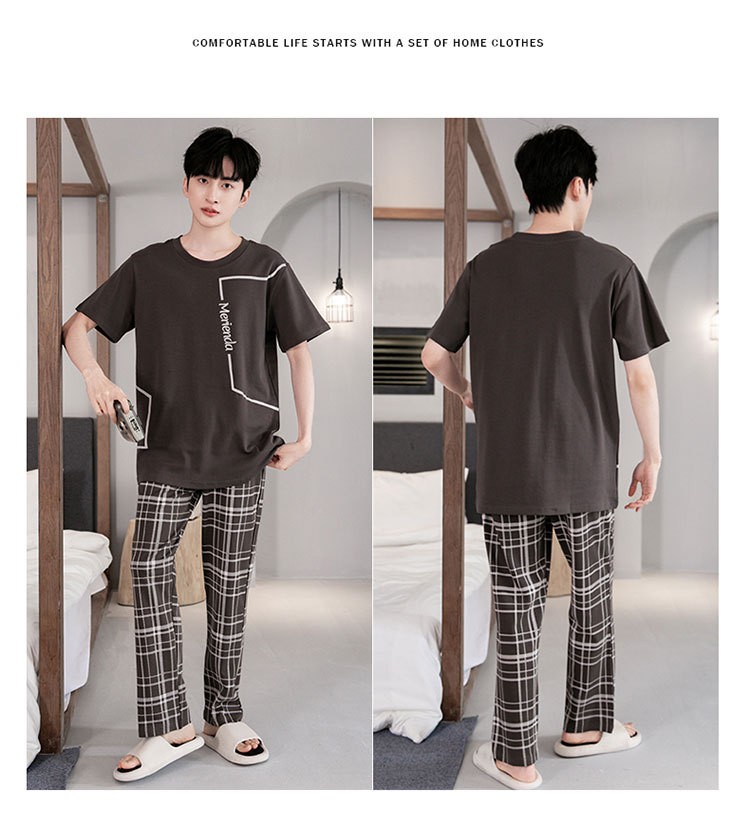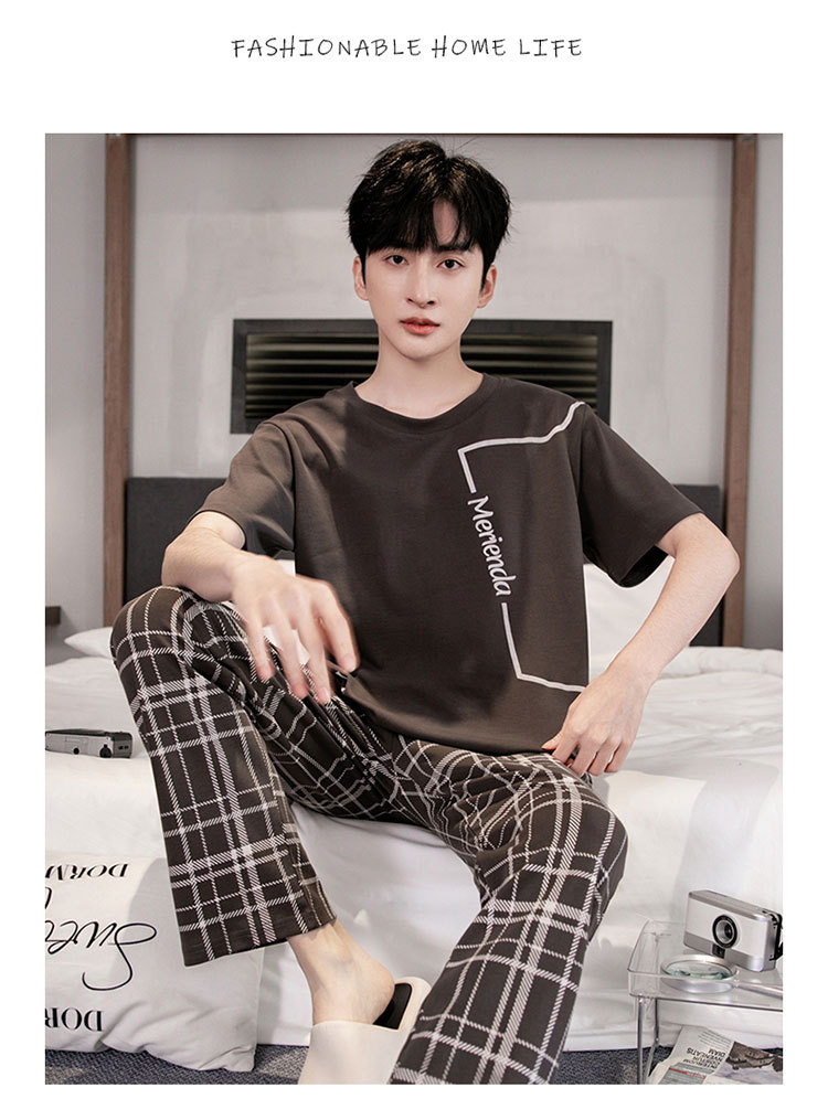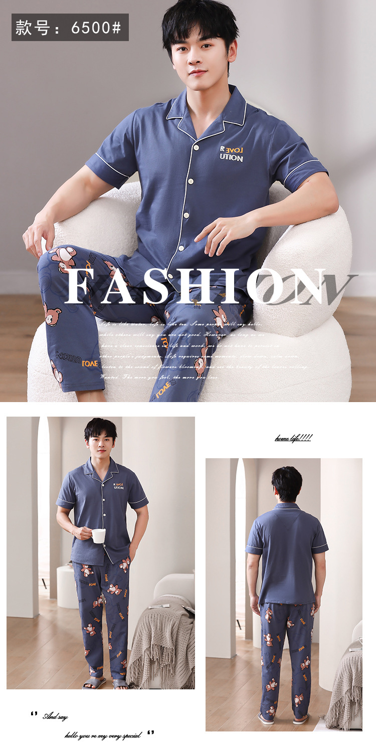 잠옷 남성용 봄과 여름 코튼 반팔 바지 홈웨어 남성용 여름 얇은 캐주얼 겉옷 파자마 세트스토어 가기