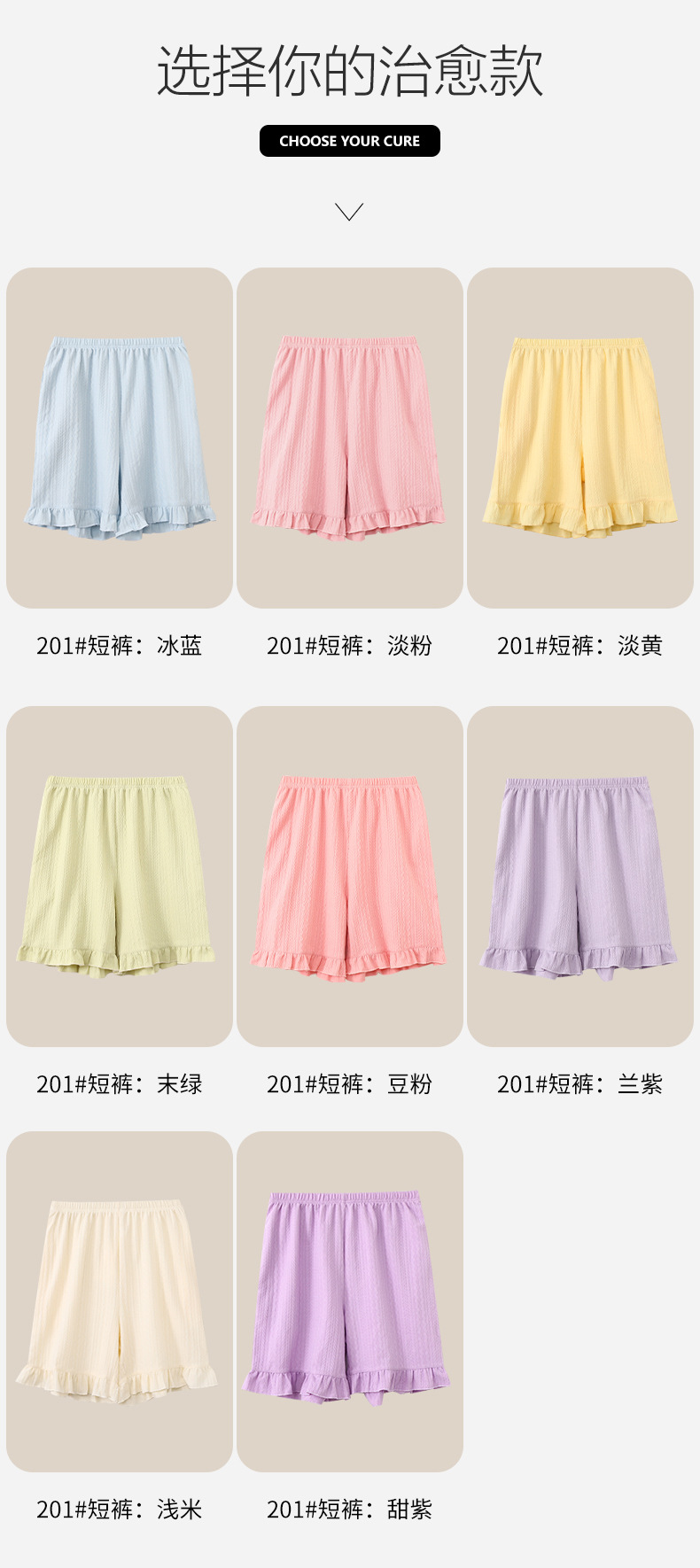 잠옷 여성의 여름면 얇은 느슨한 대형 반바지 블루 단색 다섯 번째 바지 홈 반바지 코튼 홈 바지스토어 가기