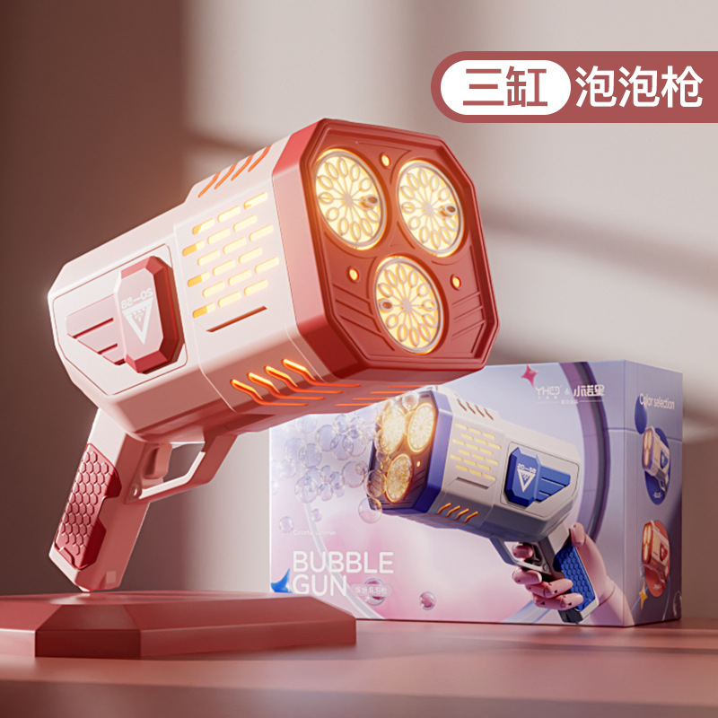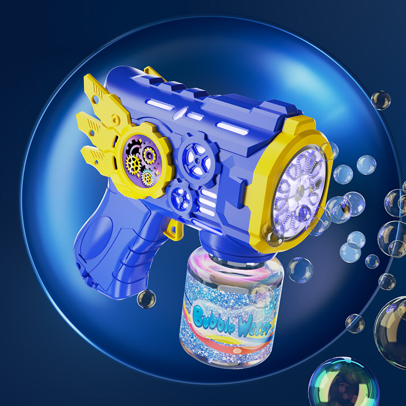 卡通粉、卡通蓝、独角兽、黄萌鸭、天使等系列泡泡枪均配100ml泡泡水1瓶,装箱量均为72盒