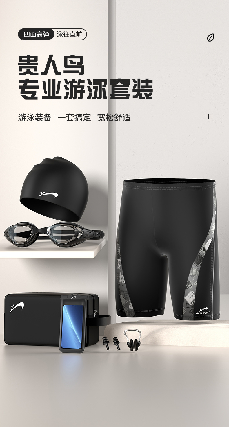 泳裤男平角大码游泳裤男士时尚温泉泳衣泳镜泳帽套装专业游泳装备